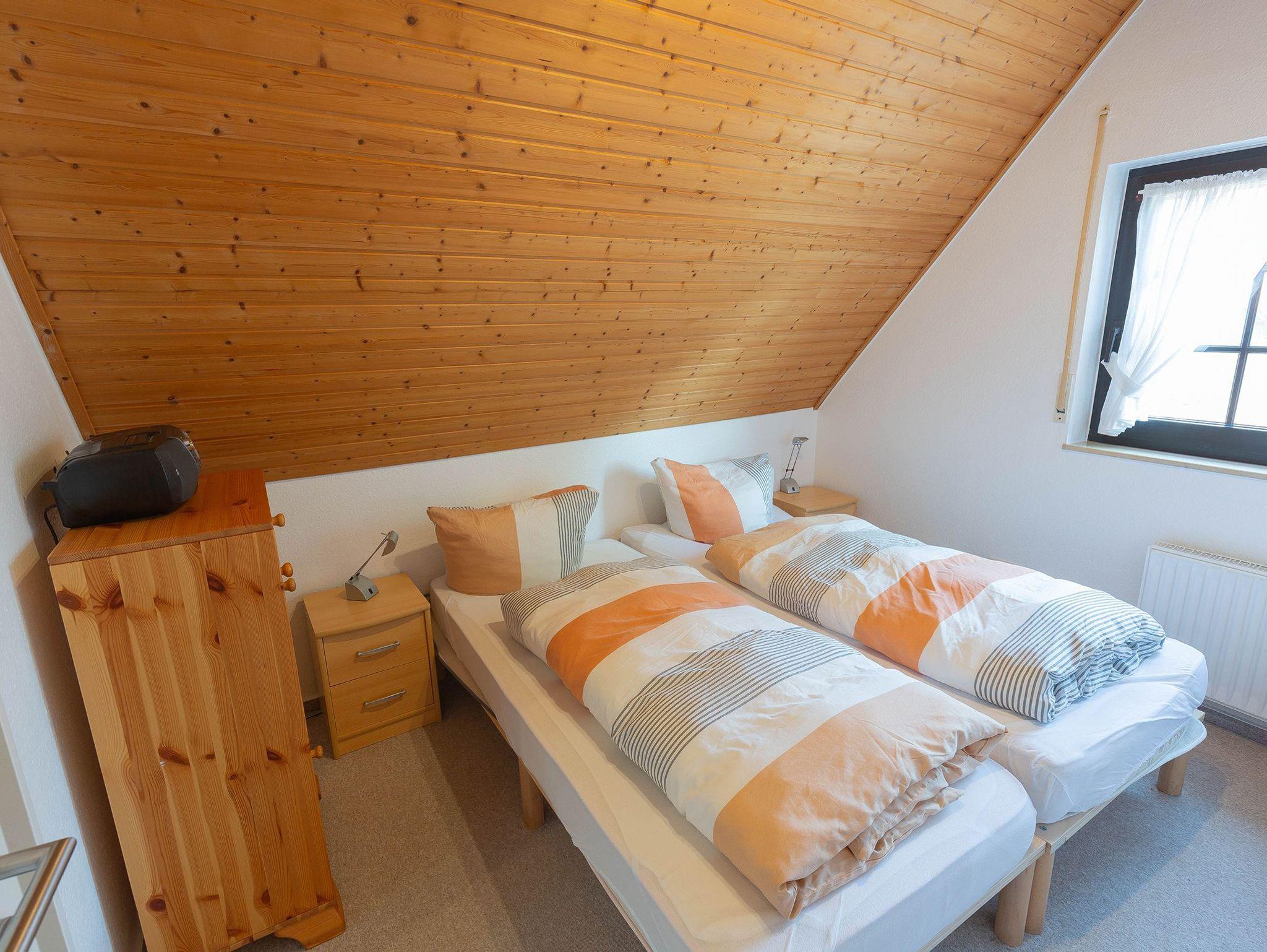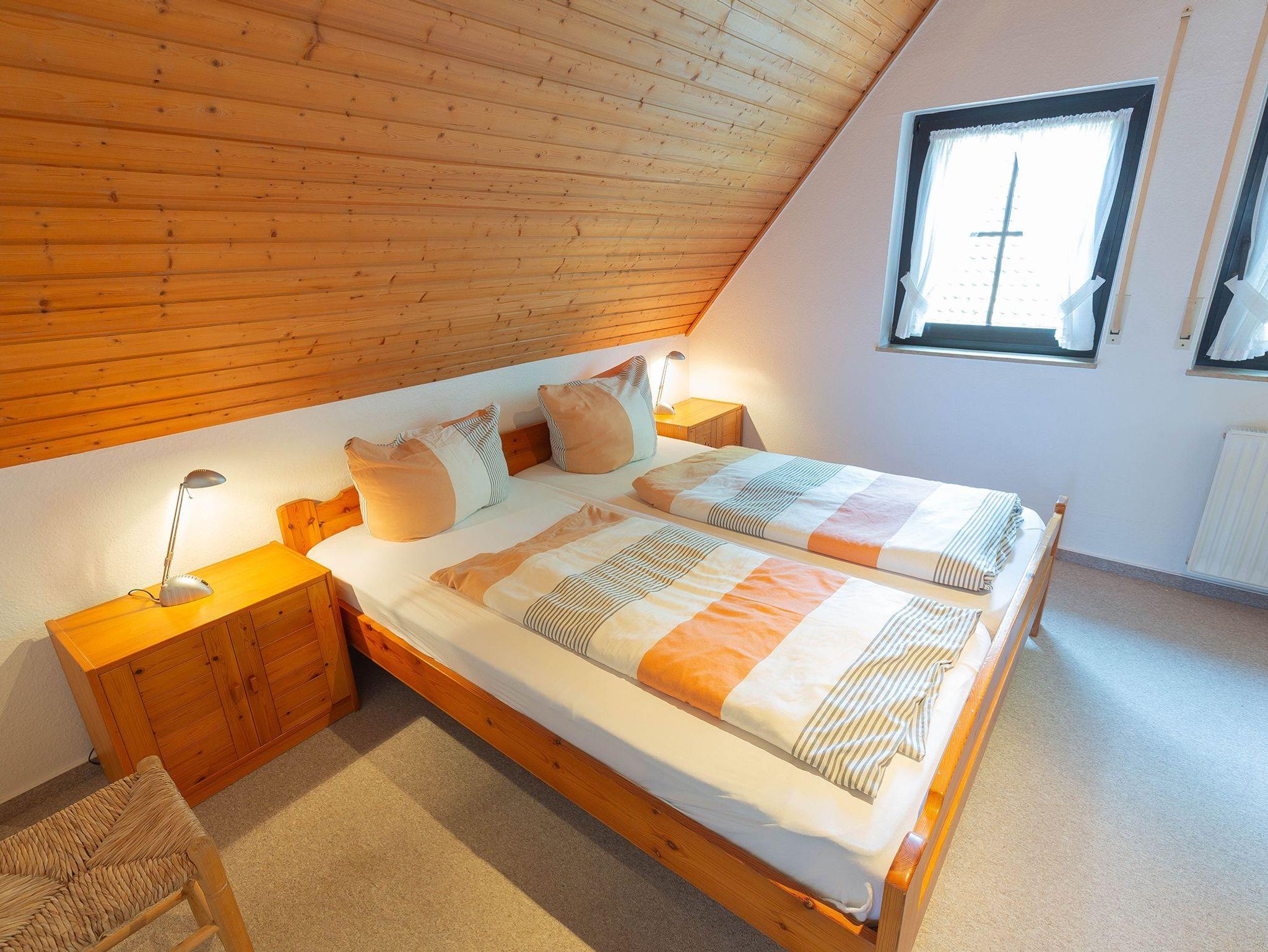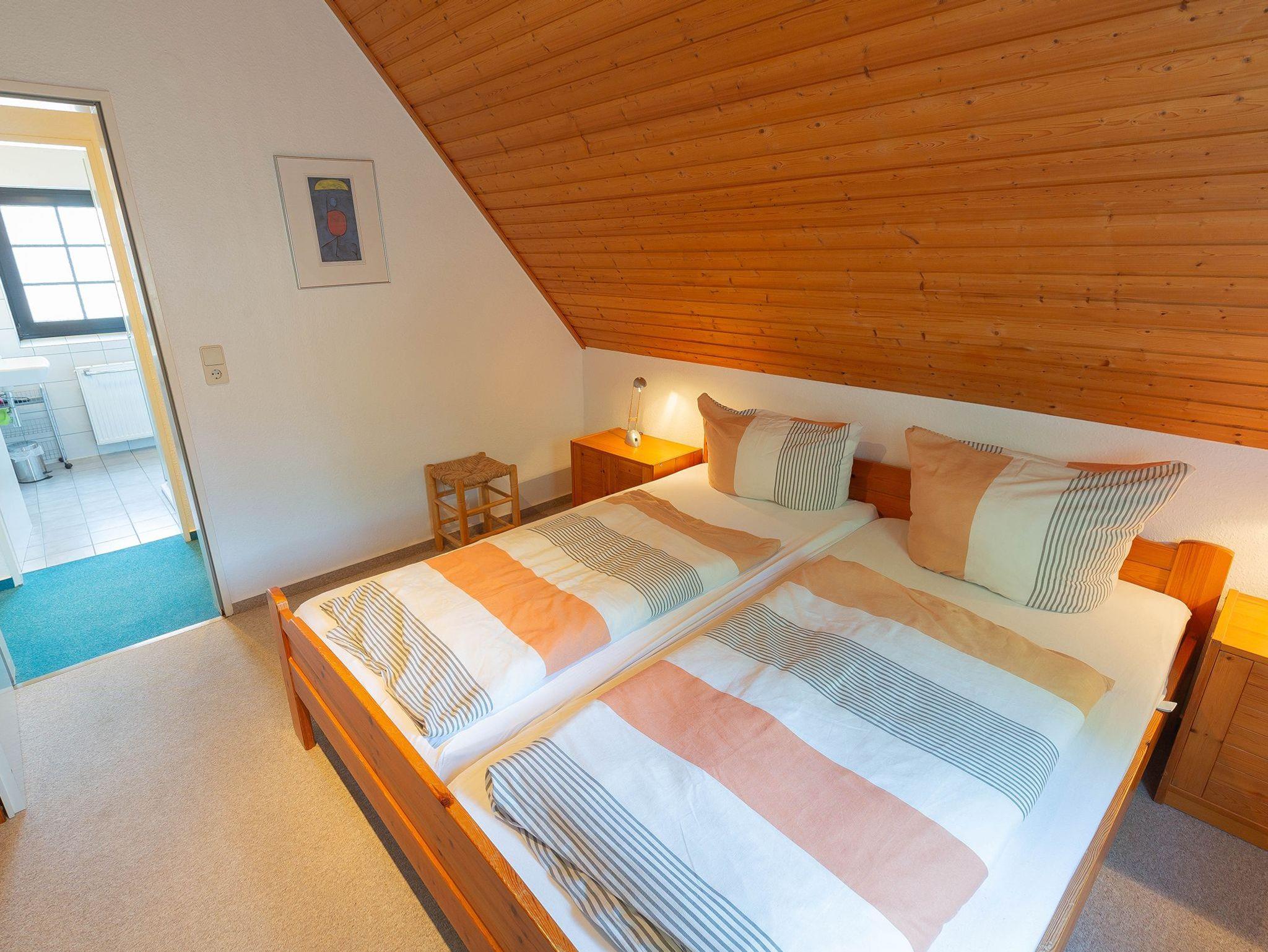 Sie betreten das Ferienhaus durch den Windfang mit Gäste-WC und Garderobe und gelangen in einen großzügigen Wohn- und Essbereich mit offener schicker Küchenzeile, die alles an Ausstattung für ein entspanntes Kochen bietet. Der Wohnbereich hat Kachelboden mit Fußbodenheizung. Hier ist auch der Ausgang zur großen Südterrasse. Im Obergeschoss befinden sich drei Schlafräume sowie das helle Fenster-Duschbad mit Waschmaschine. Ihre Fahrräder können Sie im dafür vorgesehenen Abstellraum am Gebäude sicher unterstellen.