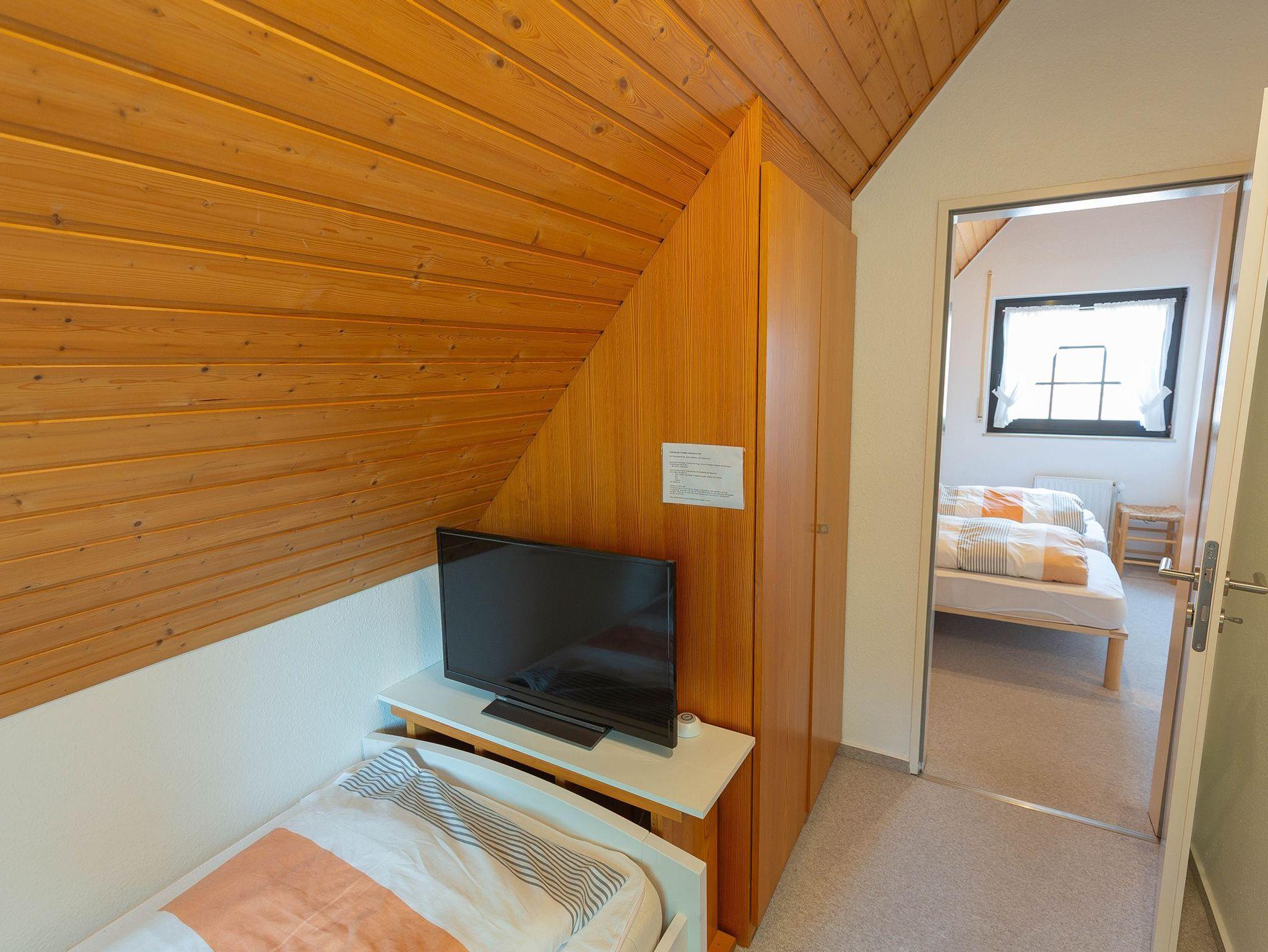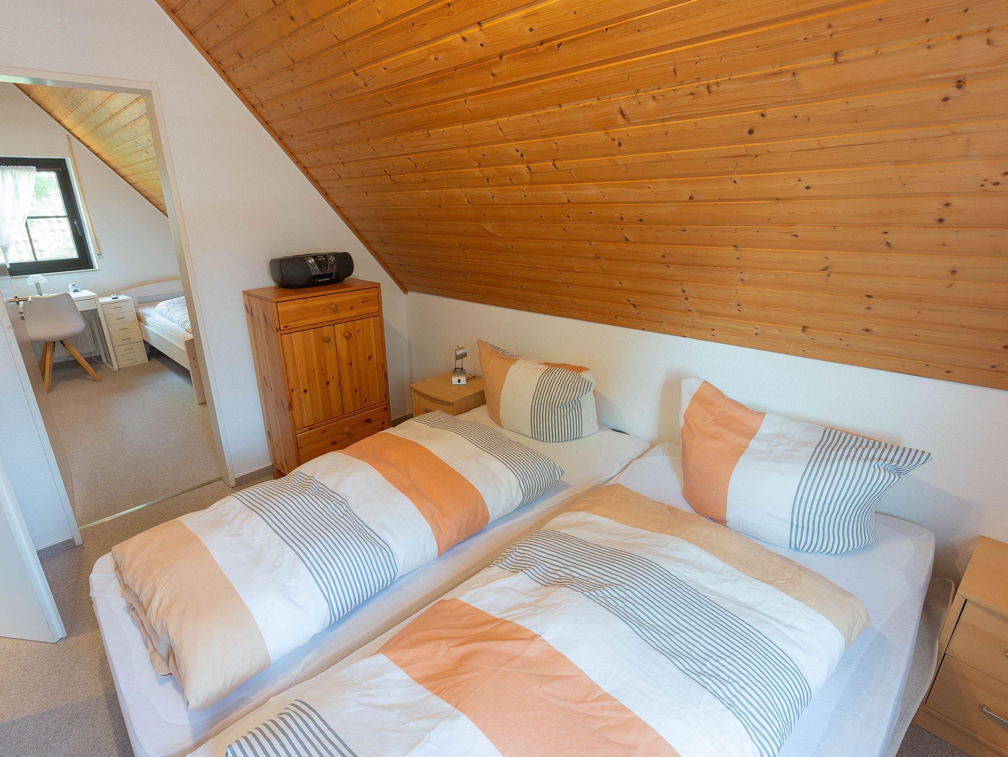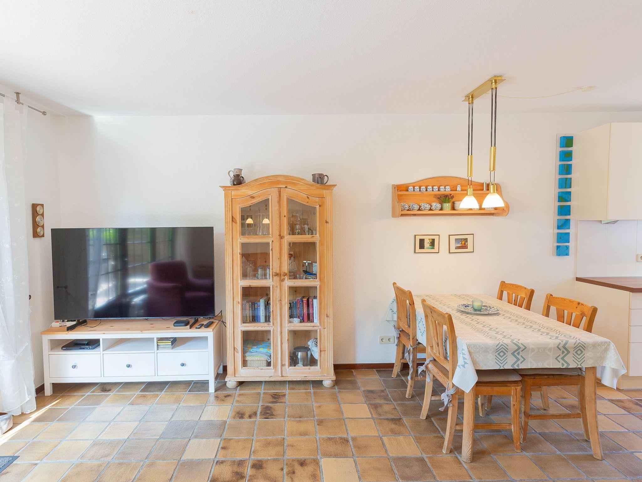 Sie betreten das Ferienhaus durch den Windfang mit Gäste-WC und Garderobe und gelangen in einen großzügigen Wohn- und Essbereich mit offener schicker Küchenzeile, die alles an Ausstattung für ein entspanntes Kochen bietet. Der Wohnbereich hat Kachelboden mit Fußbodenheizung. Hier ist auch der Ausgang zur großen Südterrasse. Im Obergeschoss befinden sich drei Schlafräume sowie das helle Fenster-Duschbad mit Waschmaschine. Ihre Fahrräder können Sie im dafür vorgesehenen Abstellraum am Gebäude sicher unterstellen.