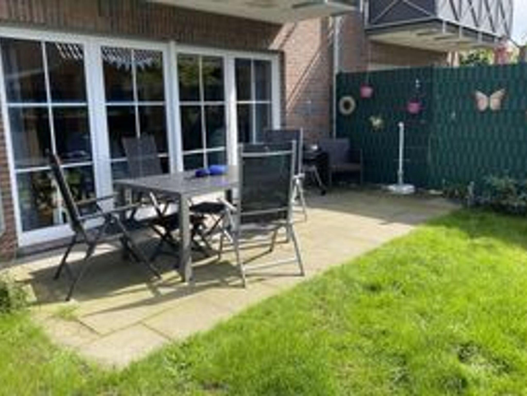 Die Wohnung besitzt eine eingezäunte S/W Terrasse und einem kleinen eigenen Garten. Vom Garten gibt es einen Zugang zum großen Gemeinschaftsgarten.