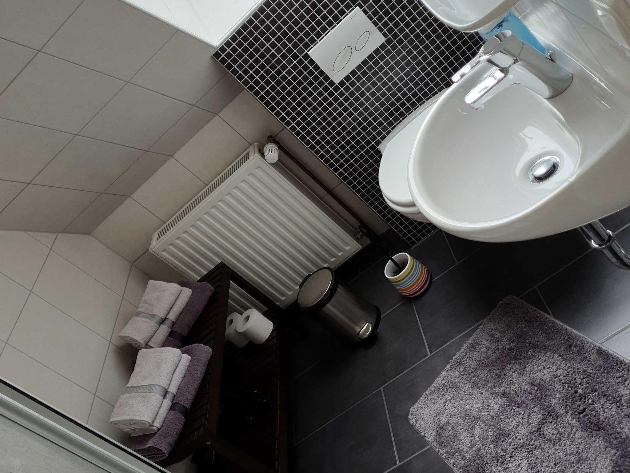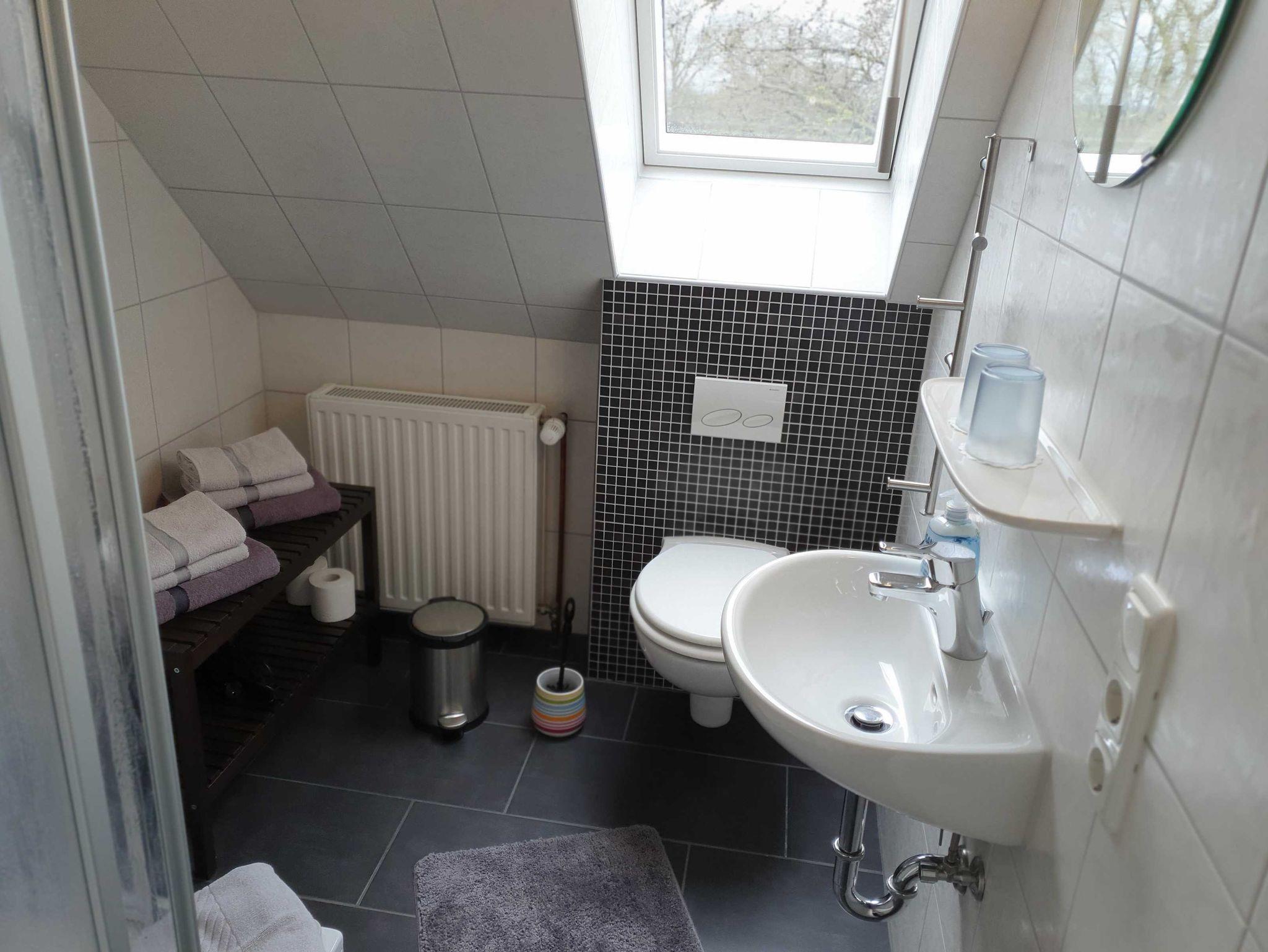 Das Duschbad (mit Fön) hat Tageslicht. Handtücher und Bettwäsche sind inklusive.