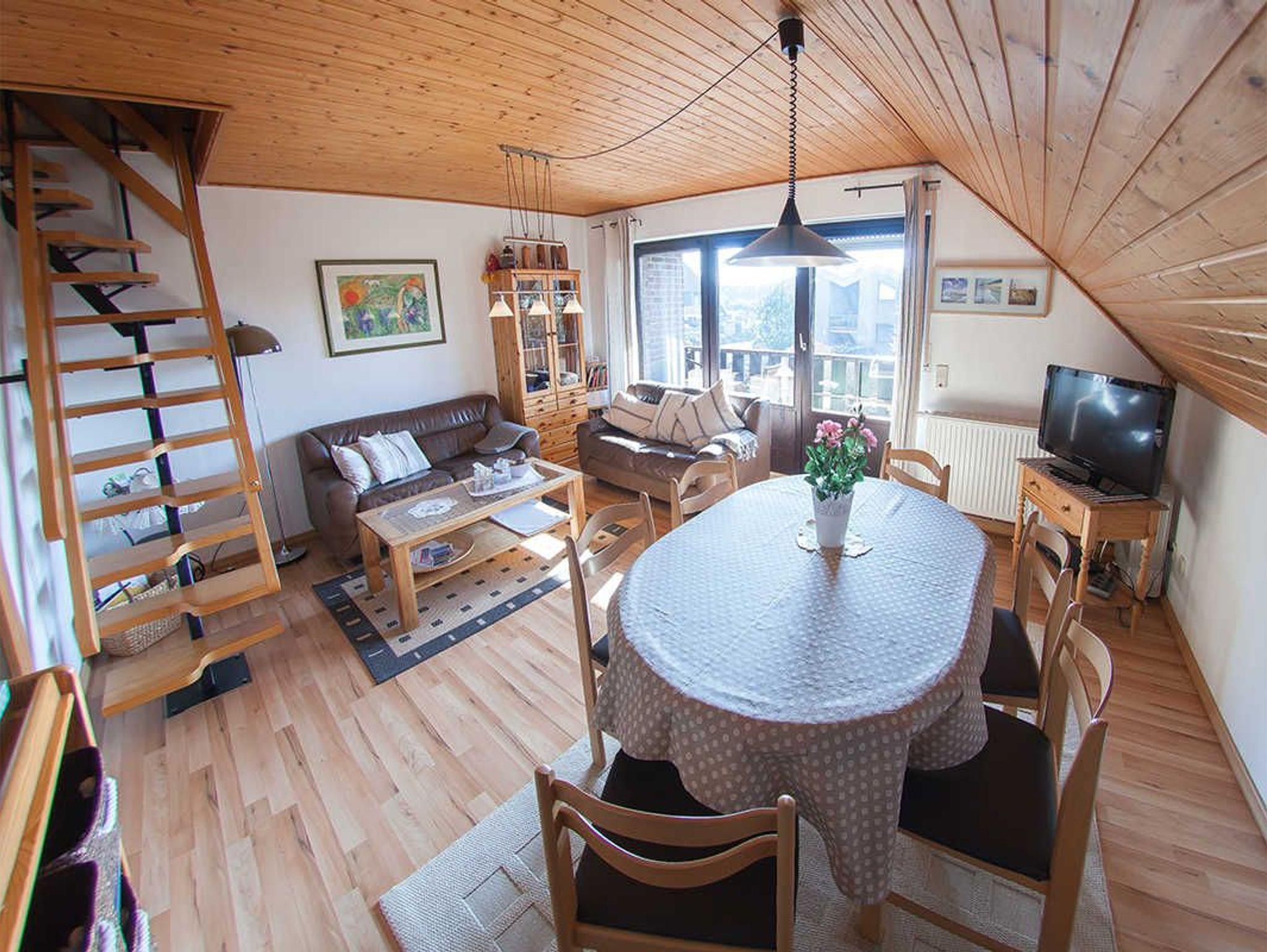 Herzlich willkommen in der Ferienwohnung Anker im beschaulichen Dangast. Wir freuen uns, ihnen dieses geräumige Feriendomizil in ruhiger Sackgassenlage anbieten zu dürfen. Unsere Ferienwohnung Anker ist eine Maisonette und liegt im ersten Stock eines Mehrparteienhauses. Sie gelangen vom Flur aus in den Wohnbereich mit großem Essplatz, Zugang zur Küchenzeile und Ausgang zum Balkon. Die weiteren Räume auf dieser Etage sind das Elternschlafzimmer mit einem Doppelbett, das Jugendzimmer mit Etagenbett und das Duschbad. Im Obergeschoss mit großem Flur befinden sich noch zwei Schlafzimmer mit je einem 140x200-Bett und einem ausziehbaren Tandembett. Ein zusätzlicher moderner Sanitärbereich mit Waschbecken und Toilette ist vorhanden. Ein Babybett und ein Hochstuhl stehen kostenfrei zur Verfügung.
