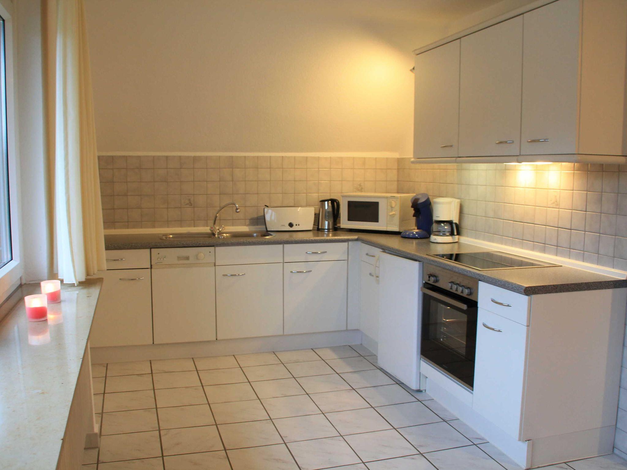 Die Wohnung ist eingerichtet mit Sat-TV, DVD-Player, Radio/CD und verfügt über eine vollständig eingerichtete Küche mit Ceranfeld, Backofen, Spülmaschine, Mikrowelle, Kaffeemaschine, Senseo-Maschine, Toaster und Wasserkocher.