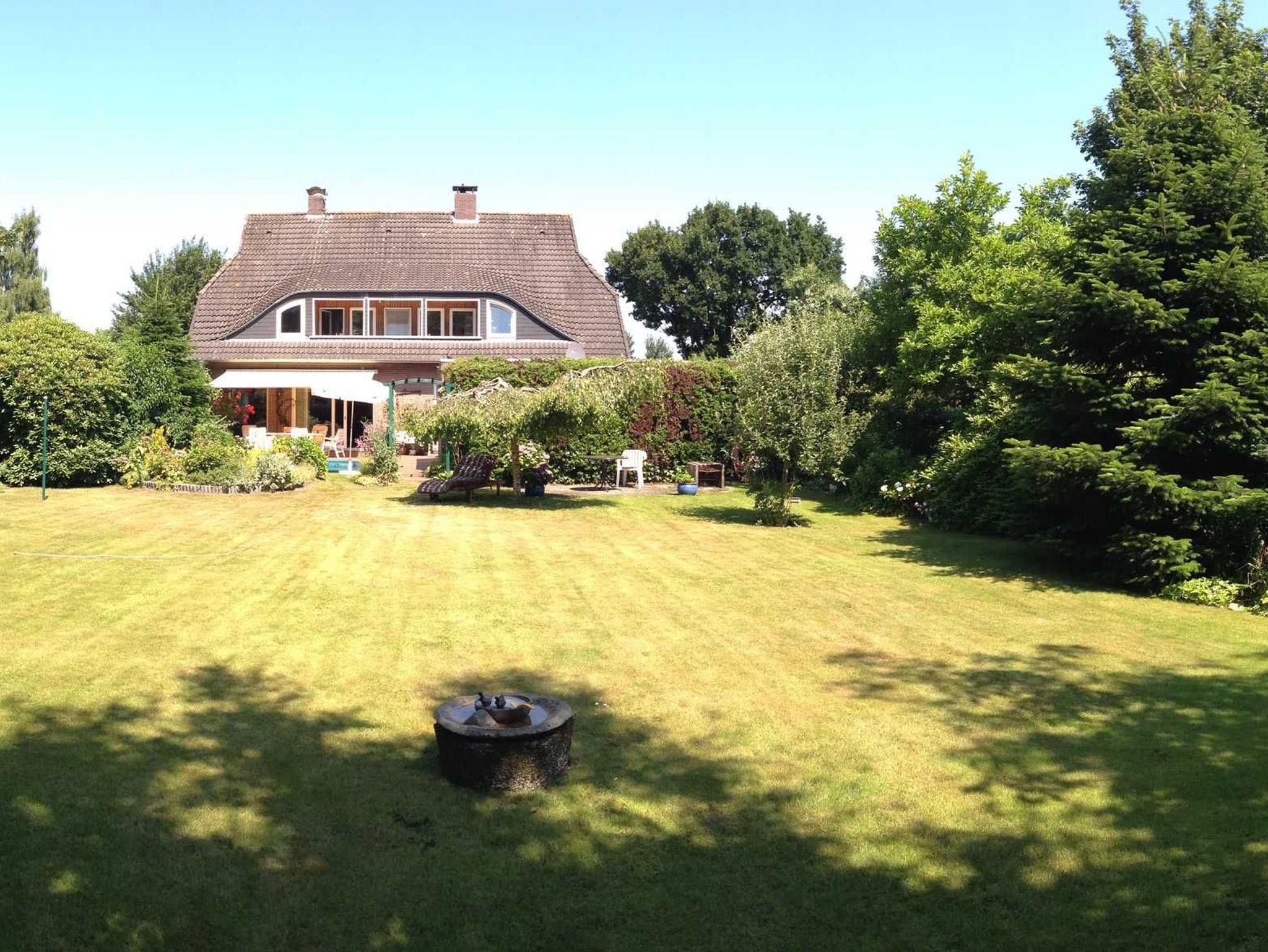 Im großzügigen Wohnzimmer mit Kamin kann man sich treffen, Tee trinken oder zusammen essen am großen Tisch für 12 Personen. In der geräumigen Küche mit Stehtisch lässt sich hervorragend zusammen kochen oder einfach schnacken. Auf der Terrasse, im Garten oder in der sog. „Lounge“ geht am gemeinsamen Grillen fast kein Weg vorbei. Die Kinder können jederzeit raus in den großen, eingewachsenen Garten.