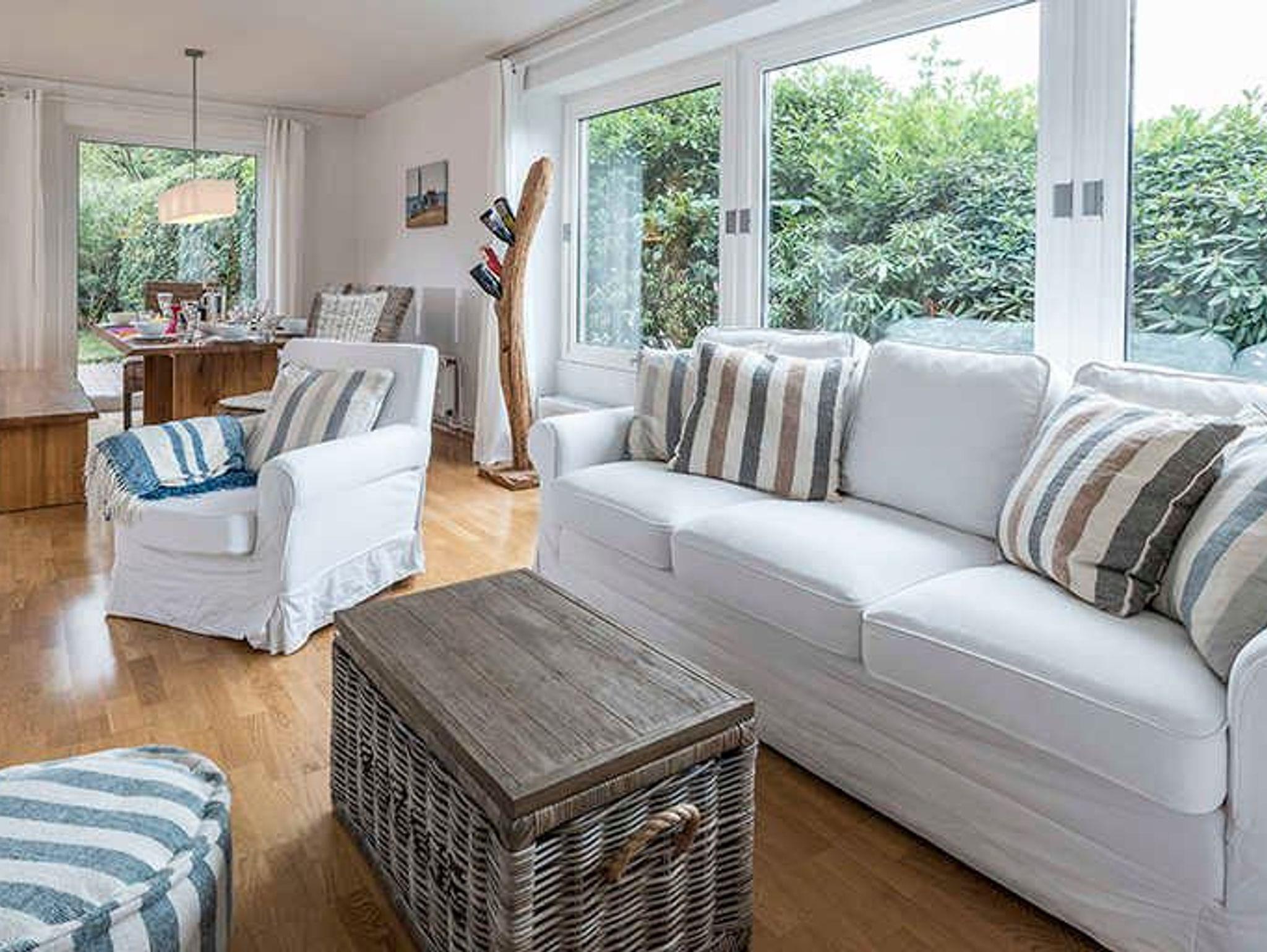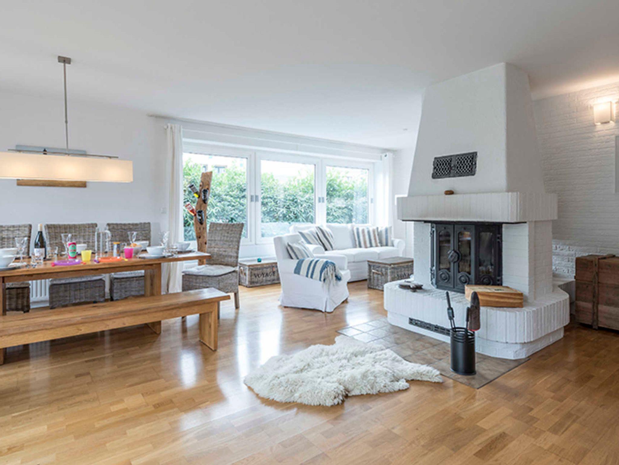 Im großen Wohnzimmer mit Kamin kann man sich treffen, Tee trinken mit Rhabarberkuchen vom Kurhaus oder zusammen essen am großen Tisch für 12 Personen. In der großen Küche mit Stehtisch lässt sich hervorragend zusammen kochen oder einfach schnacken. Auf der Terrasse, im Garten oder in der sog. Lounge geht am gemeinsamen Grillen fast kein Weg vorbei. Die Kinder können jederzeit raus in den großen, eingewachsenen Garten.