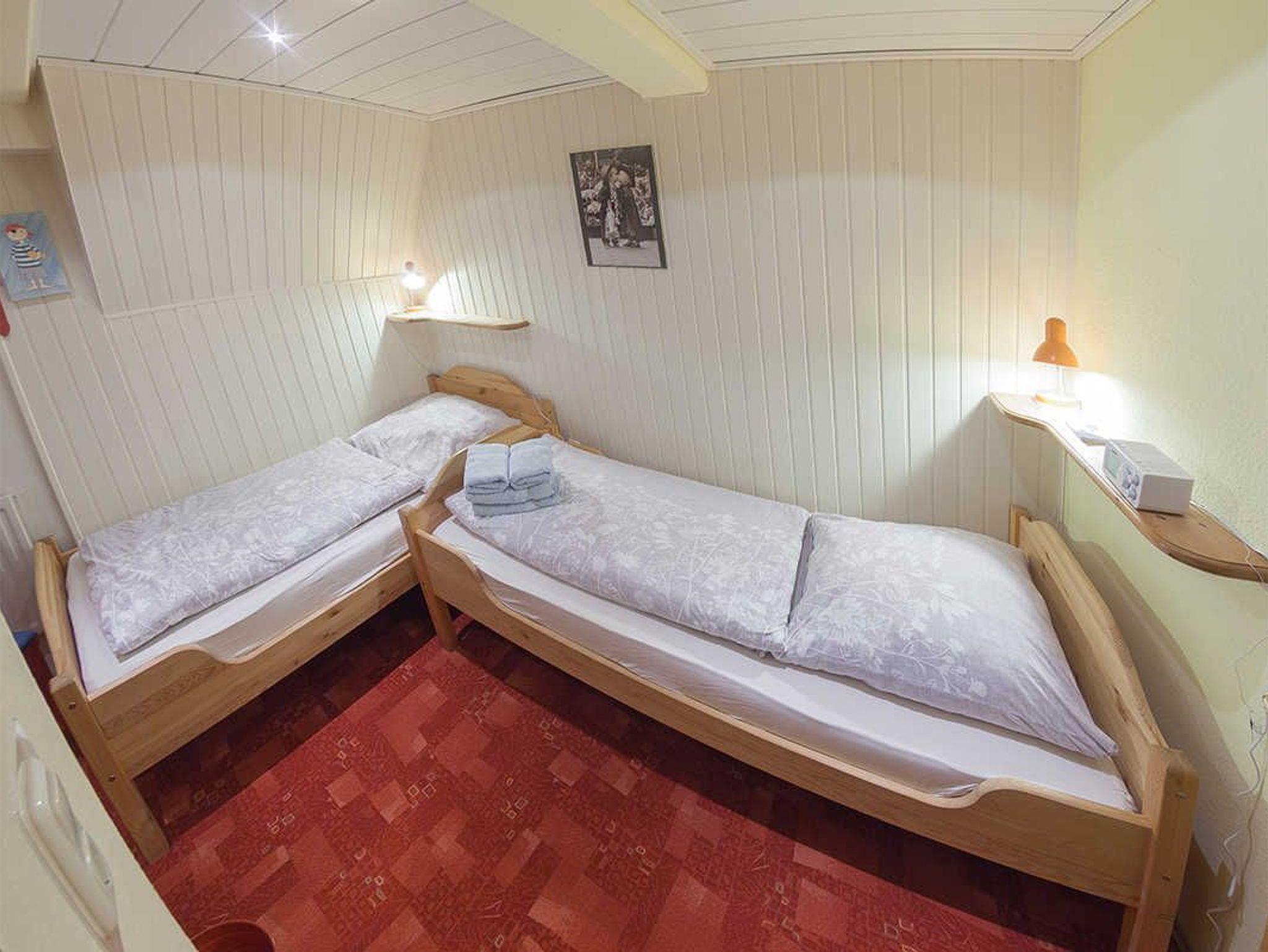 Die Wohnung ist geschmackvoll und gemütlich eingerichtet und hat alle Ausstattungsmerkmale für einen entspannten Urlaub. Im Eingangsbereich liegt das helle Fenster-Duschbad mit WC. Weiter geht es in den Wohnbereich mit Küchenzeile, die komplett ausgestattet ist. Ab hier geht es auch zur großen begrünten Terrasse. Im Untergeschoss befinden sich zwei separate Schlafräume, einer mit Doppelbett und einer mit zwei Einzelbetten.