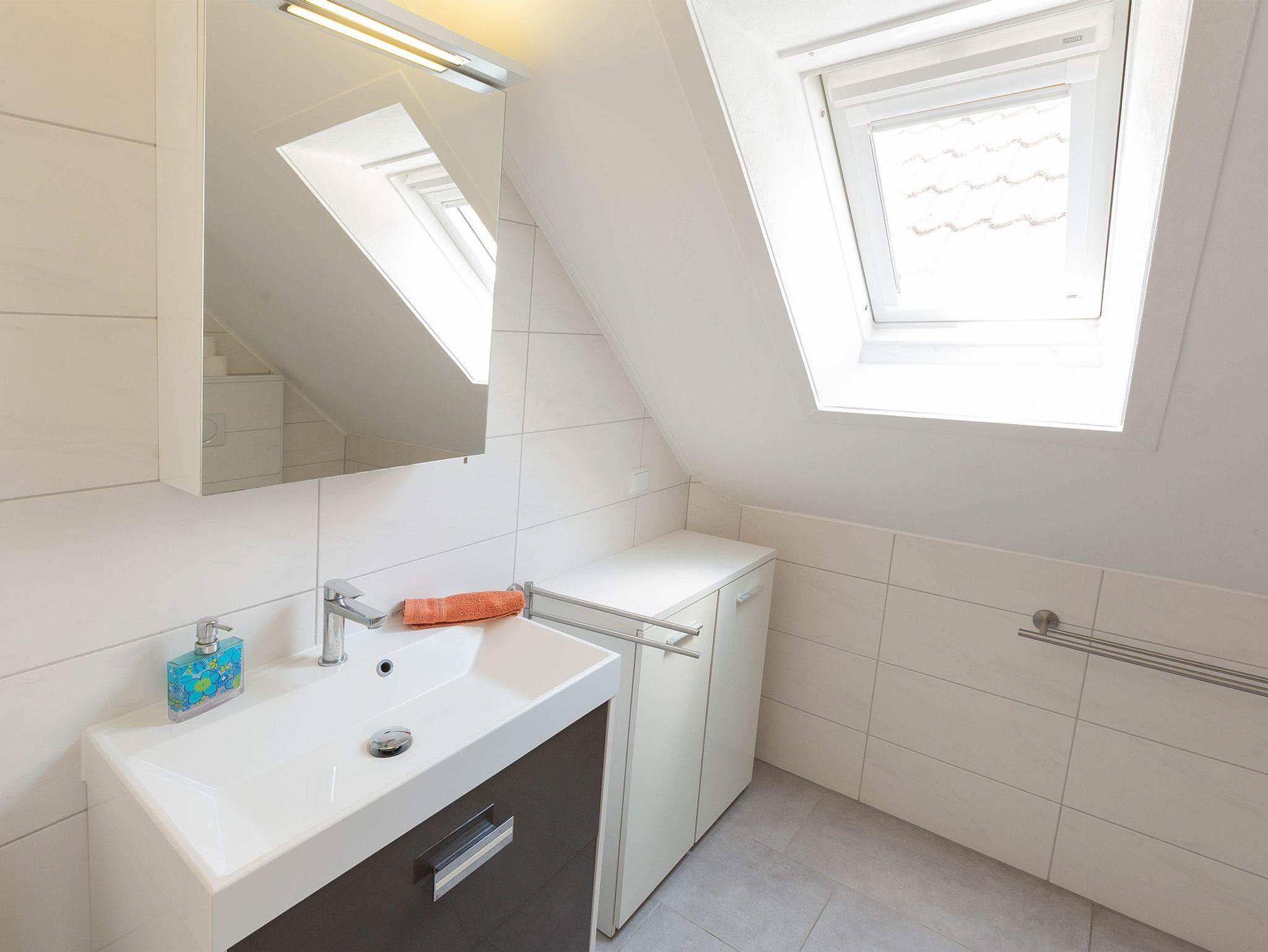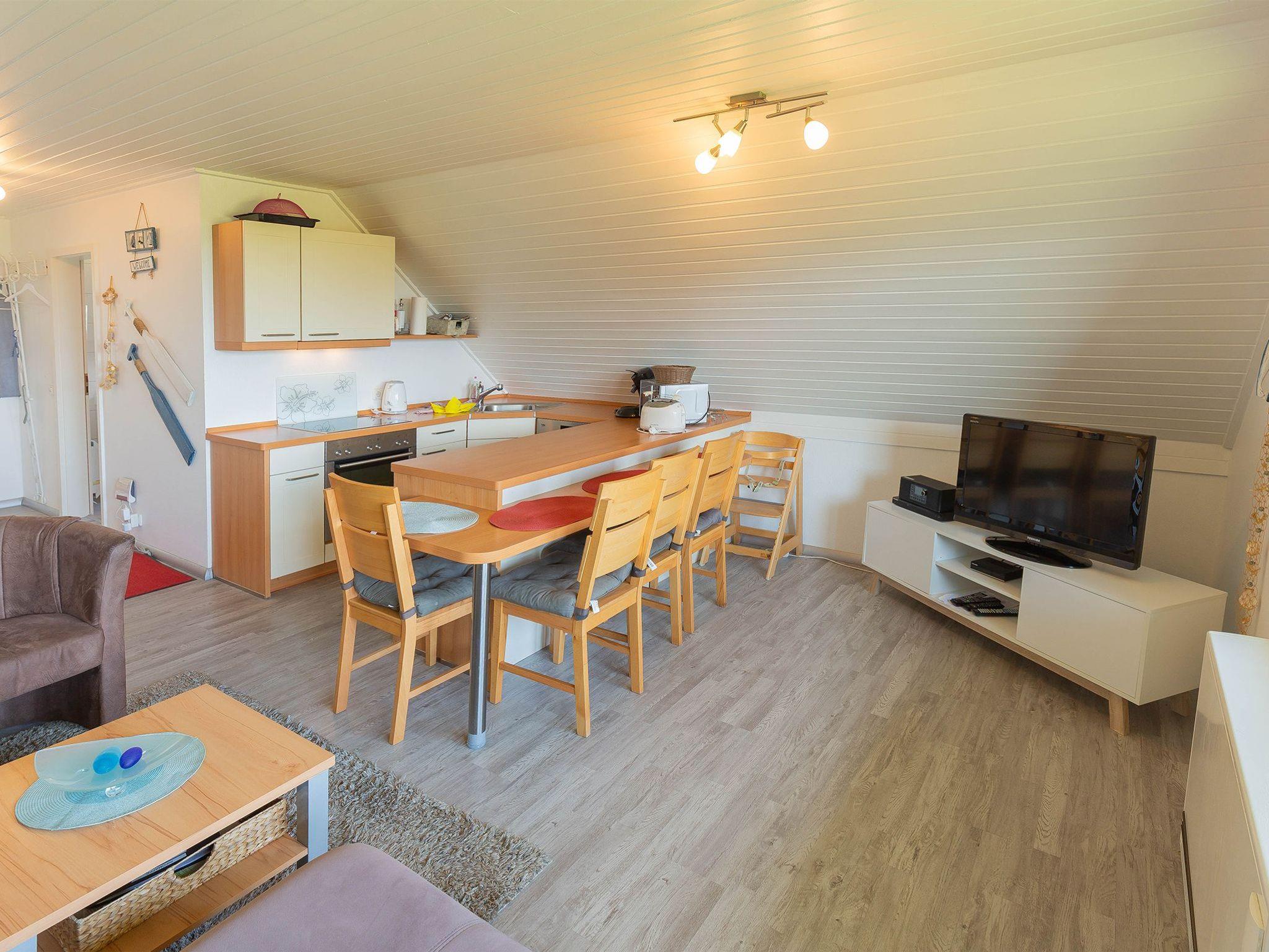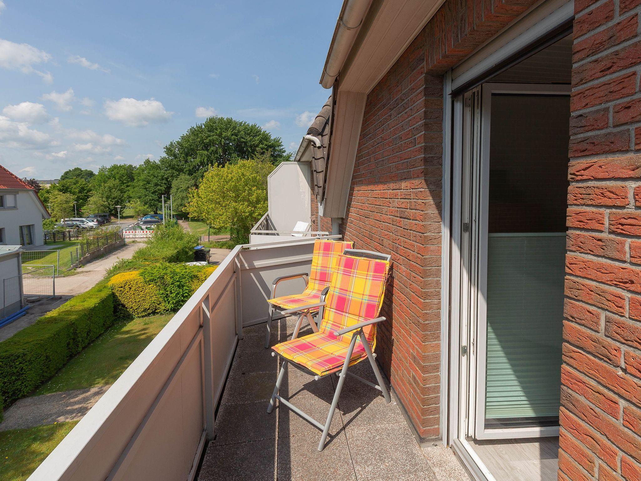 Direkt am Deich mit Blick auf den Jadebusen finden Sie unsere Wohnung Deichblick I am Kukshörner Weg 12b. Im ersten Stock erstreckt sich die Wohnung auf zwei Etagen. Auf Ebene eins finden Sie das Doppelschlafzimmer, das Wohn-/Esszimmer sowie das komplett sanierte Bad mit bodentiefer Dusche. Das Schlafzimmer mit Doppelbett hat ein weiteres TV-Gerät und hier ist ihr direkter Zugang zum Südbalkon. Im Wohnbereich - der Flat-Screen, DVD-Player und CD-Player bietet, gelangt man auf den weiteren Balkon mit einem schönen Blick auf den Jadebusen.