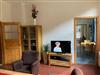 moderne Polsterrundecke, Sessel, Tisch, Schränke, Farb-TV mit Sat-Anlage, Stereoanlage mit CD, Diverses.