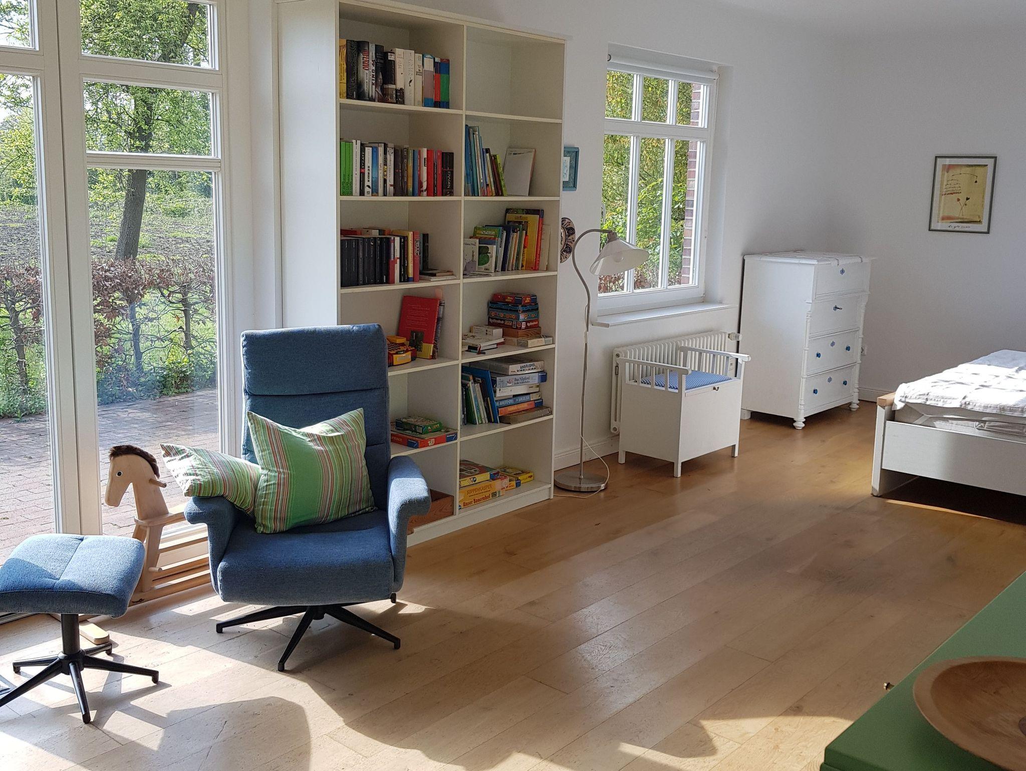 Wir bieten Ihnen eine idyllische Ferienwohnung im Erdgeschossmca 60qm für bis zu4 Personen auf dem Lande mit eigenem Garten. Genießen Sie den Ausblick auf die umliegenden Felder und Wiesen. Der Garten bietet viel Platz zum Spielen und Grillen. Es gibt 2 Sitzplätze; eine grosse Terrasse. Ein Sandkasten sowie eine Schaukel für die Kinder ist vorhanden.