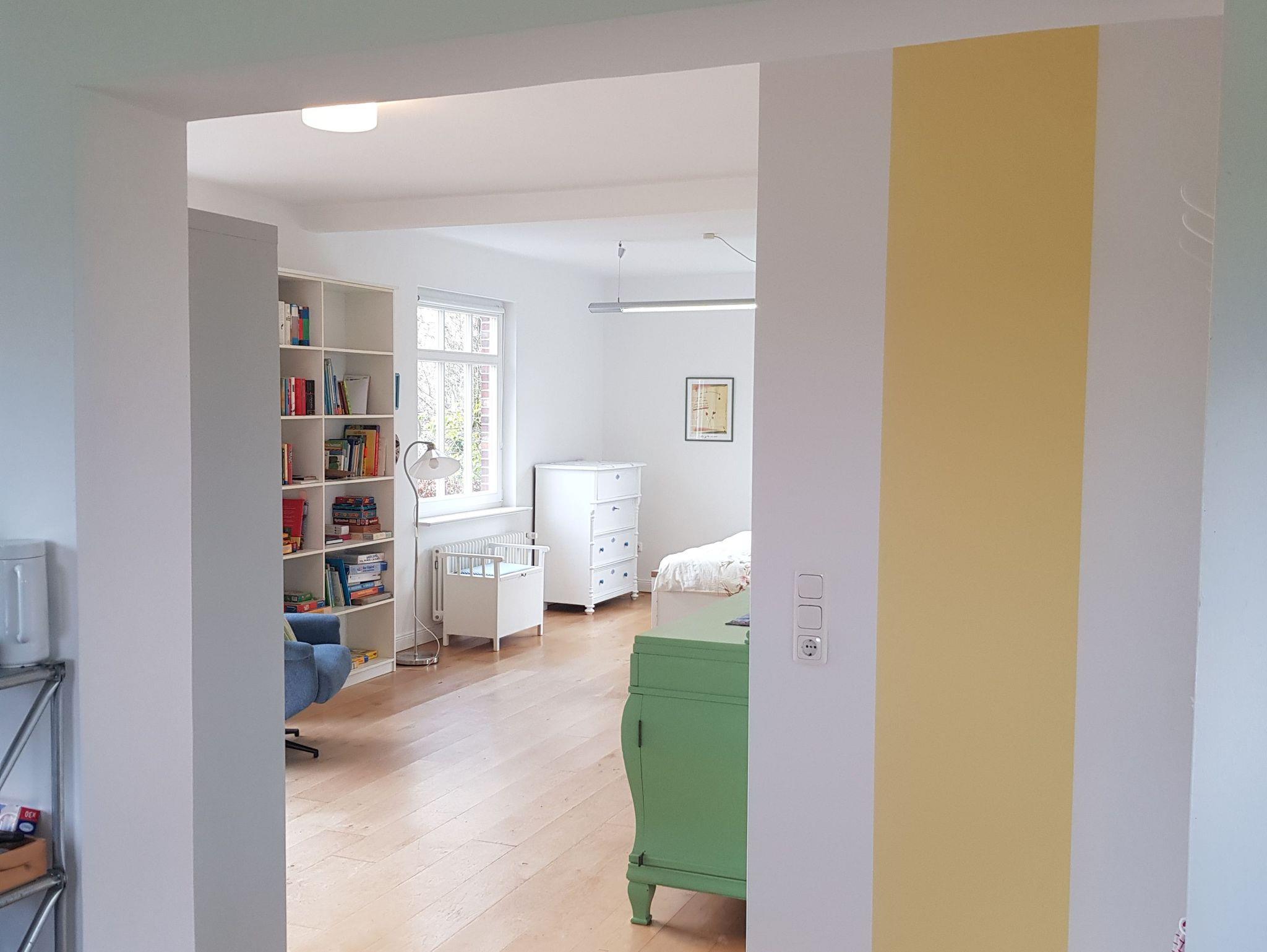Die Ferienwohnung im Erdgeschoss hat ein großes Badezimmer mit Dusche und WC, ein Schlafzimmer mit Schlafsofa sowie einen großügigen Wohn-, Schlaf- und Essbereich mit großem Doppelbett und bietet Platz für zwei Erwachsene und zwei Kinder. Es sind Spiele und Bücher vorhanden. Die Wohnung wurde 2020 renoviert und entspricht modernen Ansprüchen.Es können auch beide Wohnungen reserviert werden.