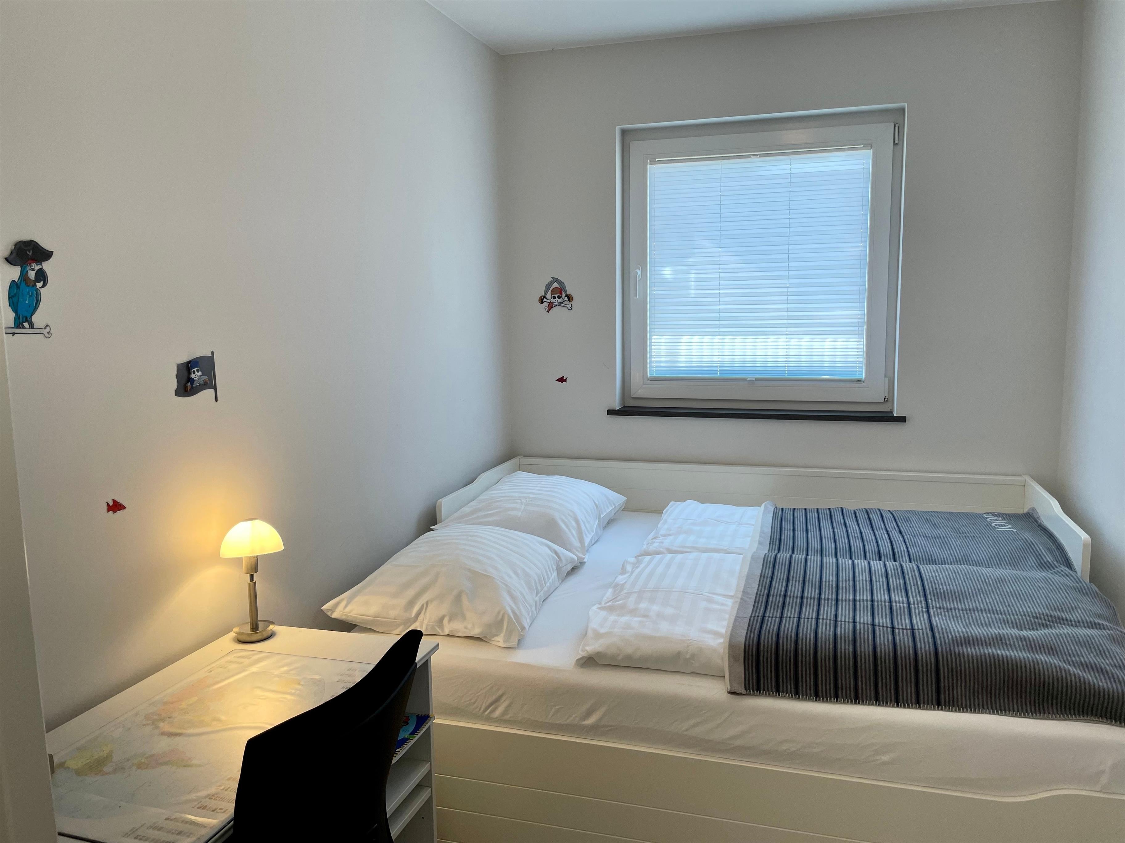 Das Elternschlafzimmer ist ausgestattet mit einem hochwertigen 180 x 200 cm 5-Sterne-Hotelbett (Box-Swing-Bett). Im Kinderzimmer (max. 2 Kinder) steht ein Ausziehbett (160 x 200 cm) mit komfortablen Matratzen zur Verfügung. Das moderne Badezimmer zeichnet sich durch modernes Design und hochwertige Sanitäreinrichtung aus. Ein Föhn ist selbstverständlich auch vorhanden. Durch das Wohnzimmer gelangen Sie auf die großzügige möblierte Terrasse mit schönem Garten zur sonnigen Südseite zum Erholen und Entspannen.