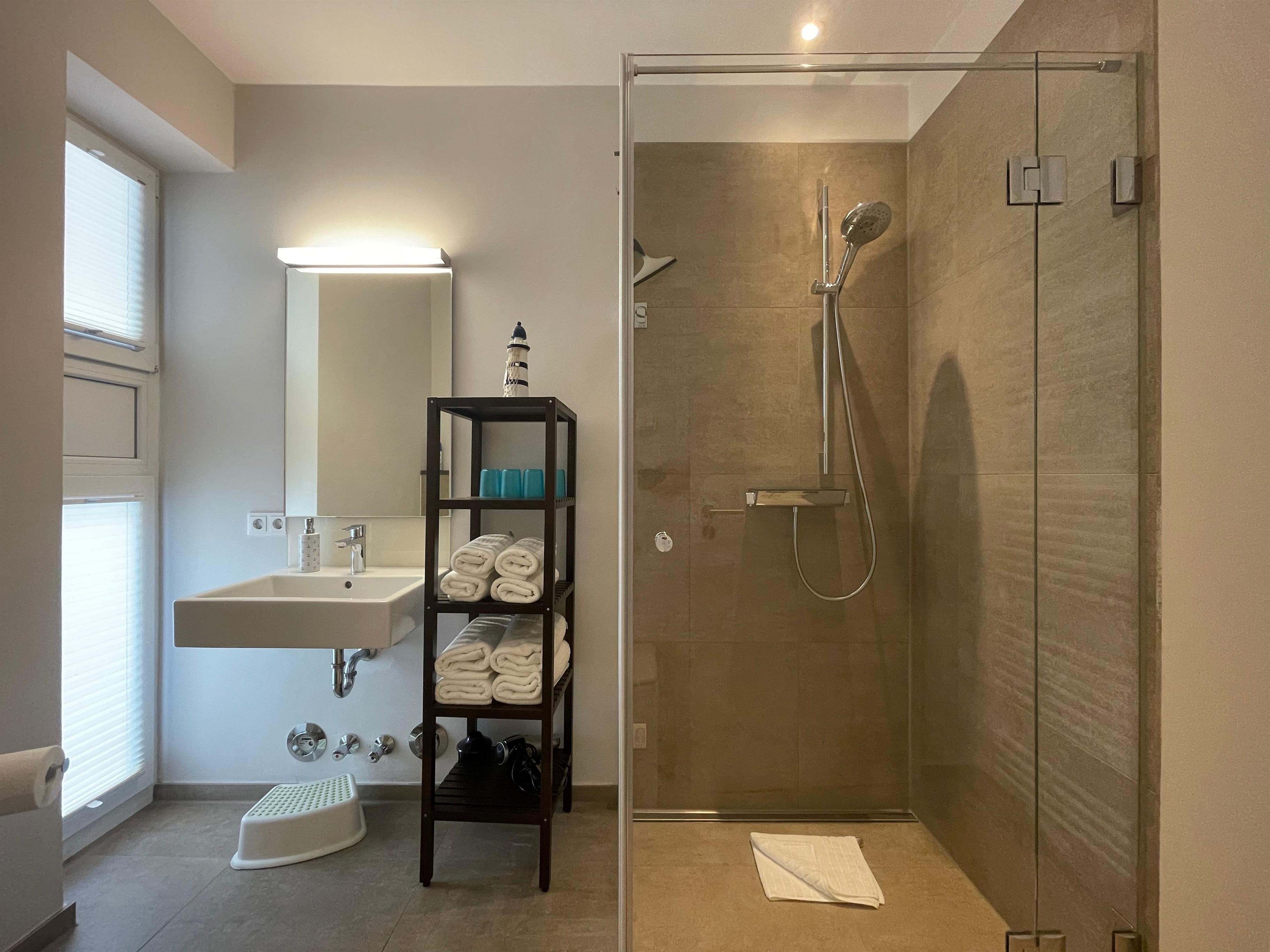 Wir bieten Ihnen einen angenehmen Aufenthalt in einem modernen maritimen Ambiente. Der helle und moderne Wohn-/Essbereich ist großzügig und hochwertig ausgestattet. Die offene Komfort-Wohnküche mit Kochinsel ist mit Spülmaschine , großem Induktionsherd, Backofen, Mikrowelle sowie Geschirr, Besteck und diversen Kochutensilien komplett ausgestattet. Ein moderner Flachbildfernseher ist ebenfalls vorhanden.