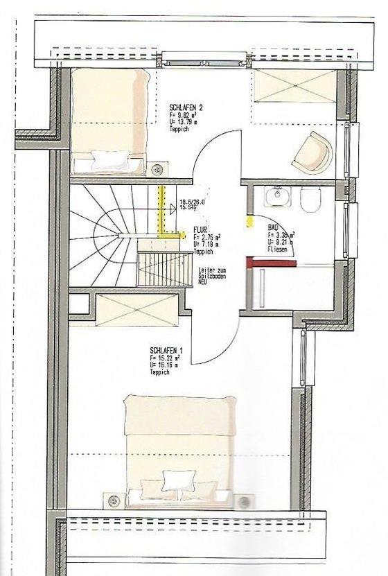 Im Erdgeschoss befinden sich zudem ein kleiner Abstellraum und eine Toilette.