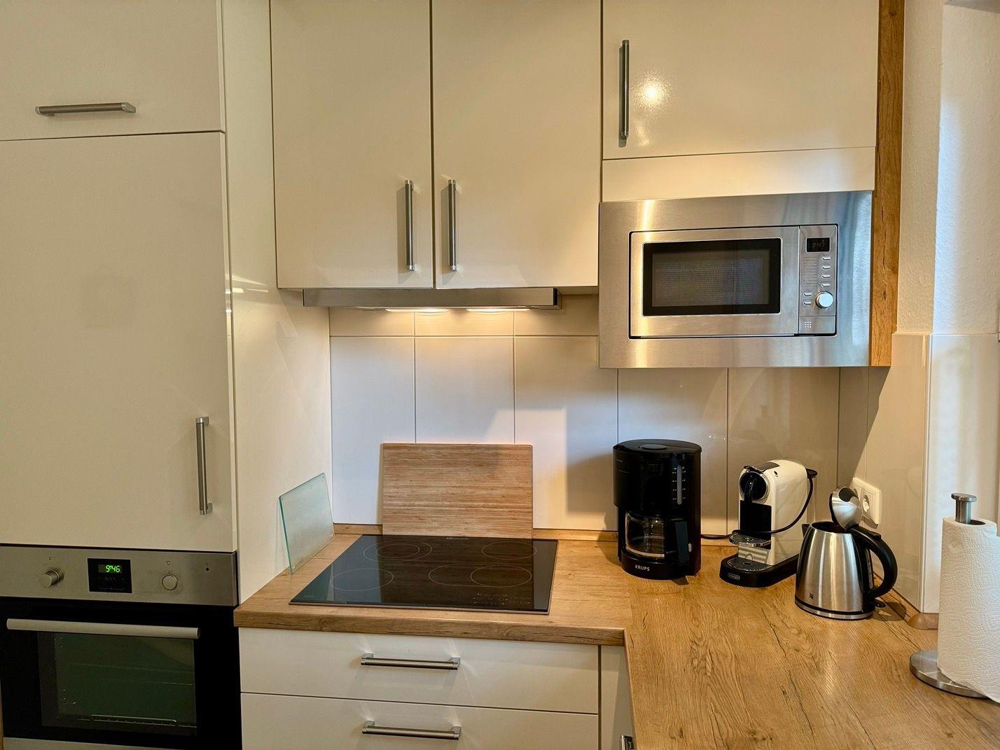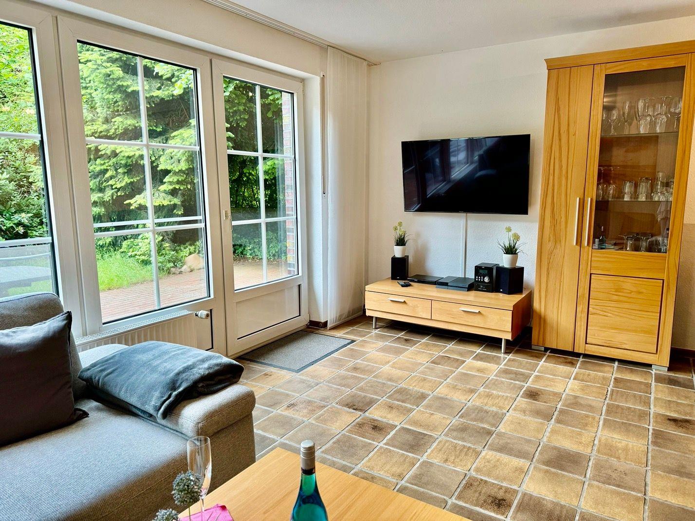 Ein wunderschönes großes Reihenendhaus mit KAMIN, gemütliches Wohnzimmer mit Essecke und Blick in den großen Süd-Garten, separate neue moderne Küche mit schönem Ausblick, 3 Schlafzimmer für 5 Personen - 1x mit Doppelbett 2x2 m und die Bettdecken mit 1,55x2,20m,