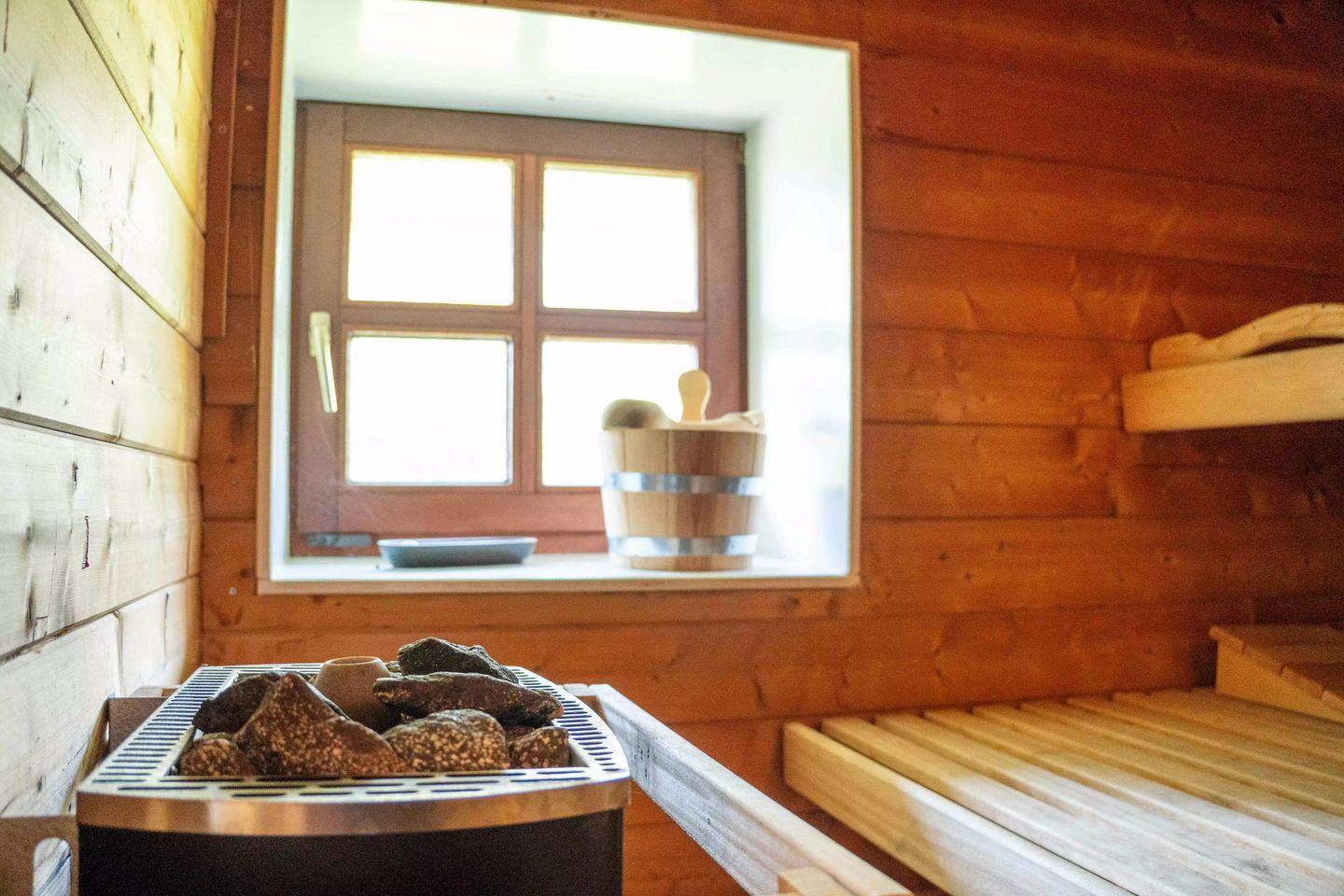 Im Saunabereich mit Ausgang zum Park finden Sie die nötige Entspannung. Das Grundstück hat große bepflanzte Gräben ringsherum.
