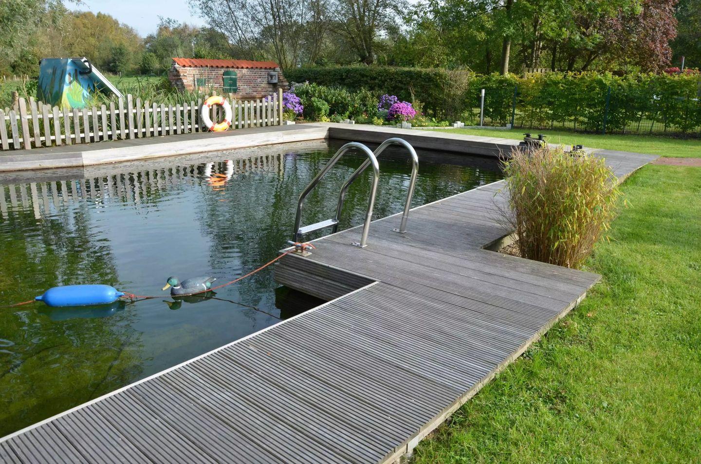 Mit Sauna, Schwimmteich und Dusche, Gartenhaus und Grillplatz.