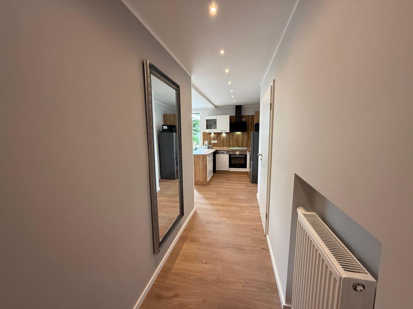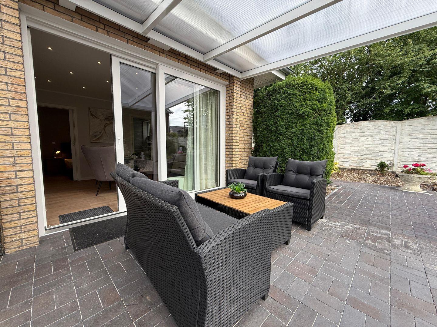 Ein besonderes Highlight ist die überdachte Terrasse mit Gartenblick, mit hochwertigen Gartenmöbeln ausgestattet. Sie haben direkten Zugang zum Garten, der ein zusätzliches Maß an Sicherheit und Privatsphäre bietet. Der private Parkplatz auf dem Grundstück ermöglicht eine bequeme Anreise und einen sorglosen Aufenthalt ohne Parkplatzsuche.