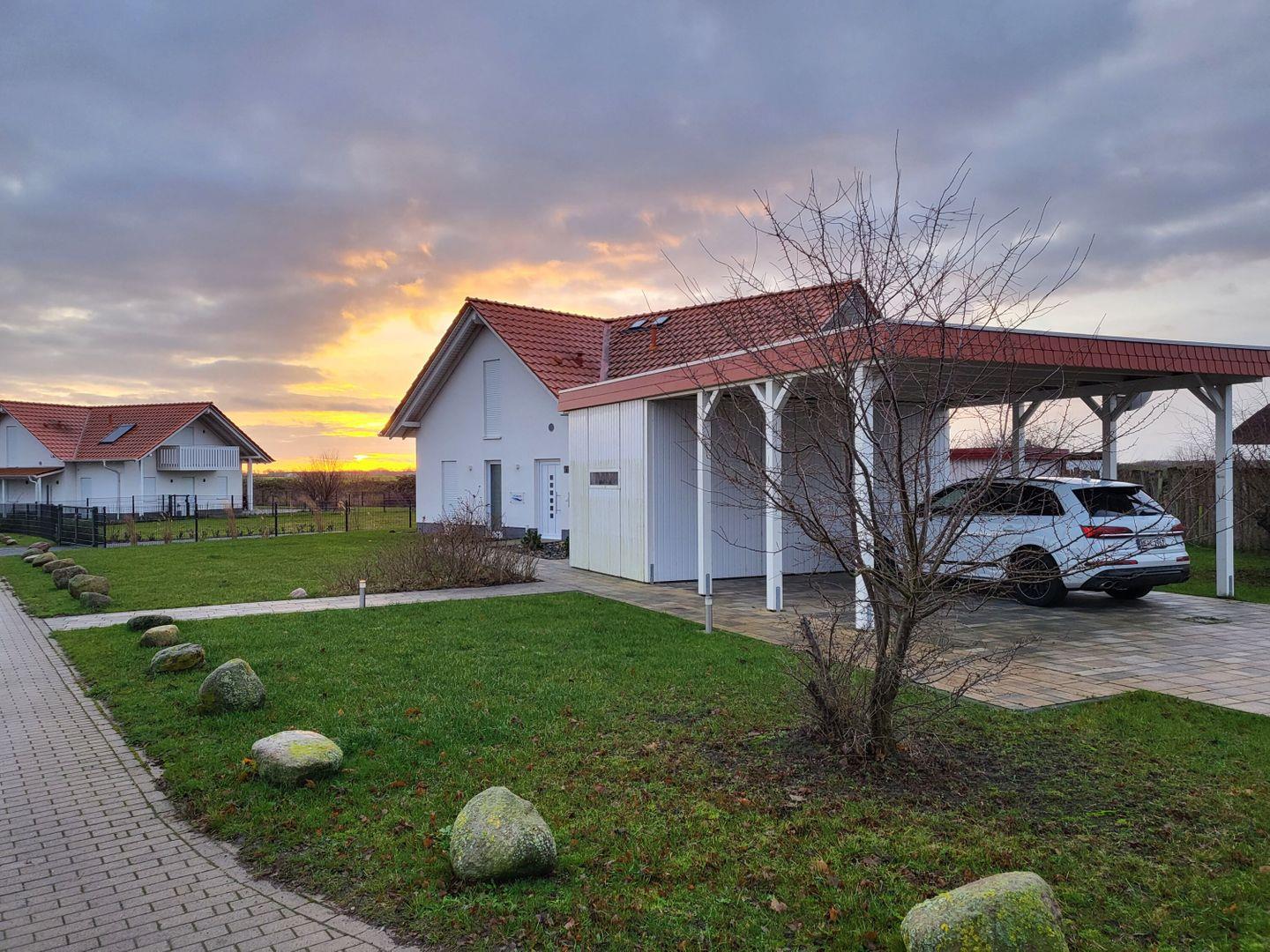 AUSSENBEREICH // Carport am Haus mit großen, angrenzenden Abstellraum zum Abstellen von Fahrrädern, Garten zur Nutzung, Trampolin, Sauna und Strandkorb ++