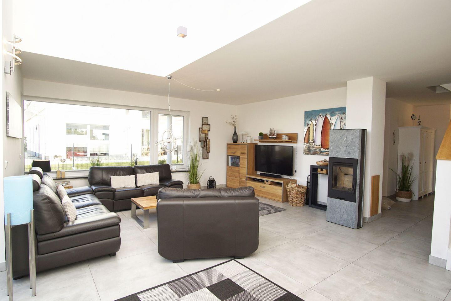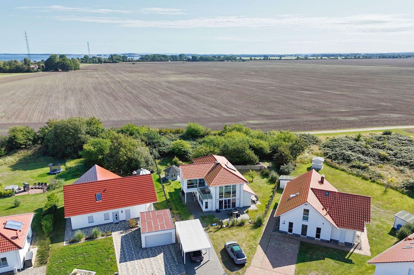 Die im Jahr 2017 errichtete Villa Kristall in Vaschvitz auf der Insel Rügen vereint hochwertige deutsche Massivbauweise mit zeitgemäßem Wohnkomfort. Auf zwei Etagen stehen Ihnen rund 180 Quadratmeter Wohnfläche zur Verfügung – ideal geeignet für bis zu sechs Gäste. Großzügig geschnittene, lichtdurchflutete Räume sowie bodentiefe Panoramafenster schaffen eine freundliche Atmosphäre und eröffnen einen beeindruckenden Blick in die umgebende Natur.