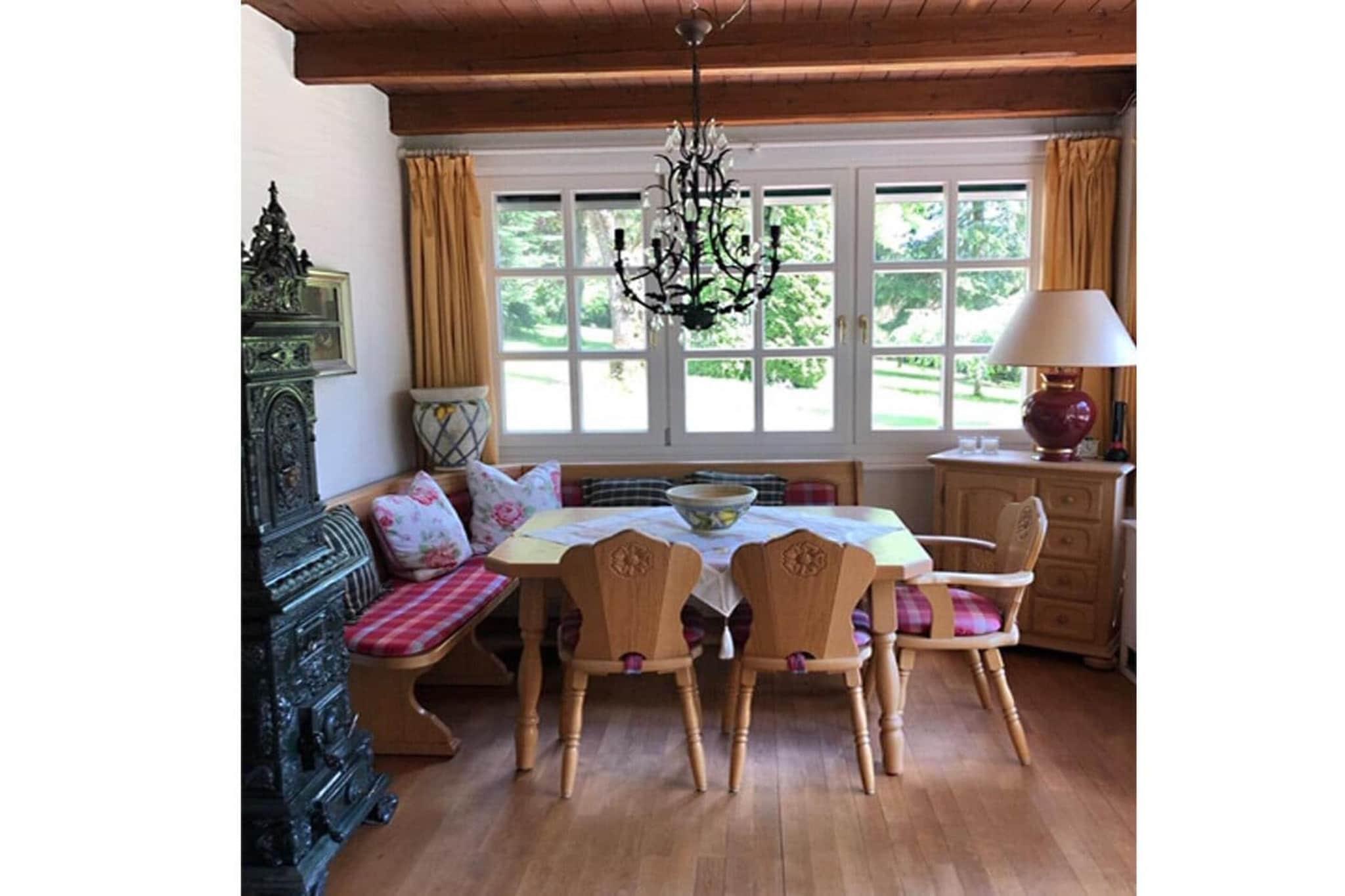 Would you like to enjoy the peace and quiet, feel good and relax after a strenuous day at the trade fair or after a few days of golf or just JUST enjoy the peace and quiet? We offer you the perfect holiday homes near the Nuremberg Exhibition Centre. The choice is yours. Would you like to go on holiday in Bavaria, preferably in the Upper Palatinate? Then the Weickenhof country house in the Upper Palatinate near Velburg is exactly the right address for you. The property is mainly used by the owners themselves and is therefore particularly high-quality and tastefully furnished. In order to offer other interested parties the opportunity to enjoy this unique holiday property, which is fully integrated into nature, it is also possible to rent it to a limited extent for discerning holiday guests. In the middle of the Franconian Jura (Upper Palatinate), between Nuremberg and Regensburg (each about 50 km away), surrounded by many smaller typical villages, the "Weickenhof" country house is located on a hill. The property offers 80 square meters of living space and 10,000 square meters of park-like garden with a fish pond and a small island, a sun terrace with a large pool, the perfect place to relax in the middle of nature. The country house has 2 bedrooms (bed 160 x 200 cm and 140 x 200 cm), 2 bathrooms (1 bathroom with toilet, 1 bathroom with shower), 1 kitchen and a spacious living room with adjoining farmhouse parlor and can therefore comfortably accommodate 4 people. The cozy and equally sophisticated furnishings are typical of a country house and fully meet even the highest demands. Through the white lattice windows you can enjoy a never-ending view of the private park and the surrounding panorama from almost all rooms. The house is centrally heated with night storage heating and also has an open fireplace. Wood supplies are plentiful. Depending on the weather, the cozy farmhouse parlor or the terrace covered with Italian tiles are equally inviting for breakfast, lunch and dinner.