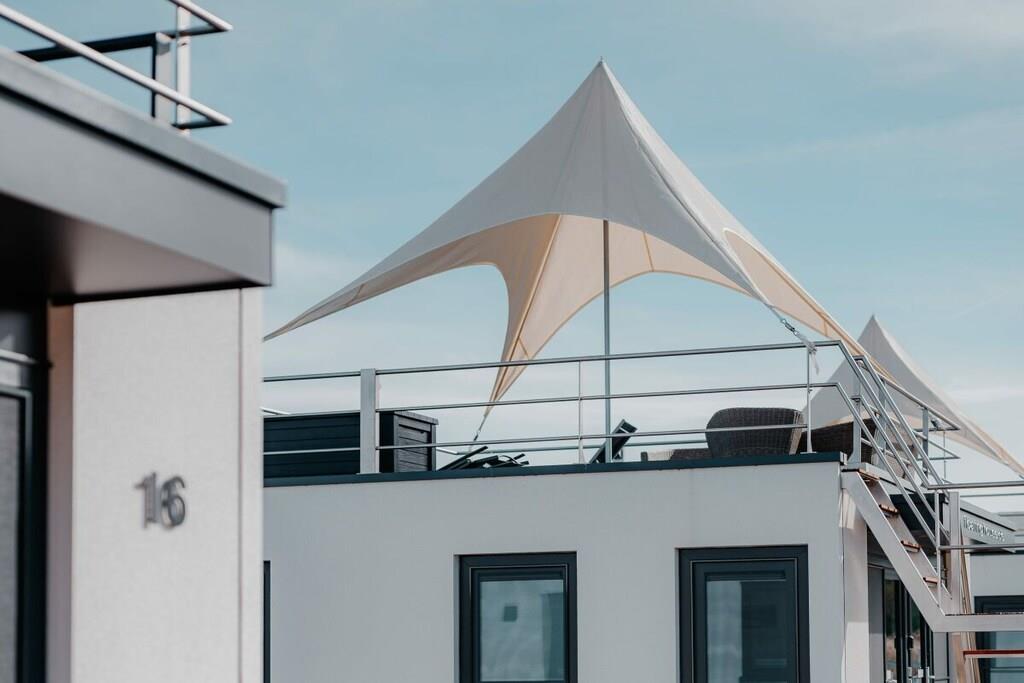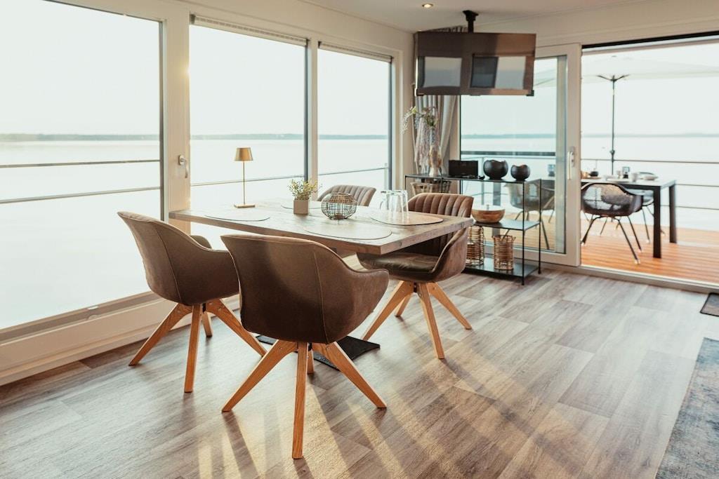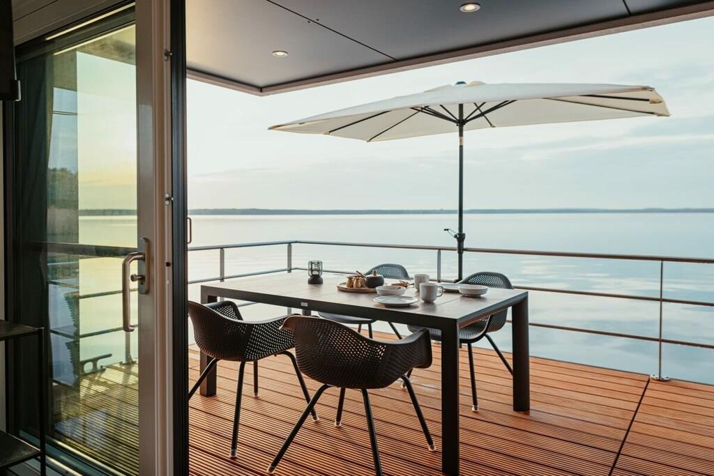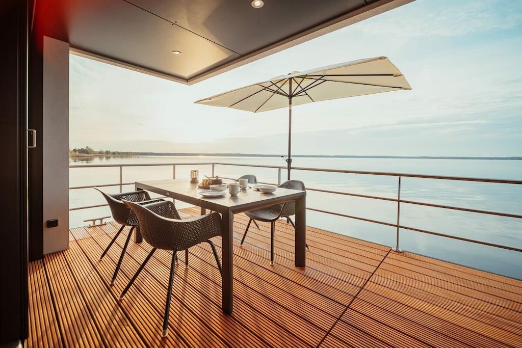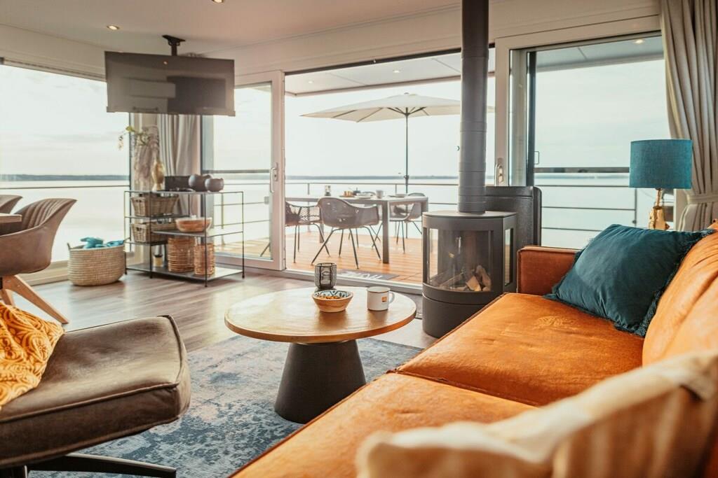 At bo på vandet med en betagende udsigt bringer ren afslapning efter blot et par timer, og du vil næppe have lyst til at forlade dit feriehus. Det kan være så nemt at flygte fra hverdagen! Fast forankret og flydende på bølgerne tilbyder vores husbåde et fuldt og luksuriøst møbleret opholdsrum og en tagterrasse. Sove- og opholdsrummene er stilfuldt indrettet. De to separate soveværelser med dobbeltsenge, det fuldt udstyrede køkken og det moderne brusebad med separat toilet tilbyder alle de bekvemmeligheder, der garanterer en afslappende ferie. En komfortabel sovesofa til to ekstra gæster er også tilgængelig i nogle modeller. Tagterrassen er det perfekte sted at slappe af.