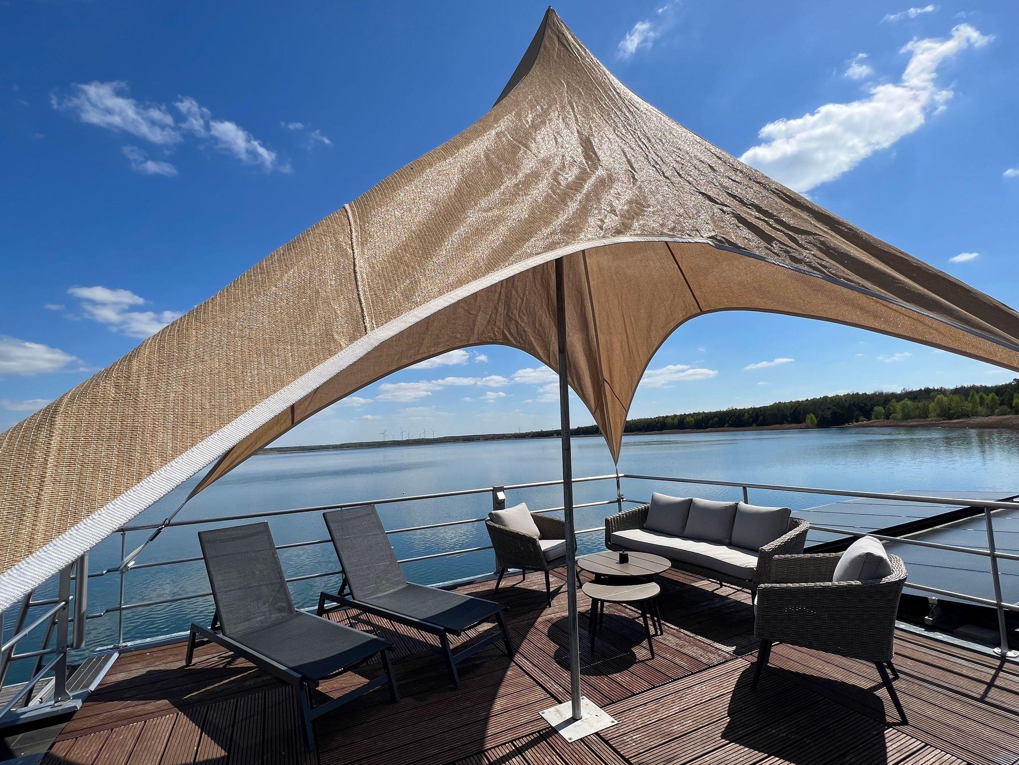 Die modernen Hausboote liegen ruhig und idyllisch am Gräbendorfer See bei Laasow. Jedes Ferienhaus verfügt über eine umlaufende Wasserterrasse und eine großzügige Panoramadachterrasse mit 360-Grad-Blick auf See und Natur. Für Privatsphäre sorgen blickdichte Plissees und Sonnensegel. Hier wird aus dem Alltag eine Auszeit mit besonderem Charakter.