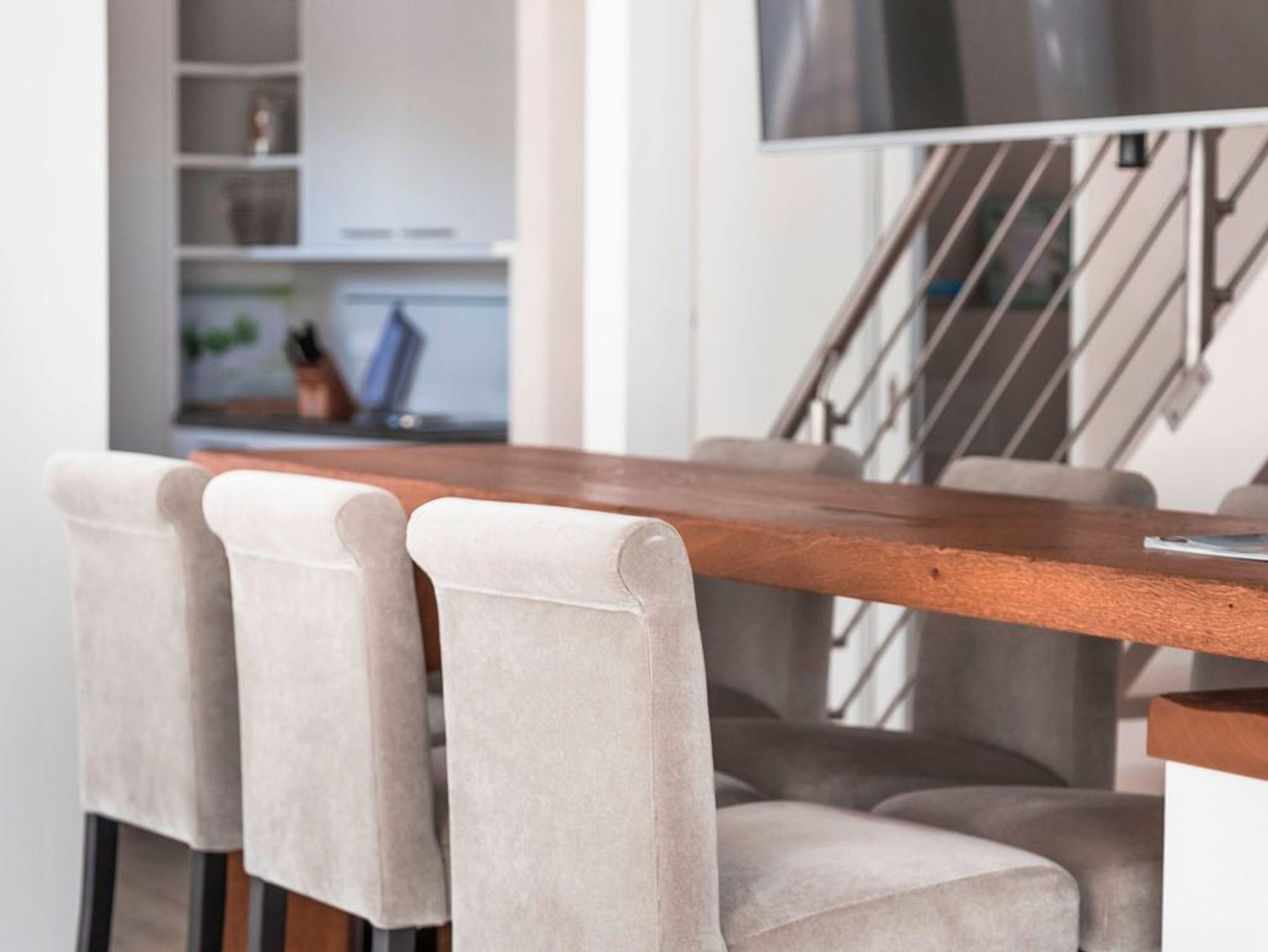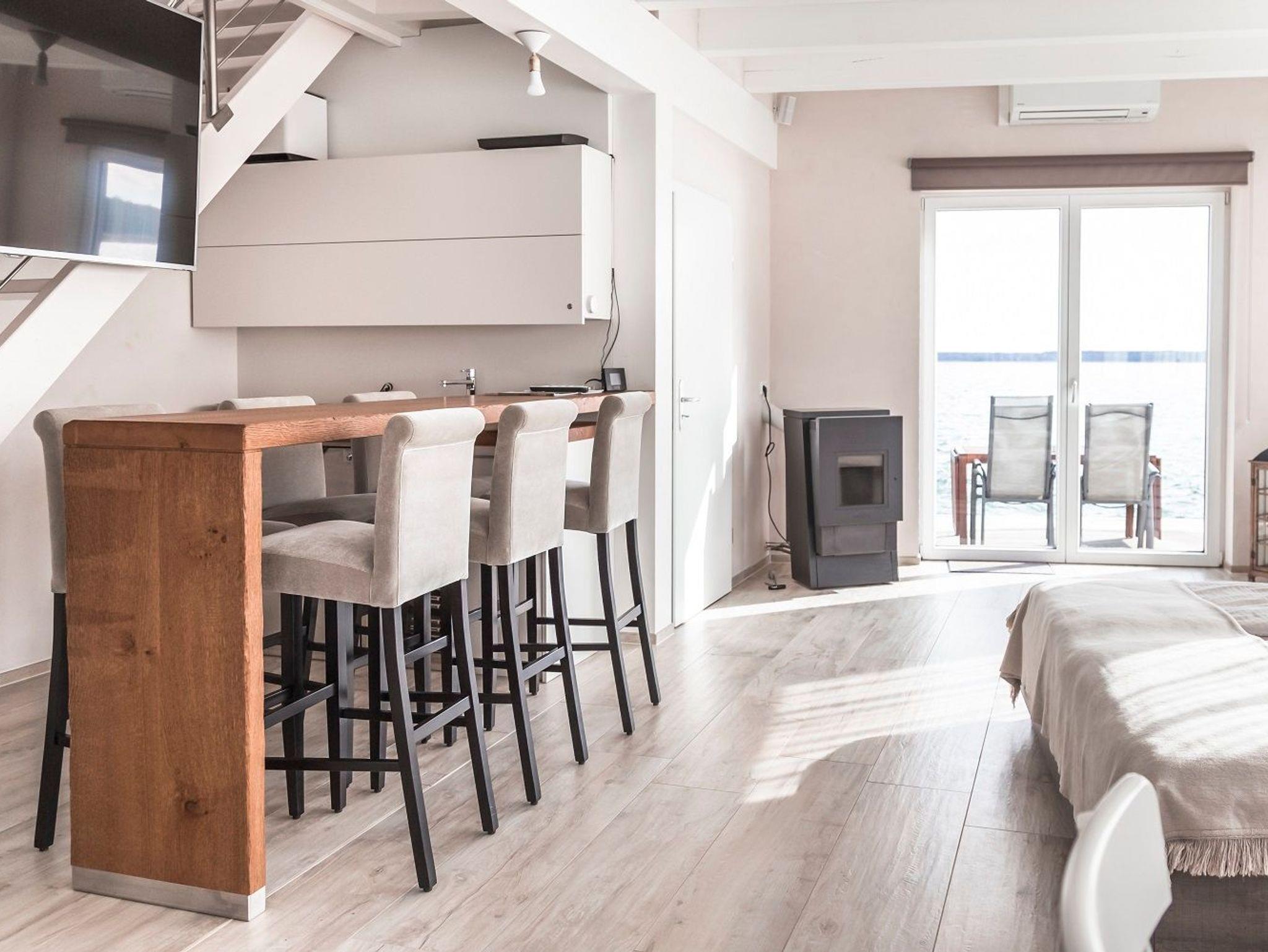 Die 116 m² Nutzfläche mit einer modernen Heizungs-/Klima-Technik sowie einem Pellet-Kamin ausgestattet ist an kalten und heißen Tagen immer angenehm. Viel schöner ist es jedoch, Sonne, Wasser und leichten Wind auf der Umlauffläche von ca. 45 m² zu genießen. Die Möwe1 verfügen über ein hochwertiges, gefliestes Badezimmer mit WC, Waschtisch und großer Badewanne, ein Doppelbett und einen Schlafsofa im Obergeschoss sowie ein separates Bad mit WC, Waschtisch und begehbarer Dusche und ein Doppelbett im Erdgeschoss. Die hochwertig eingerichtete Profi-Küche und die exklusive Multimedia-Ausstattung mit mehreren großen Ultra-HD Displays und Sound-System der Oberklasse lassen keine Wünsche offen. Ein High-Speed Internetzugang mit WLAN-Zugang steht selbstverständlich ohne Einschränkungen zur Verfügung.