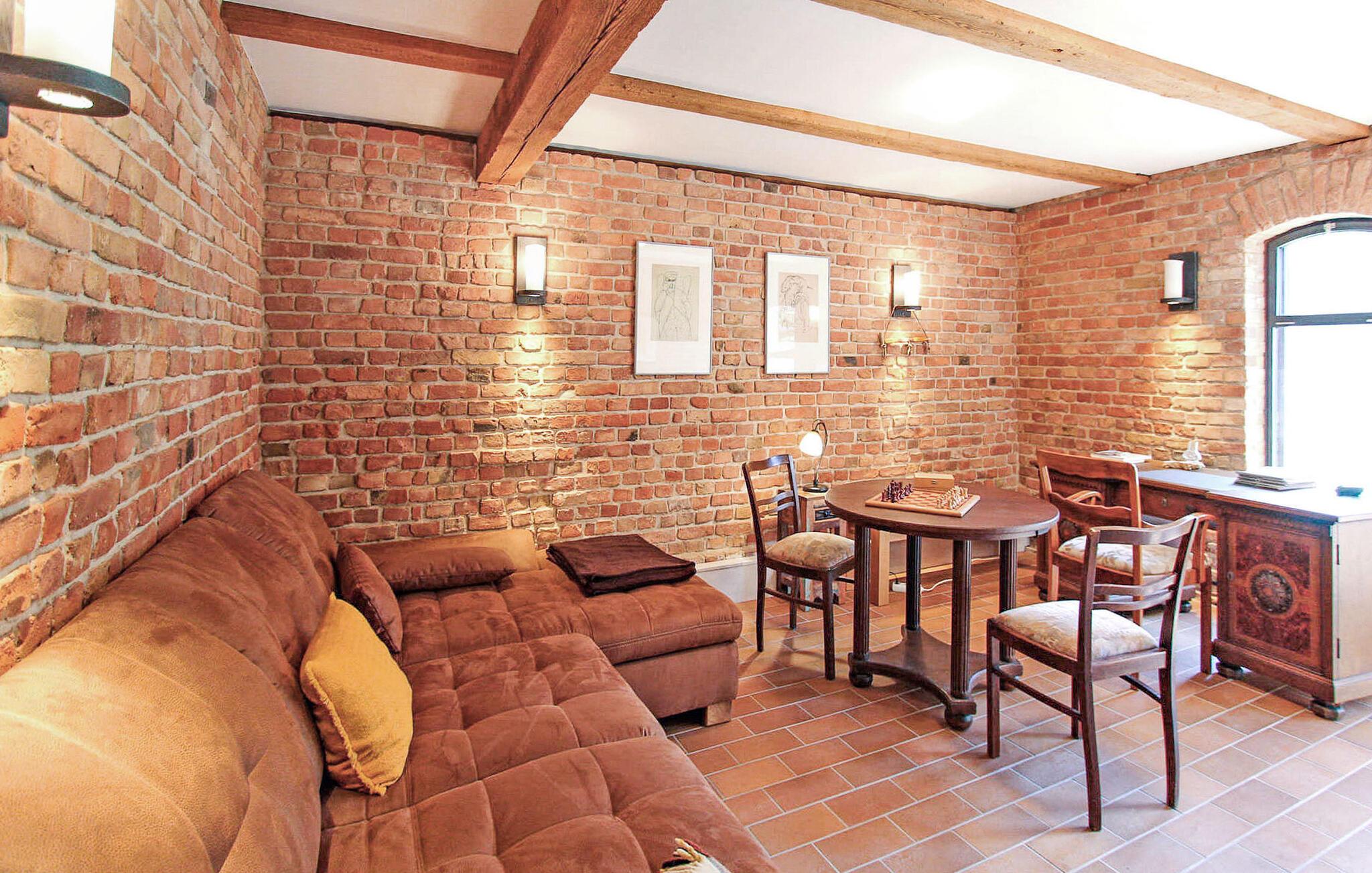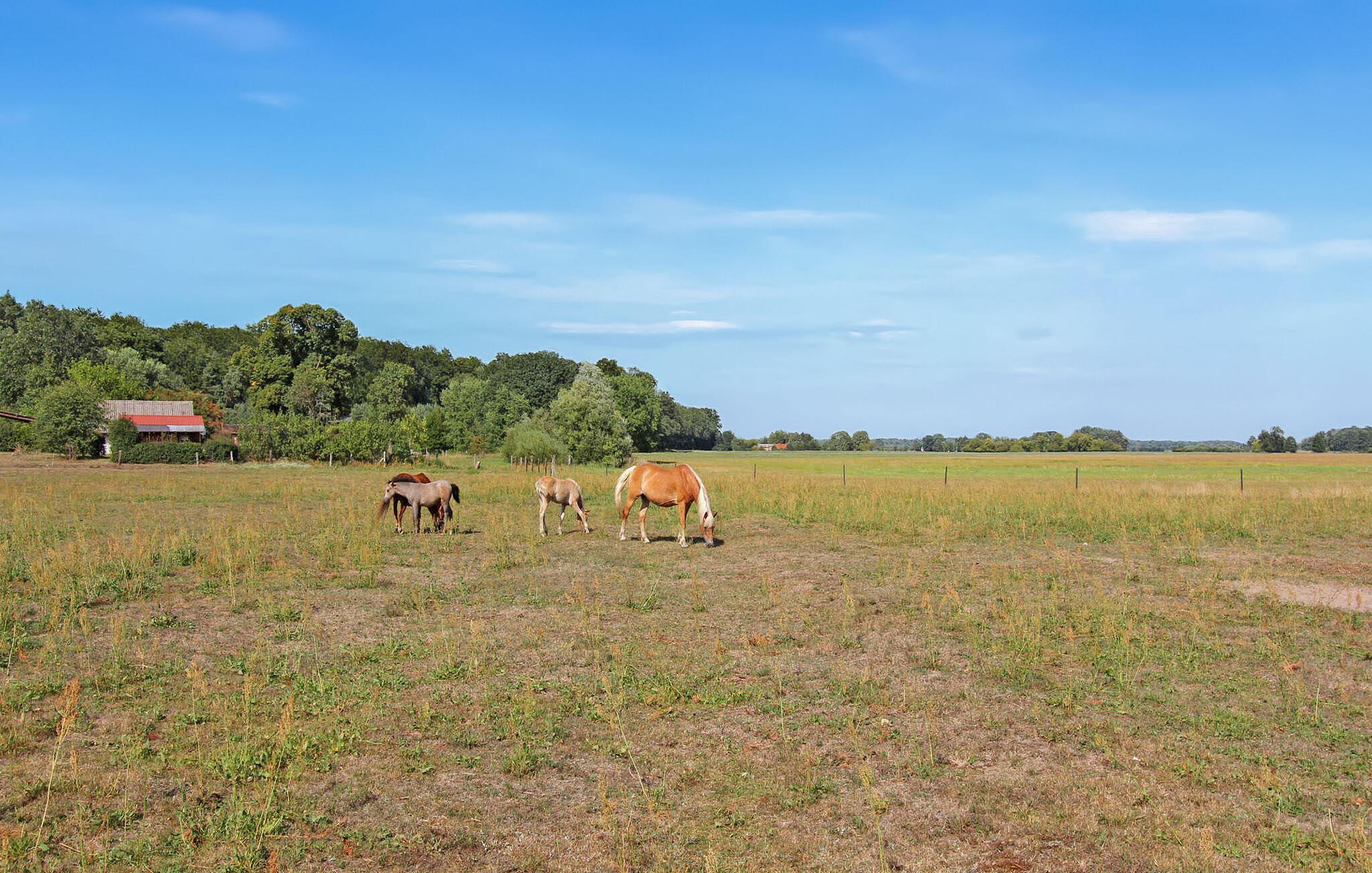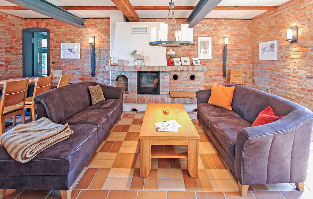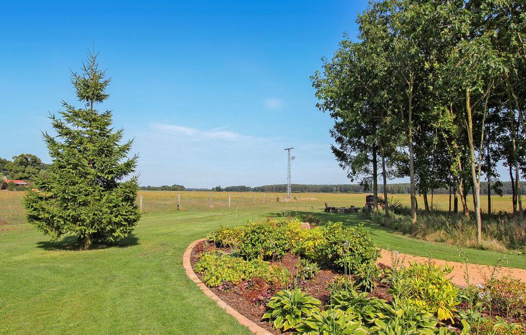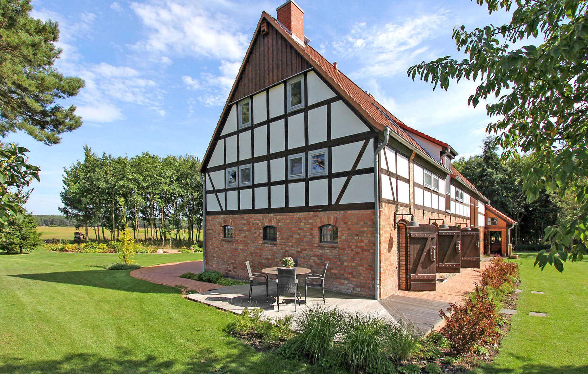 Skov, enge, åbent landskab og en fredet bygning. Dette komfortable feriehus, en tidligere lade, ligger på en fritliggende naturgrund på 5000 kvadratmeter i rolige omgivelser i skovbrynet i Riesenbrück-distriktet. Fødestedet for Paul Holz, en nationalt betydningsfuld maler og illustrator fra Vorpommern, ligger på den gamle gård. Feriehuset blev omfattende renoveret i 2016 og indrettet til en høj standard. Faciliteterne opfylder enhver kræsen smag. Bygningen er designet til et komfortabelt ophold for mindre grupper eller familier. Stueetagen har et stort fællesrum med spisebord, polstret siddegruppe, pejs (første levering af brænde inkluderet, derefter 3 € pr. kurv), fladskærms-tv og hi-fi, et moderne og fuldt udstyret køkken, en kombineret stue/soveværelse med dobbeltseng og et gæstetoilet. På øverste etage er der to separate lejligheder, hver med en stue med en eller to sovesofaer og et tv, en hems med dobbeltseng (tilgængelig via en pladsbesparende trappe) og et badeværelse hver (et brusebad, et badekar). En højstol og en rejseseng (nem at samle) kan stilles til rådighed til små børn. Gratis Wi-Fi og Netflix er også tilgængelige. Hele feriehuset er meget rummeligt, både indendørs og udendørs, og tilbyder masser af plads til retræter og afslapning, selv for større grupper. Udenfor er der flere møblerede siddeområder (nogle overdækket), et bål- og grillområde, liggestole, cykelopbevaring og parkeringspladser. Brug af den udendørs sauna er tilgængelig efter anmodning. Enkle cykler kan lejes på stedet efter aftale. Det er muligt at observere lokale klovdyrarter såsom kronhjorte, dåhjorte, rådyr og vildsvin direkte fra ejendommen. Kikkerter og spotting scopes kan lejes på stedet efter anmodning. Uden for den primære feriesæson bookes indkvarteringen også ofte af mobile samlehold eller virksomheder. Vi tilbyder rummelige indkvarteringer til særlige, overkommelige priser, selv for mindre grupper. Kæledyr: Et kæledyr er udtrykkeligt tilladt på denne ejendom.