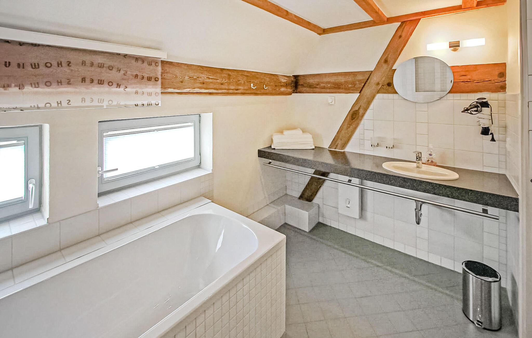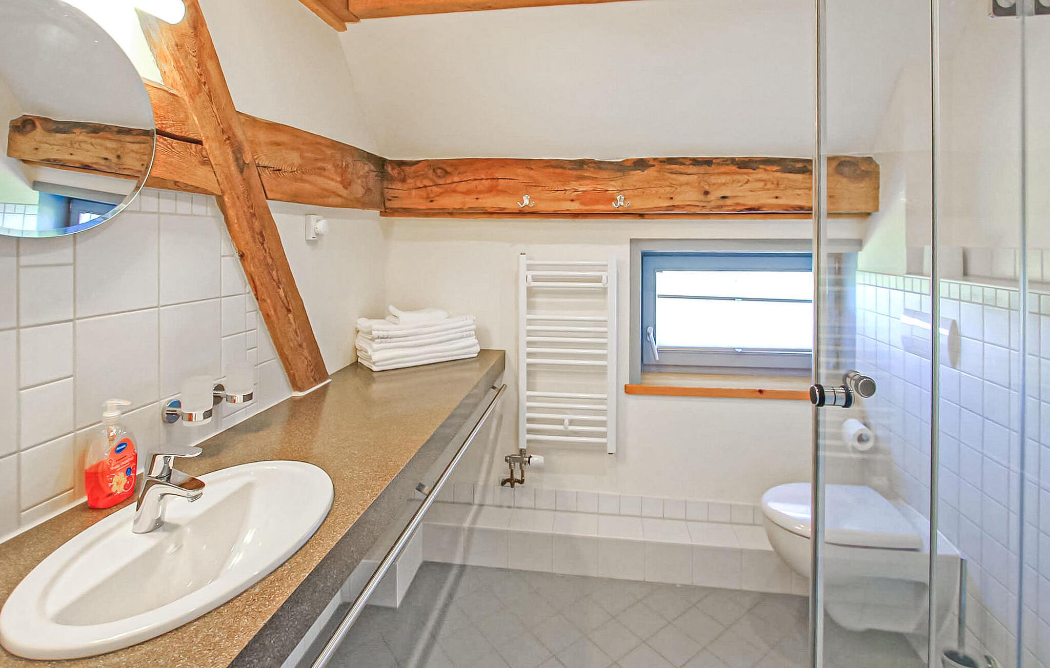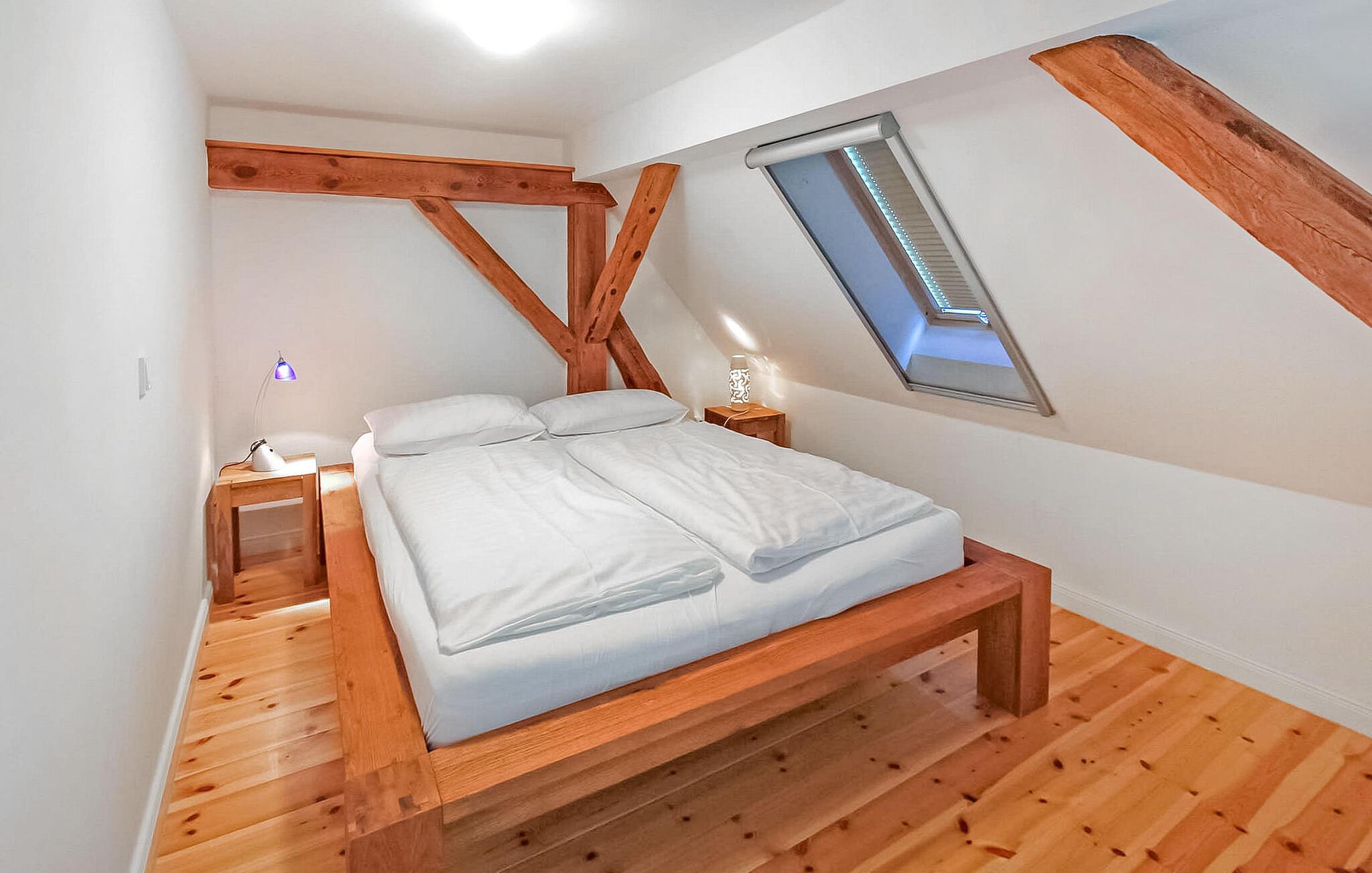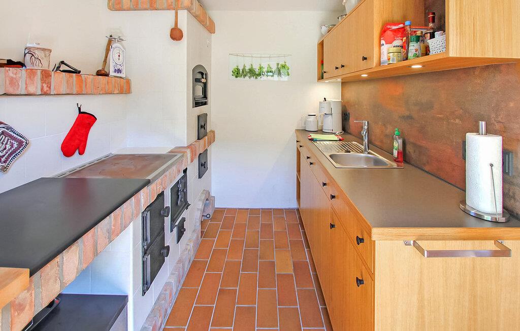 Skov, enge, åbent landskab og en fredet bygning. Dette komfortable feriehus, en tidligere lade, ligger på en fritliggende naturgrund på 5000 kvadratmeter i rolige omgivelser i skovbrynet i Riesenbrück-distriktet. Fødestedet for Paul Holz, en nationalt betydningsfuld maler og illustrator fra Vorpommern, ligger på den gamle gård. Feriehuset blev omfattende renoveret i 2016 og indrettet til en høj standard. Faciliteterne opfylder enhver kræsen smag. Bygningen er designet til et komfortabelt ophold for mindre grupper eller familier. Stueetagen har et stort fællesrum med spisebord, polstret siddegruppe, pejs (første levering af brænde inkluderet, derefter 3 € pr. kurv), fladskærms-tv og hi-fi, et moderne og fuldt udstyret køkken, en kombineret stue/soveværelse med dobbeltseng og et gæstetoilet. På øverste etage er der to separate lejligheder, hver med en stue med en eller to sovesofaer og et tv, en hems med dobbeltseng (tilgængelig via en pladsbesparende trappe) og et badeværelse hver (et brusebad, et badekar). En højstol og en rejseseng (nem at samle) kan stilles til rådighed til små børn. Gratis Wi-Fi og Netflix er også tilgængelige. Hele feriehuset er meget rummeligt, både indendørs og udendørs, og tilbyder masser af plads til retræter og afslapning, selv for større grupper. Udenfor er der flere møblerede siddeområder (nogle overdækket), et bål- og grillområde, liggestole, cykelopbevaring og parkeringspladser. Brug af den udendørs sauna er tilgængelig efter anmodning. Enkle cykler kan lejes på stedet efter aftale. Det er muligt at observere lokale klovdyrarter såsom kronhjorte, dåhjorte, rådyr og vildsvin direkte fra ejendommen. Kikkerter og spotting scopes kan lejes på stedet efter anmodning. Uden for den primære feriesæson bookes indkvarteringen også ofte af mobile samlehold eller virksomheder. Vi tilbyder rummelige indkvarteringer til særlige, overkommelige priser, selv for mindre grupper. Kæledyr: Et kæledyr er udtrykkeligt tilladt på denne ejendom.