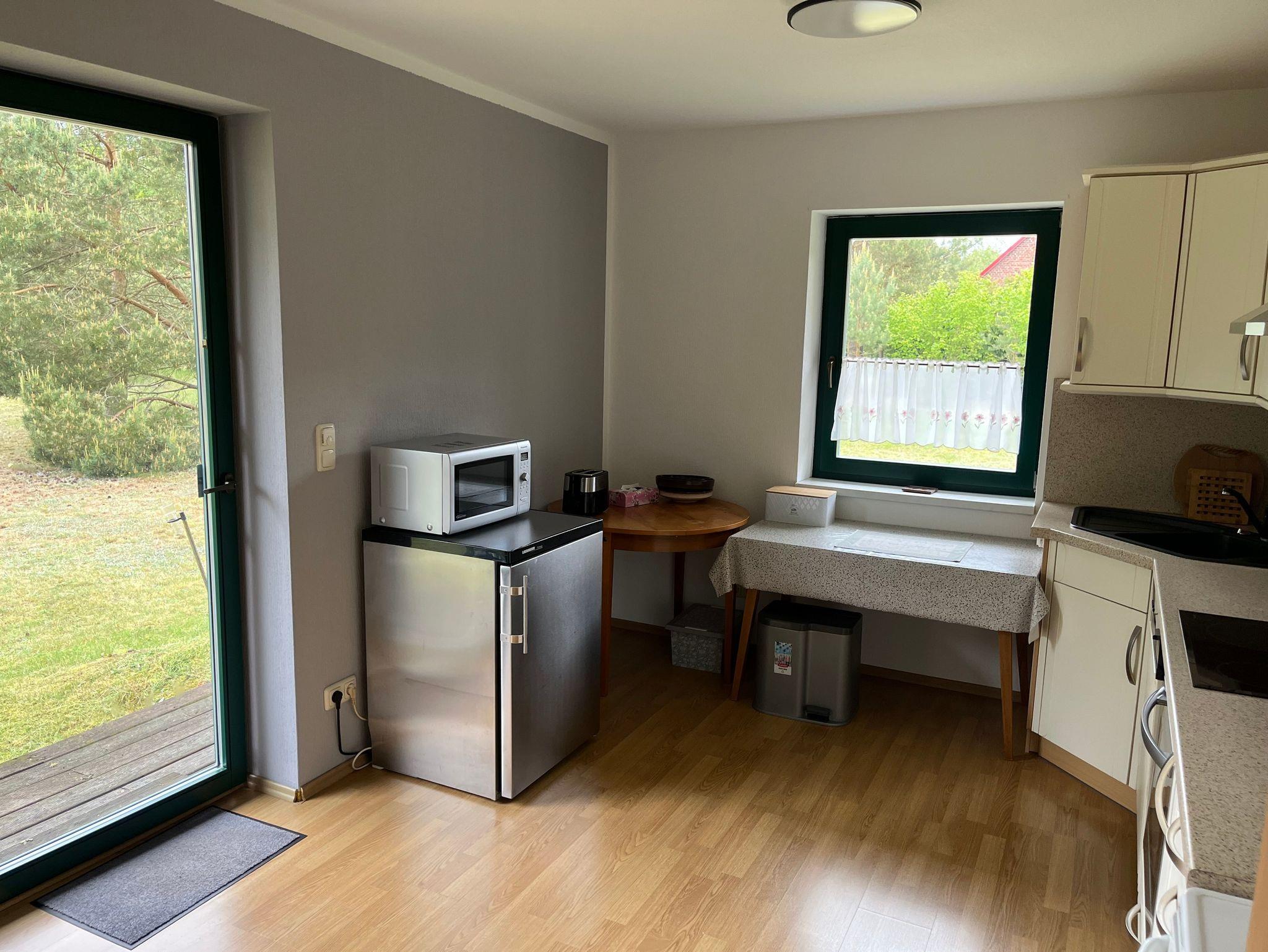 Diese Wohnsiedlung zeichnet sich durch die unbellbare Nähe zum Wald und zur Uecker aus. Im Ferienhaus befindet sich alles auf einer Ebene. Die Böden sind gefliest oder mit Laminat belegt, ideal zu pflegen, wenn Sie Ihren Hund mitbringen. Der Blick zum Kamin, insbesondere an kälteren Tagen - ein Genuss. Im Sommer können Sie das Wetter auf der Terrasse genießen oder den Tag im Seebad Ueckermünde verbringen. Fernseher, Telefon und WLAN sind vorhanden, um sich auch an einem Regentag beschäftigen zu können.