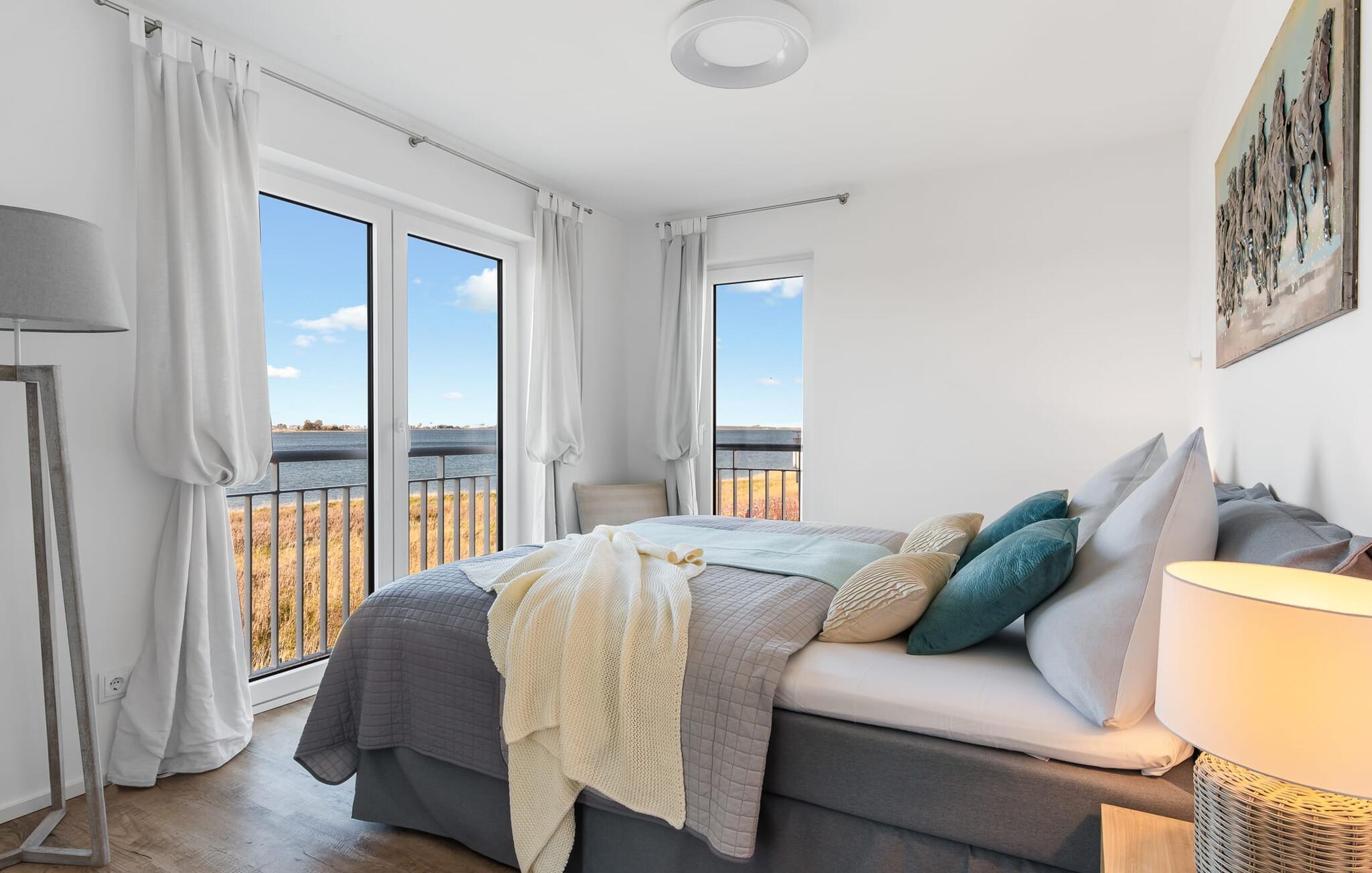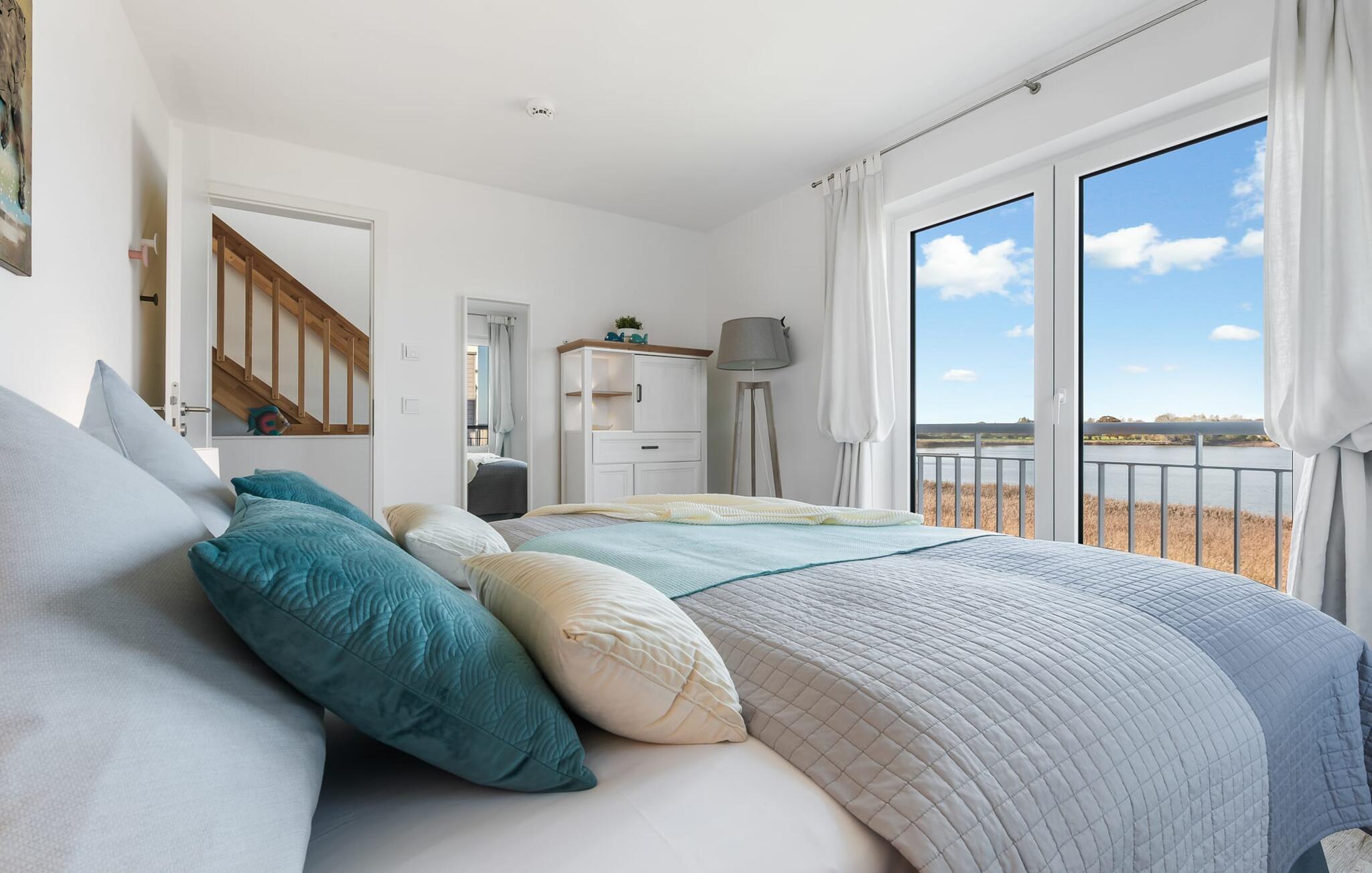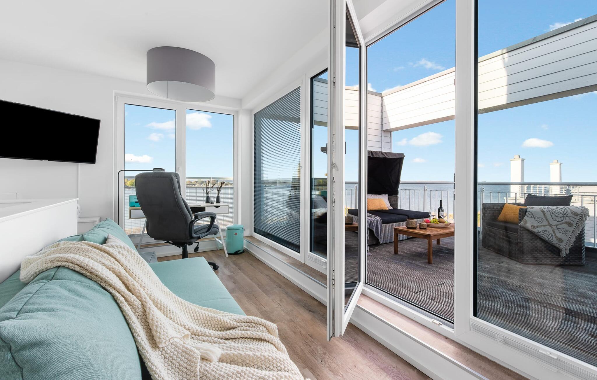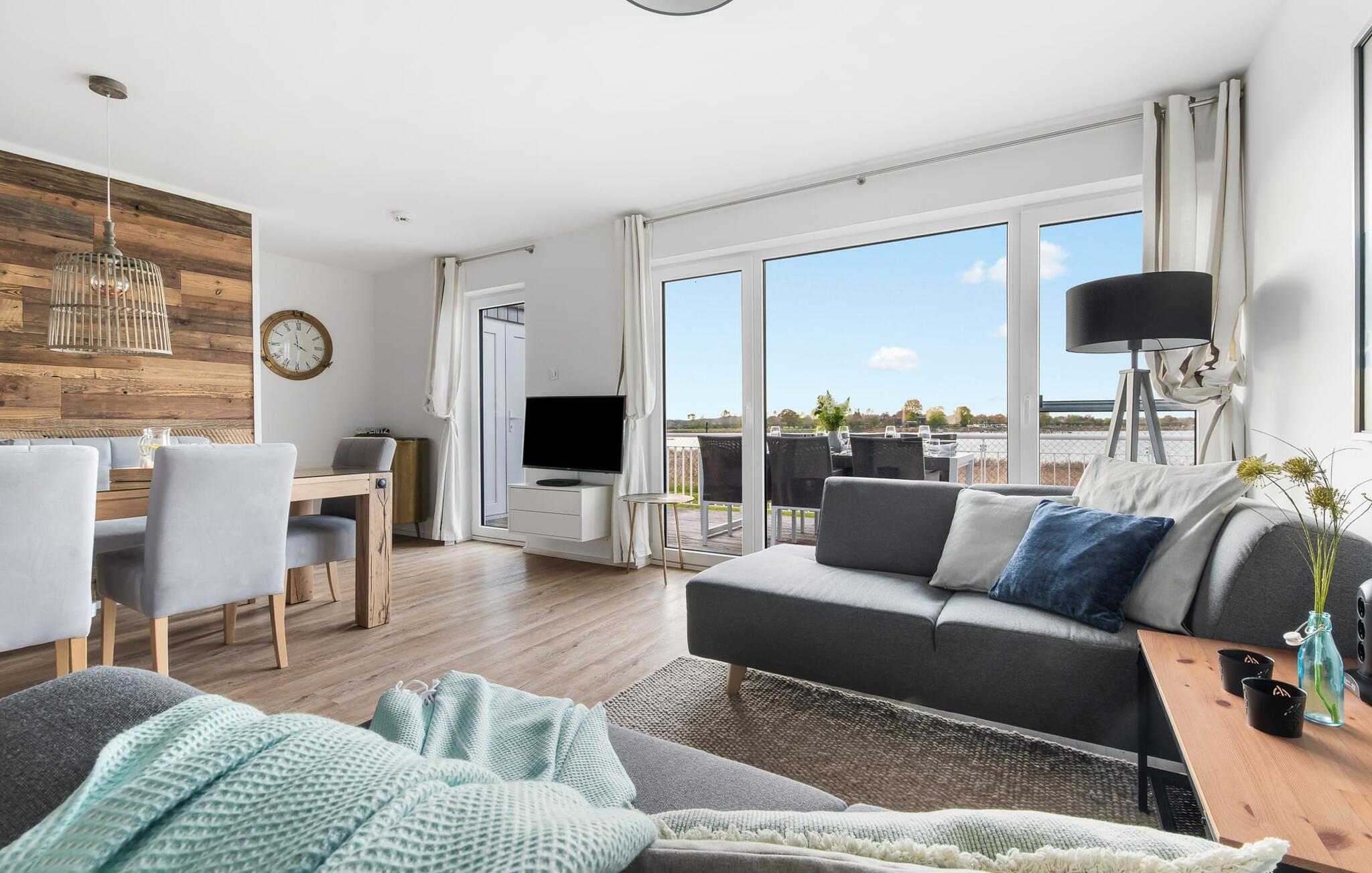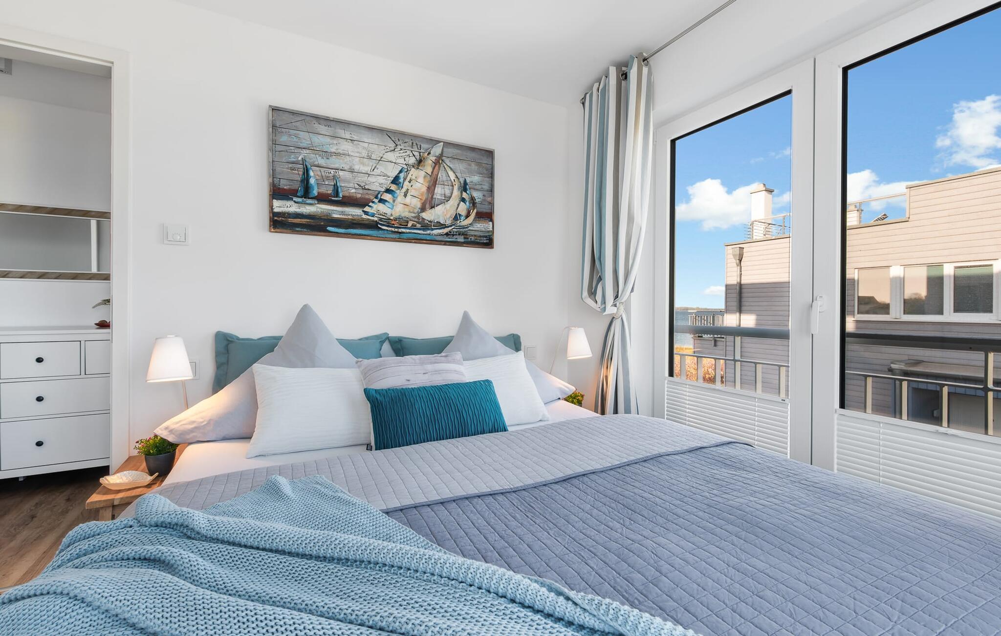 At ankomme og føle sig godt er garanteret i dette feriehus. Den udsatte beliggenhed med fri udsigt over Slien, et privat wellness-område og de rummelige terrasser kendetegner VILLA D'ORO. Omgivet af vand på et smalt næs mellem Slien og sejl- og sportsbådshavnen i feriestedet Olpenitz ved Østersøen ligger dette helt specielle feriehus VILLA D'ORO. Sandstranden kan nås på få minutter til fods, og eventyrlegepladsen ligger også i umiddelbar nærhed. Højdepunktet i det rummelige hus er studiet med tilstødende tagterrasse Uanset om det er en havnebiograf eller et flyveshow med vilde gæs, ænder og svaner, er der naturlig underholdning her. En pejs, gulvvarme og et privat wellnessområde sørger for hyggelig hygge i hver sæson. Den lyse opholds- og spisestue i ferieboligen er i stueetagen. Gulv-til-loft vinduer giver frit udsyn til sandet og sejlskibe, der passerer. En pejs og hjemmeunderholdningsprogrammet inklusive adgang til TV Now og Disney+ sikrer komfort i den mørke årstid. Det fuldt udstyrede køkken-alrum lader intet tilbage at ønske og byder på fuld feriekomfort. I kan slappe af på tre boligniveauer i VILLA D'ORO. Højdepunktet er et studie på anden sal med en tilstødende tagterrasse og udsigt over Sleien til Maasholm. På første sal er der to lyse soveværelser med direkte udsigt til vandet, når I falder i søvn og vågner. Det store soveværelse vender ud mod Slien og er indrettet med en dobbeltseng. Det andet soveværelse har udsigt over lystbådehavnen og har også en komfortabel dobbeltseng. Begge soveværelser kan mørklægges. En sovesofa i studiet tilbyder et behageligt sted at sove med en fantastisk udsigt. På første sal er der også det store badeværelse med udsigt over havnen og en stor bruseniche i gulvniveau. Den finske sauna med endnu en tilstødende bruser er placeret i studiet på 2. sal og får wellness-hjerter til at banke hurtigere. Et gæstetoilet i stueetagen giver ekstra komfort. Der er to parkeringspladser foran huset. Og kommer I med cykler, kan I nemt opbevare dem i jeres eget cykelskur. Vores favoritsted: Slap af i den finske sauna og se travlheden på havnen Bemærk venligst: OstseeResort Olpenitz er meget populært, og der bygges fortsat i parken. Ikke desto mindre kan I se frem til en 5-stjernet standard og et førsteklasses ophold. Byggeaktiviteterne kommer ikke til at forstyrre jer på ferien, og derfor gives der ikke yderligere afslag i prisen.