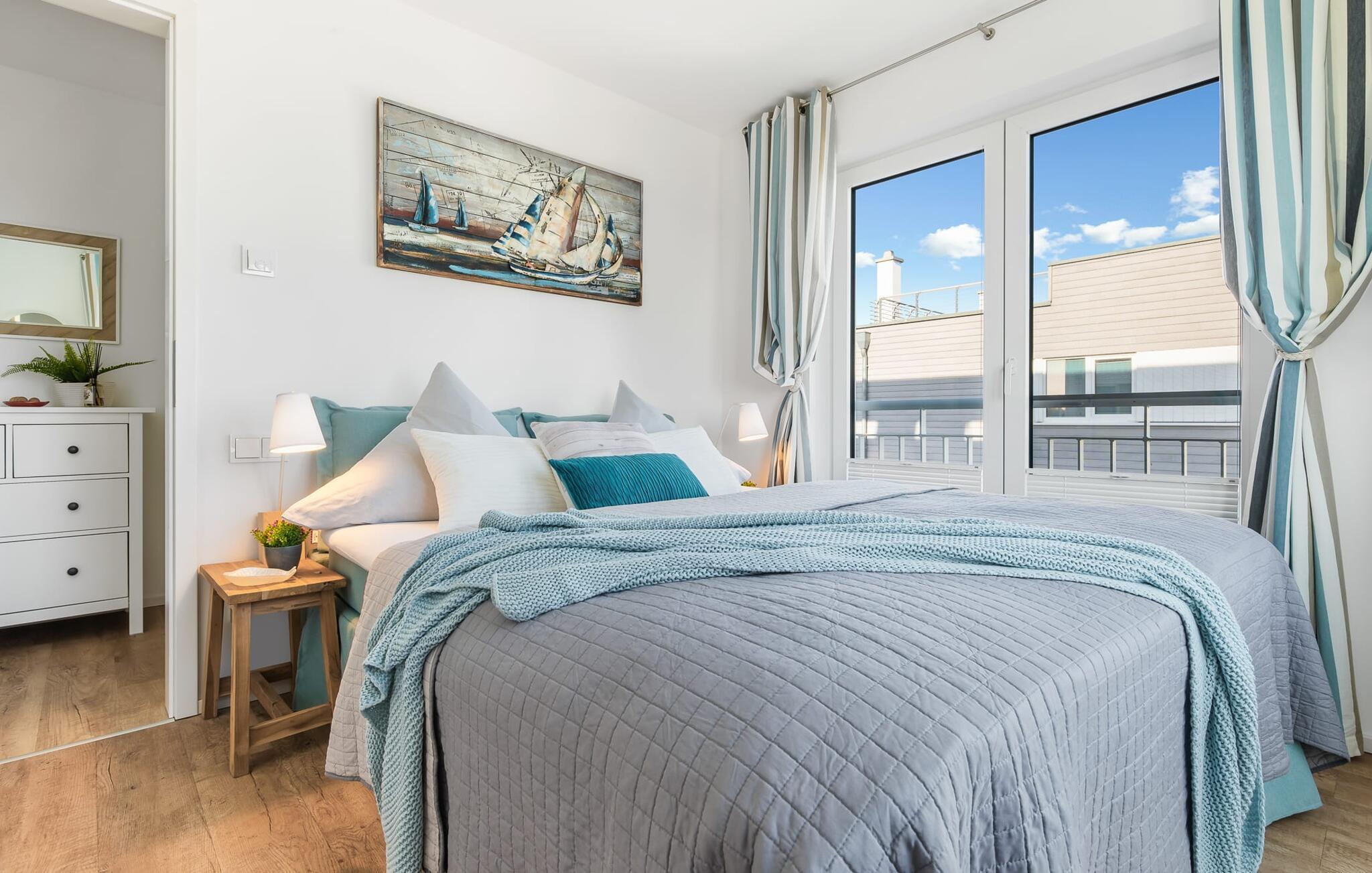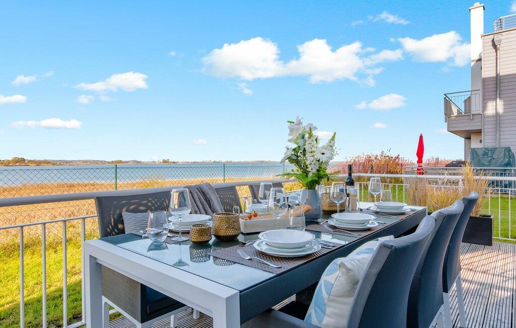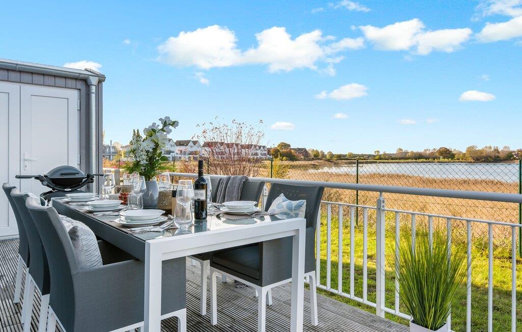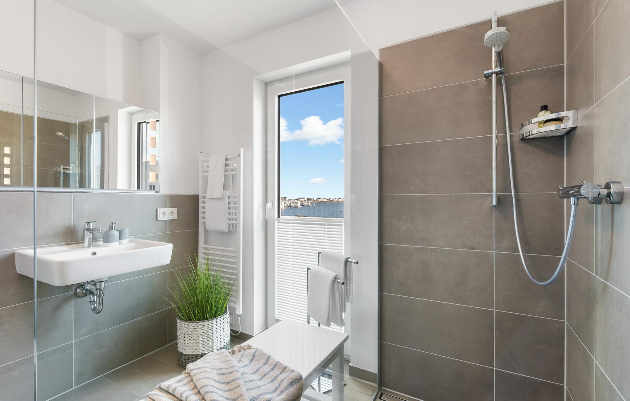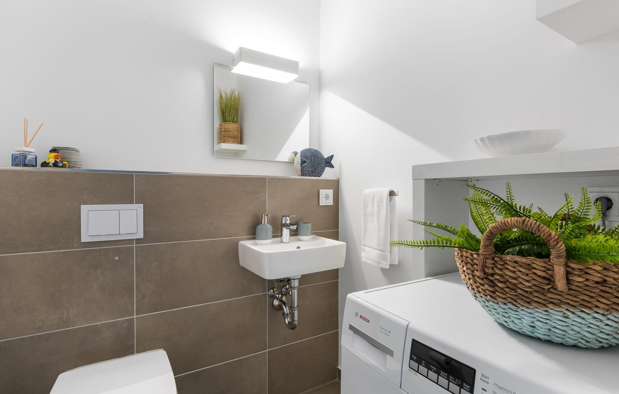 At ankomme og føle sig godt er garanteret i dette feriehus. Den udsatte beliggenhed med fri udsigt over Slien, et privat wellness-område og de rummelige terrasser kendetegner VILLA D'ORO. Omgivet af vand på et smalt næs mellem Slien og sejl- og sportsbådshavnen i feriestedet Olpenitz ved Østersøen ligger dette helt specielle feriehus VILLA D'ORO. Sandstranden kan nås på få minutter til fods, og eventyrlegepladsen ligger også i umiddelbar nærhed. Højdepunktet i det rummelige hus er studiet med tilstødende tagterrasse Uanset om det er en havnebiograf eller et flyveshow med vilde gæs, ænder og svaner, er der naturlig underholdning her. En pejs, gulvvarme og et privat wellnessområde sørger for hyggelig hygge i hver sæson. Den lyse opholds- og spisestue i ferieboligen er i stueetagen. Gulv-til-loft vinduer giver frit udsyn til sandet og sejlskibe, der passerer. En pejs og hjemmeunderholdningsprogrammet inklusive adgang til TV Now og Disney+ sikrer komfort i den mørke årstid. Det fuldt udstyrede køkken-alrum lader intet tilbage at ønske og byder på fuld feriekomfort. I kan slappe af på tre boligniveauer i VILLA D'ORO. Højdepunktet er et studie på anden sal med en tilstødende tagterrasse og udsigt over Sleien til Maasholm. På første sal er der to lyse soveværelser med direkte udsigt til vandet, når I falder i søvn og vågner. Det store soveværelse vender ud mod Slien og er indrettet med en dobbeltseng. Det andet soveværelse har udsigt over lystbådehavnen og har også en komfortabel dobbeltseng. Begge soveværelser kan mørklægges. En sovesofa i studiet tilbyder et behageligt sted at sove med en fantastisk udsigt. På første sal er der også det store badeværelse med udsigt over havnen og en stor bruseniche i gulvniveau. Den finske sauna med endnu en tilstødende bruser er placeret i studiet på 2. sal og får wellness-hjerter til at banke hurtigere. Et gæstetoilet i stueetagen giver ekstra komfort. Der er to parkeringspladser foran huset. Og kommer I med cykler, kan I nemt opbevare dem i jeres eget cykelskur. Vores favoritsted: Slap af i den finske sauna og se travlheden på havnen Bemærk venligst: OstseeResort Olpenitz er meget populært, og der bygges fortsat i parken. Ikke desto mindre kan I se frem til en 5-stjernet standard og et førsteklasses ophold. Byggeaktiviteterne kommer ikke til at forstyrre jer på ferien, og derfor gives der ikke yderligere afslag i prisen.