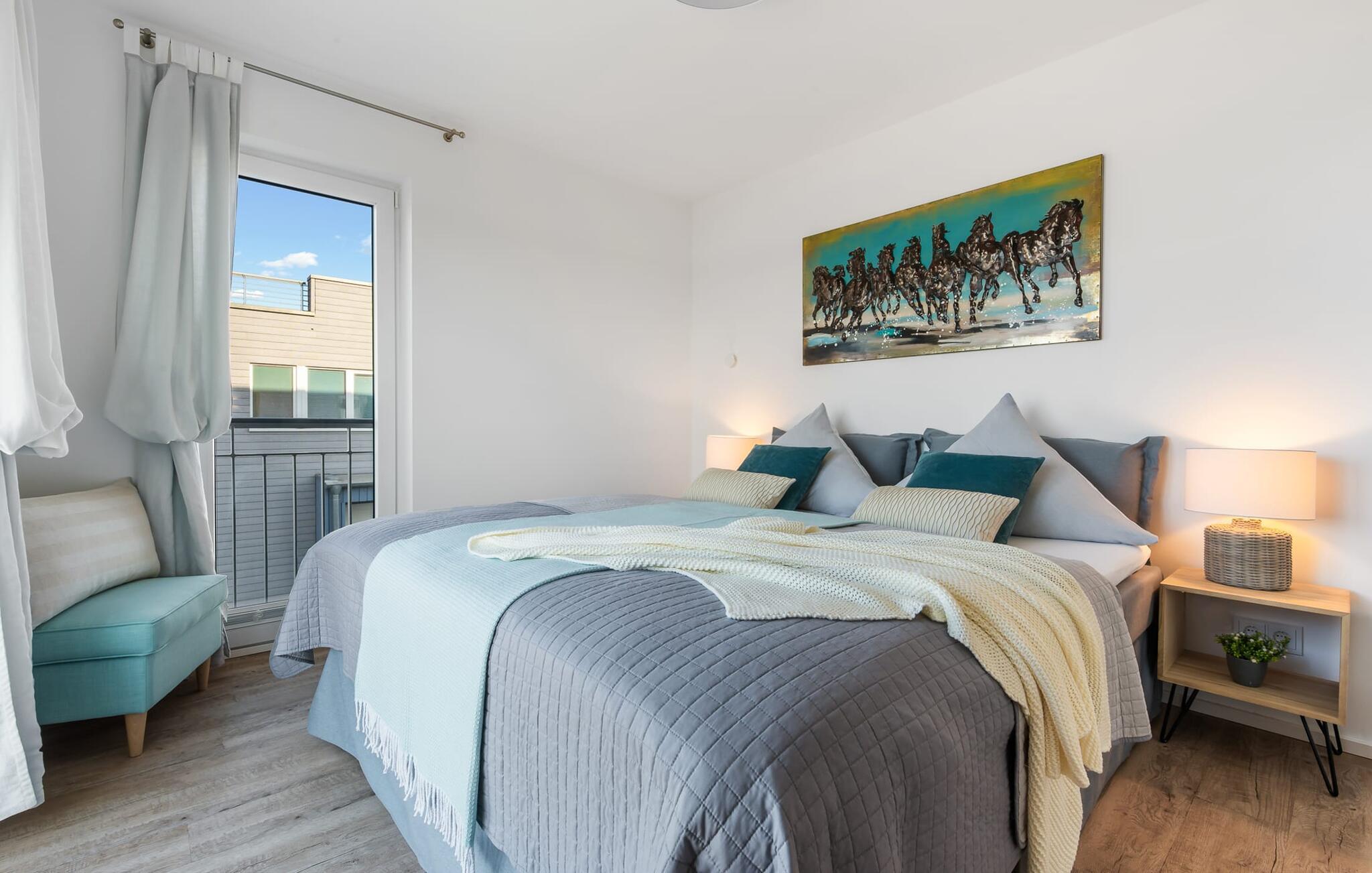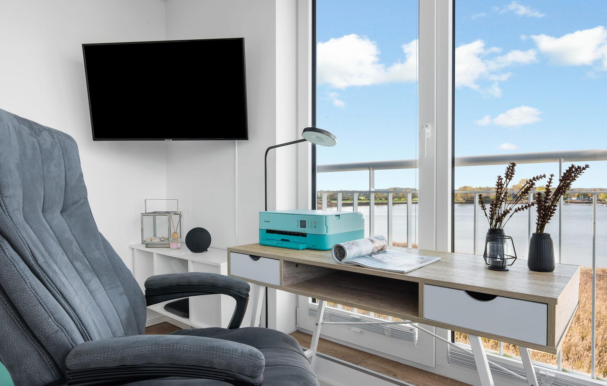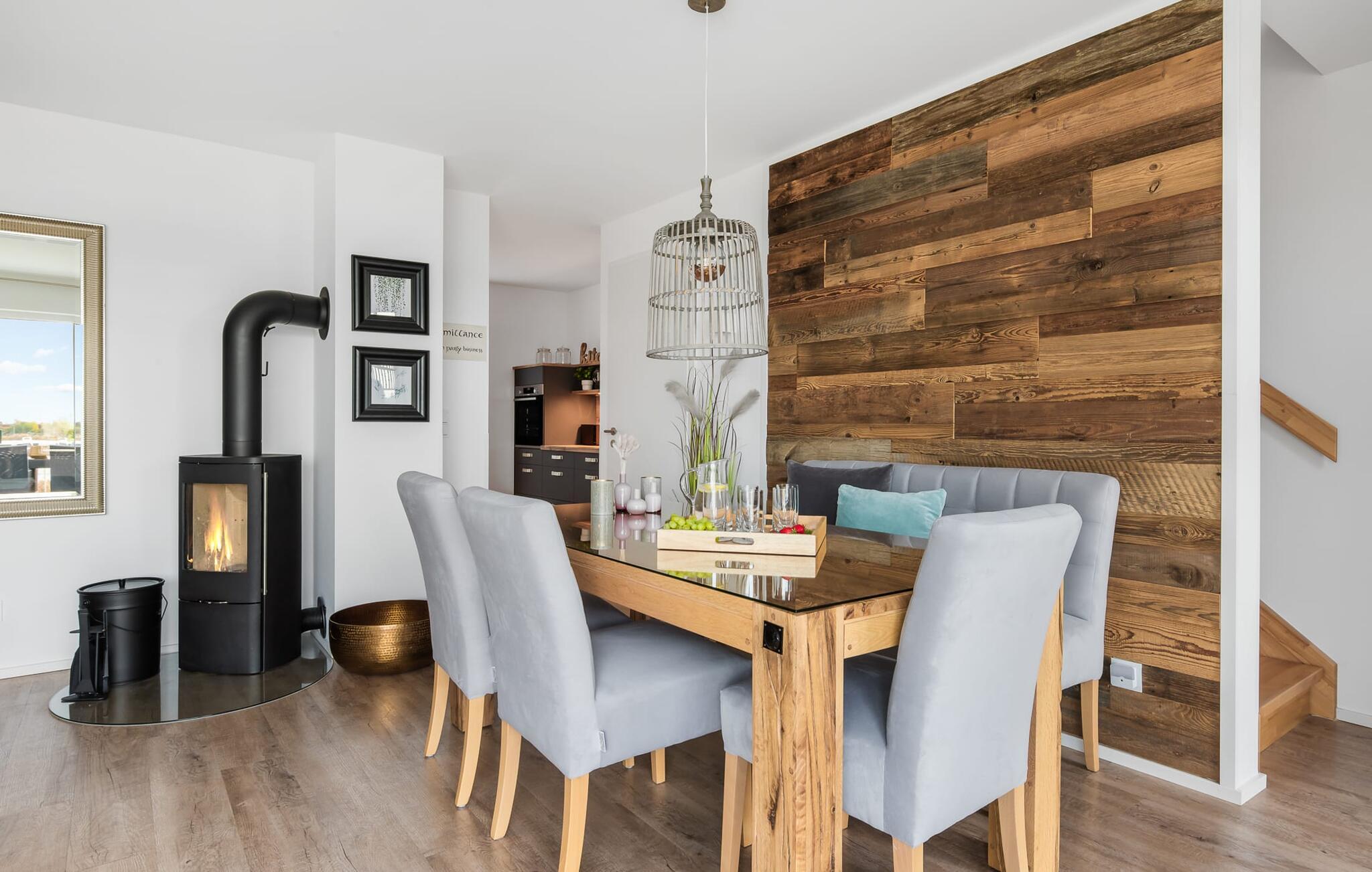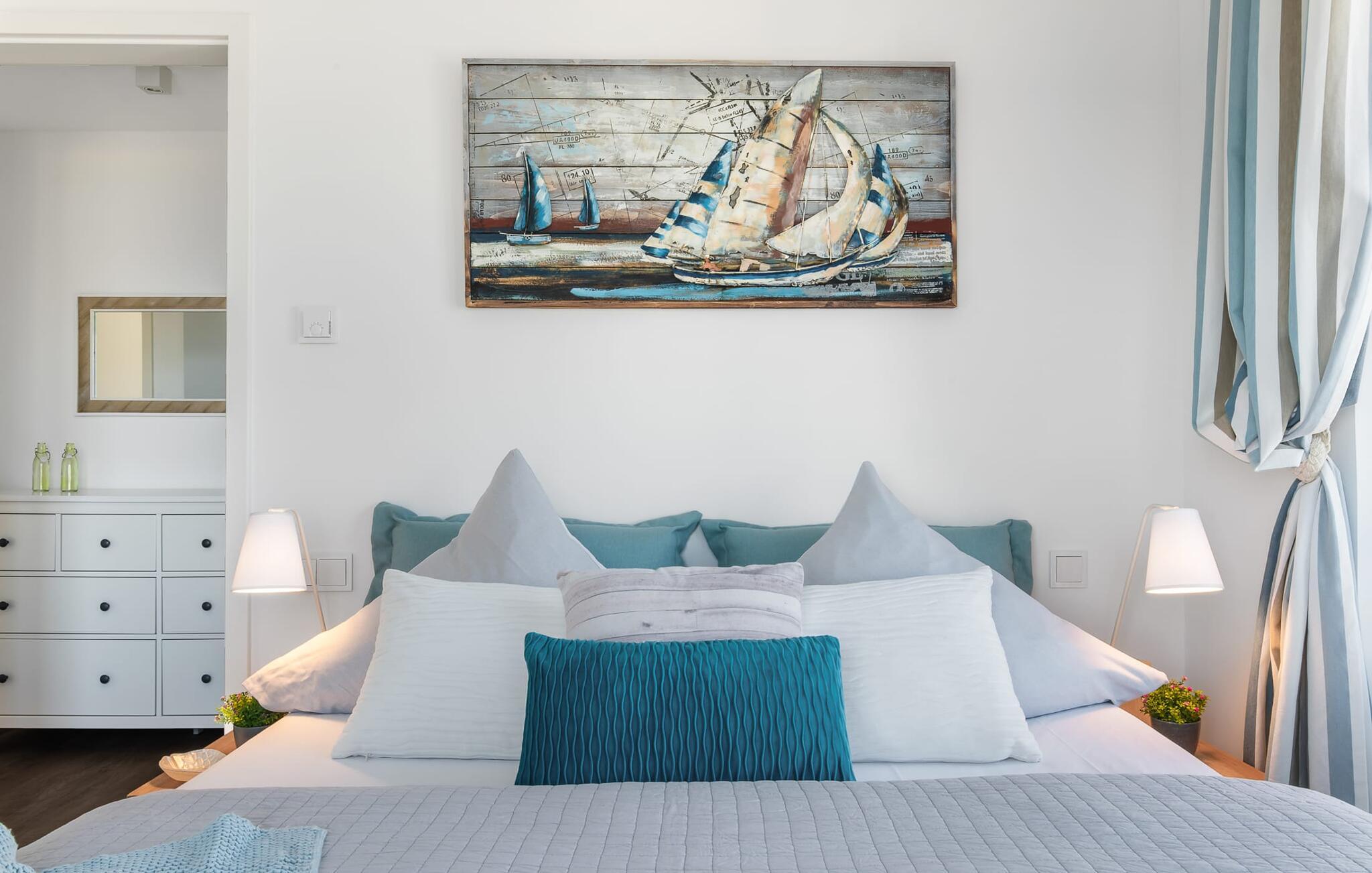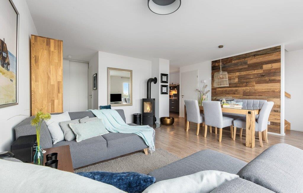 At ankomme og føle sig godt er garanteret i dette feriehus. Den udsatte beliggenhed med fri udsigt over Slien, et privat wellness-område og de rummelige terrasser kendetegner VILLA D'ORO. Omgivet af vand på et smalt næs mellem Slien og sejl- og sportsbådshavnen i feriestedet Olpenitz ved Østersøen ligger dette helt specielle feriehus VILLA D'ORO. Sandstranden kan nås på få minutter til fods, og eventyrlegepladsen ligger også i umiddelbar nærhed. Højdepunktet i det rummelige hus er studiet med tilstødende tagterrasse Uanset om det er en havnebiograf eller et flyveshow med vilde gæs, ænder og svaner, er der naturlig underholdning her. En pejs, gulvvarme og et privat wellnessområde sørger for hyggelig hygge i hver sæson. Den lyse opholds- og spisestue i ferieboligen er i stueetagen. Gulv-til-loft vinduer giver frit udsyn til sandet og sejlskibe, der passerer. En pejs og hjemmeunderholdningsprogrammet inklusive adgang til TV Now og Disney+ sikrer komfort i den mørke årstid. Det fuldt udstyrede køkken-alrum lader intet tilbage at ønske og byder på fuld feriekomfort. I kan slappe af på tre boligniveauer i VILLA D'ORO. Højdepunktet er et studie på anden sal med en tilstødende tagterrasse og udsigt over Sleien til Maasholm. På første sal er der to lyse soveværelser med direkte udsigt til vandet, når I falder i søvn og vågner. Det store soveværelse vender ud mod Slien og er indrettet med en dobbeltseng. Det andet soveværelse har udsigt over lystbådehavnen og har også en komfortabel dobbeltseng. Begge soveværelser kan mørklægges. En sovesofa i studiet tilbyder et behageligt sted at sove med en fantastisk udsigt. På første sal er der også det store badeværelse med udsigt over havnen og en stor bruseniche i gulvniveau. Den finske sauna med endnu en tilstødende bruser er placeret i studiet på 2. sal og får wellness-hjerter til at banke hurtigere. Et gæstetoilet i stueetagen giver ekstra komfort. Der er to parkeringspladser foran huset. Og kommer I med cykler, kan I nemt opbevare dem i jeres eget cykelskur. Vores favoritsted: Slap af i den finske sauna og se travlheden på havnen Bemærk venligst: OstseeResort Olpenitz er meget populært, og der bygges fortsat i parken. Ikke desto mindre kan I se frem til en 5-stjernet standard og et førsteklasses ophold. Byggeaktiviteterne kommer ikke til at forstyrre jer på ferien, og derfor gives der ikke yderligere afslag i prisen.