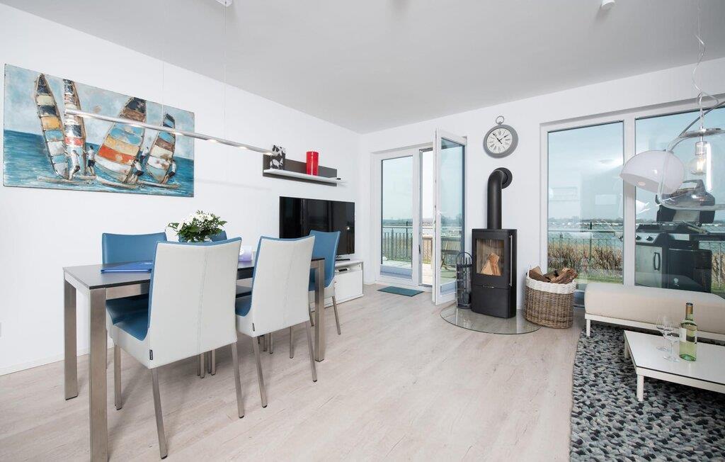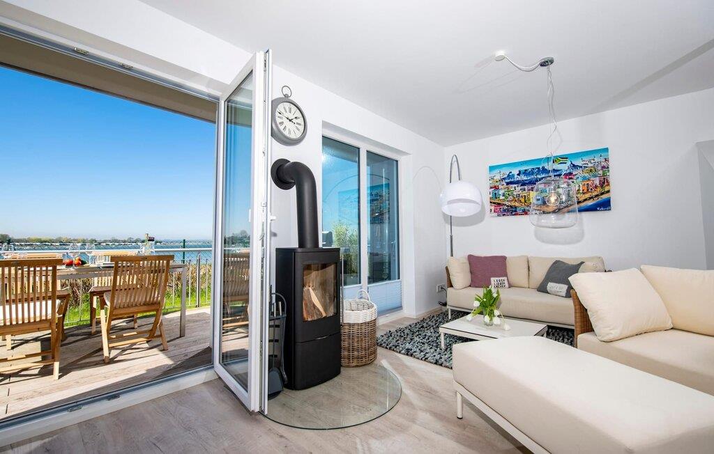 Højdepunktet ved feriehuset Villa Kunterbunt er den store tagterrasse, der giver jer panoramaudsigt over Slien og havnen i OstseeResort.