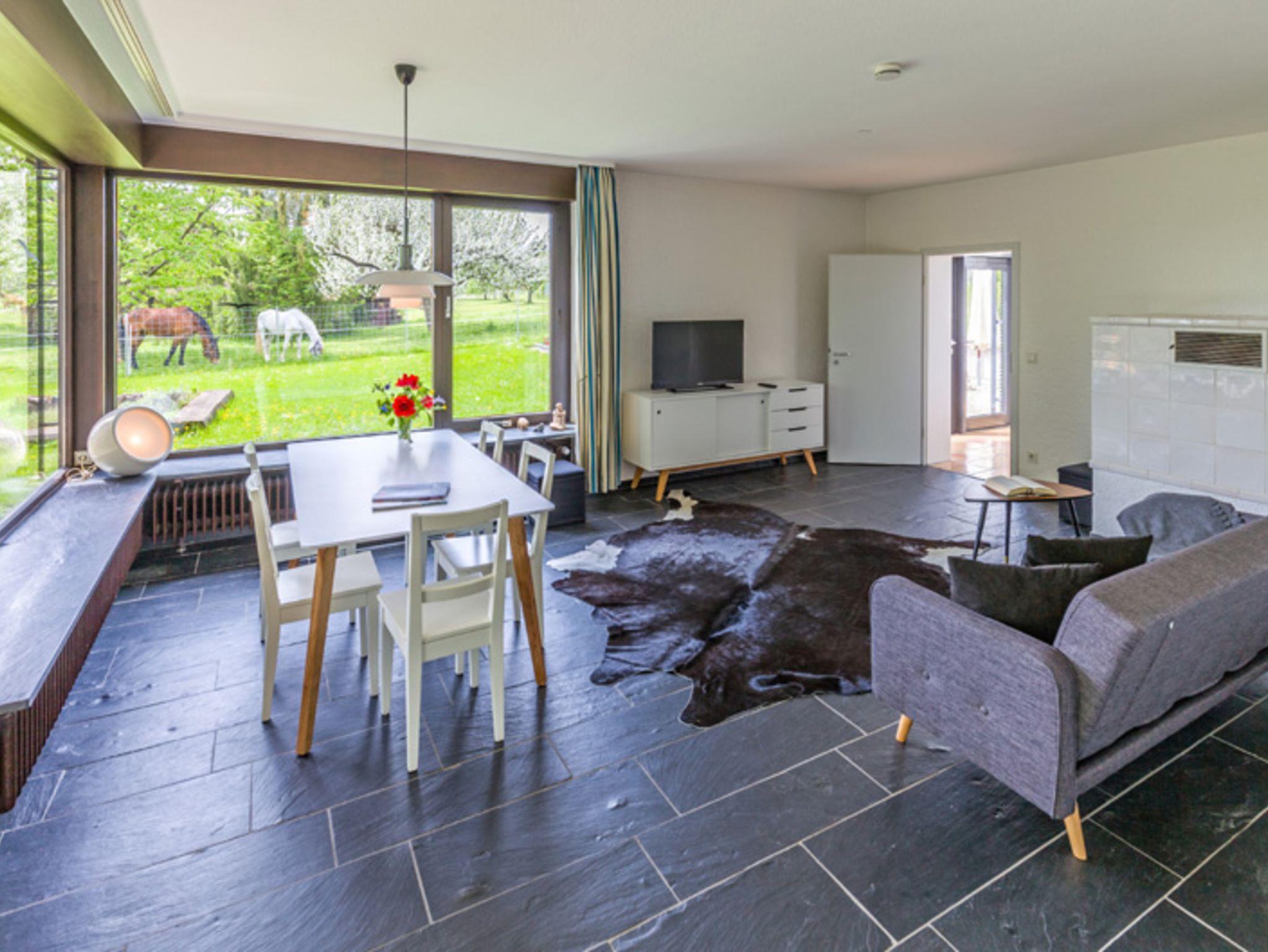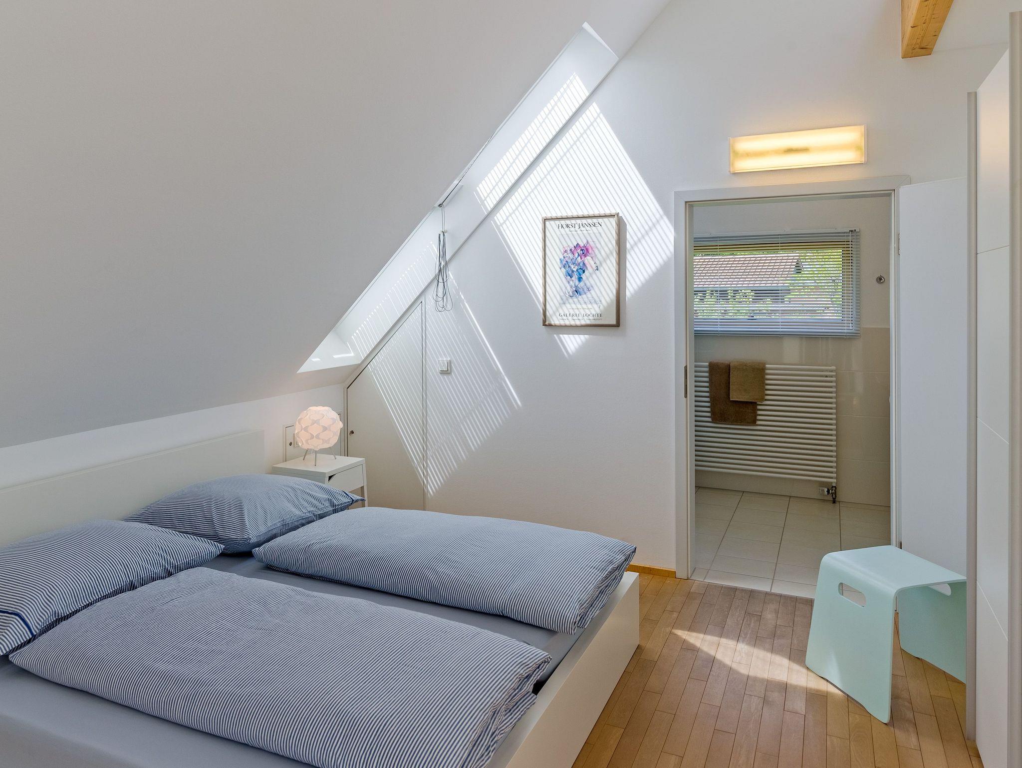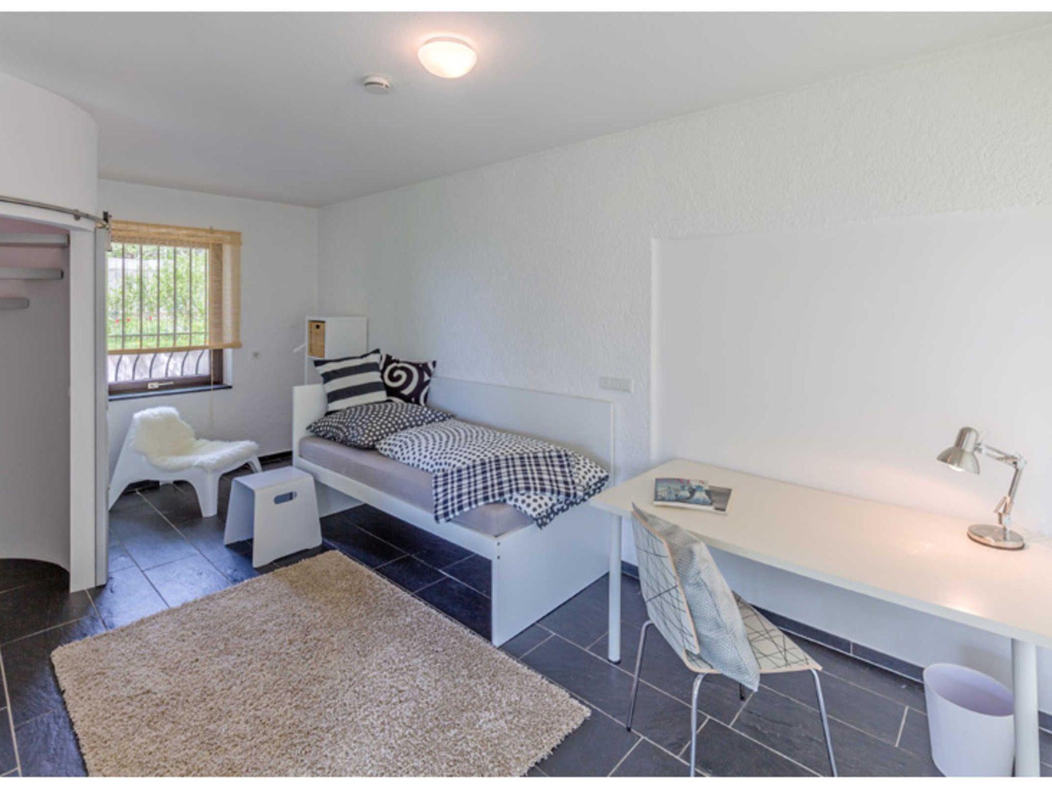 Das Feriendomizil liegt am Stadtrand von Schwenningen am Neckar in ruhiger Lage inmitten eines großen Garten, das Stadtzentrum ist ca. 1,5 km entfernt. Das Mietobjekt besitzt einen separaten Eingang, Carport für 1 Fahrzeug ist vorhanden, sowie ein nicht überdachter Stellplatz. Die Räumlichkeiten sind individuell, schlicht und hochwertig ausgestattet. Verarbeitet wurden für die Bodenbeläge Schiefer, Parkett sowie terra cotta- Fliesen, die meisten Räume sind mit Fußbodenheizung ausgestattet. Zur Verfügung stehen auf 2 Etagen mit 140 qm für 2 bis 5 Personen ein großzügiger Wohnbereich mit Aussicht in die Natur, Balkon und Terrasse, sowie ein Gartenbereich, insgesamt 3 Schlafräume (2 Doppelzimmer und1 Einzelzimmer), eine vollausgestattete Küche, 2 Bäder, separates Gäste- WC, Garderobe, Wasch- Stauraum. Eingangsbereich EG: Eingangsbereich EG mit Garderobe und Regalfächer sowie ein Ganzkörperspiegel, direkter Durchgang zur Außenterrasse. Badezimmer EG mit separatem WC: begehbare Dusche mit Glasduschwand, großer Waschtisch mit Spiegel und Ablagemöglichkeiten. Das separate Gäste-WC liegt nebenan, beide Räume verfügen über Außenfenster. Hauswirtschaftsraum/ Stauraum EG: Waschmaschine, Wäscheständer, Staubsauger, Reinigungsutensilien, kleiner Arbeitsbereich mit Telefonanschluss und Blick in die Natur, der Raum ist durch eine Schiebetür vom Küchenbereich getrennt. Küche: Bulthaup Einbauküche, ausgestattet mit Spülmaschine, Backofen, 4-Feld Cerankochbereichmit Abzugshaube, Kaffee-Maschine, Nespresso – Maschine, Toaster, Wasserkocher, Kühlschrank (biofresh) ohne Tiefkühlfach und LG- Multimediaanlage. Elektrische Jalousien können vor zu viel Sonneneinstrahlung schützen. Wohnbereich EG: Heller Wohnbereich mit Esstisch und 5 Stühlen, Blick in den Garten, Kachelofen (Erstausstattung Holz ist vorhanden), Sofa und 1 Ohrensessel, TV (mit Satelliten TV/ Radio). Zugang zur großen, teils überdachten Terrasse, elektrische Jalousien an den großen Fenstern. Gast 1/ Schlafzimmer EG (1Person): Durch eine Schiebetür vom Wohnbereich getrennt, Einzelbett (90X200cm), Ablage-möglichkeiten (Sideboard und Kleiderbügelstange) vorhanden, Business –Schreibtisch mit Internetzugang, Blick in den Außenbereich. Durchgangszimmer mit einer weiteren Schiebetür zum Turm mit Wendeltreppe ins OG. Gast 2/ Atelier OG (2Personen): Großzügiger Schlaf- Rückzugsraum mit Doppelbett (franz. Bett 180X200cm) und Balkon (ca.8qm überdacht), 2 Ohrensesseln mit Beistelltisch und Soundanlage, Ablagemöglichkeiten (Sideboard und Kleiderbügelstange) vorhanden. Wintergartenbereich OG: Ruhebereich mit Glasdach, elektrische Beschattungsanlage vorhanden, chilligem Sitzmöbel (1Person) und Beistelltisch, toller Blick in den Garten, durch Metallgitterboden vom EG getrennt. Gast 3/ Schlafzimmer OG (2Personen): Lichtdurchflutetes Schlafzimmer (durch Dachfenster und Oberlichter, elektrische Abdunkelung möglich) mit Doppelbett (separate Matratzen, je 90X200cm), großem Kleiderschrank und direktemZugang zu einem weiteren Bad. Bad OG: Das Bad verfügt über 1 großen Waschtisch mit Spiegel und Ablagefläche, Föhn, Wellnessdusche und WC, Außenfenster und Oberlichter. Weitere Informationen: Der Bereich OG ist durch eine Außentreppe mit separater Eingangstür erreichbar und durch die Wendeltreppe im Turm mit dem EG verbunden. Es steht Ihnen ein Safe zur Verfügung. Außenbereich/ Garten und Terrasse: Zum Ferienhaus gehört ein schön gestalteter Außenbereich im Garten, welcher teilweiseüberdacht ist, mit Gartenbank, großem Sonnenschirm, 2 Tischen mit insgesamt 5 Stühlen und 2 Sonnenliegen (in den Sommermonaten), schöner Blick in die Natur. Vom DTV wurde das Haus mit 5 Sternen ausgezeichnet.