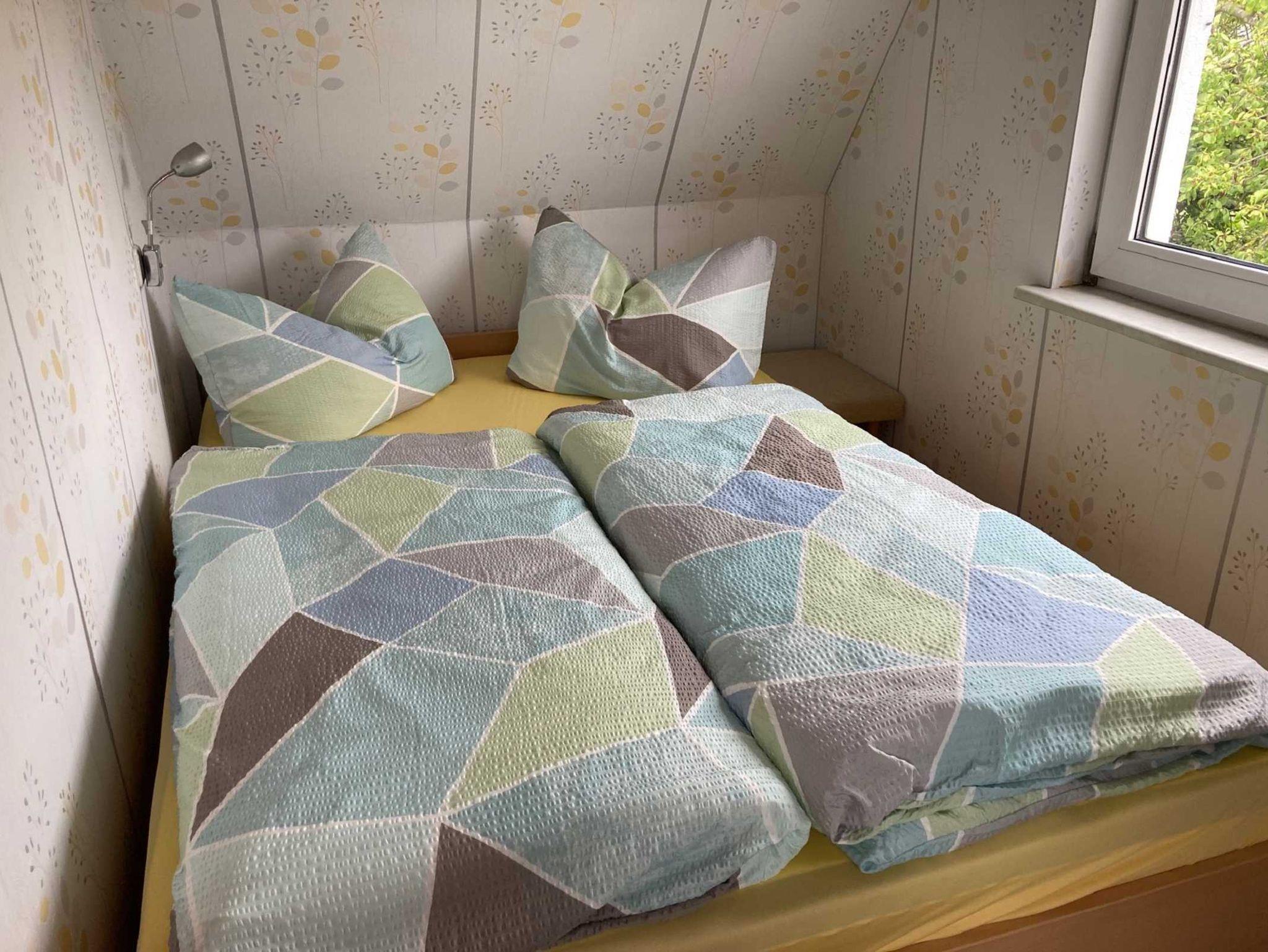 Im Wohnhaus der Vermieterin befindet sich das Doppelzimmer im Obergeschoß.