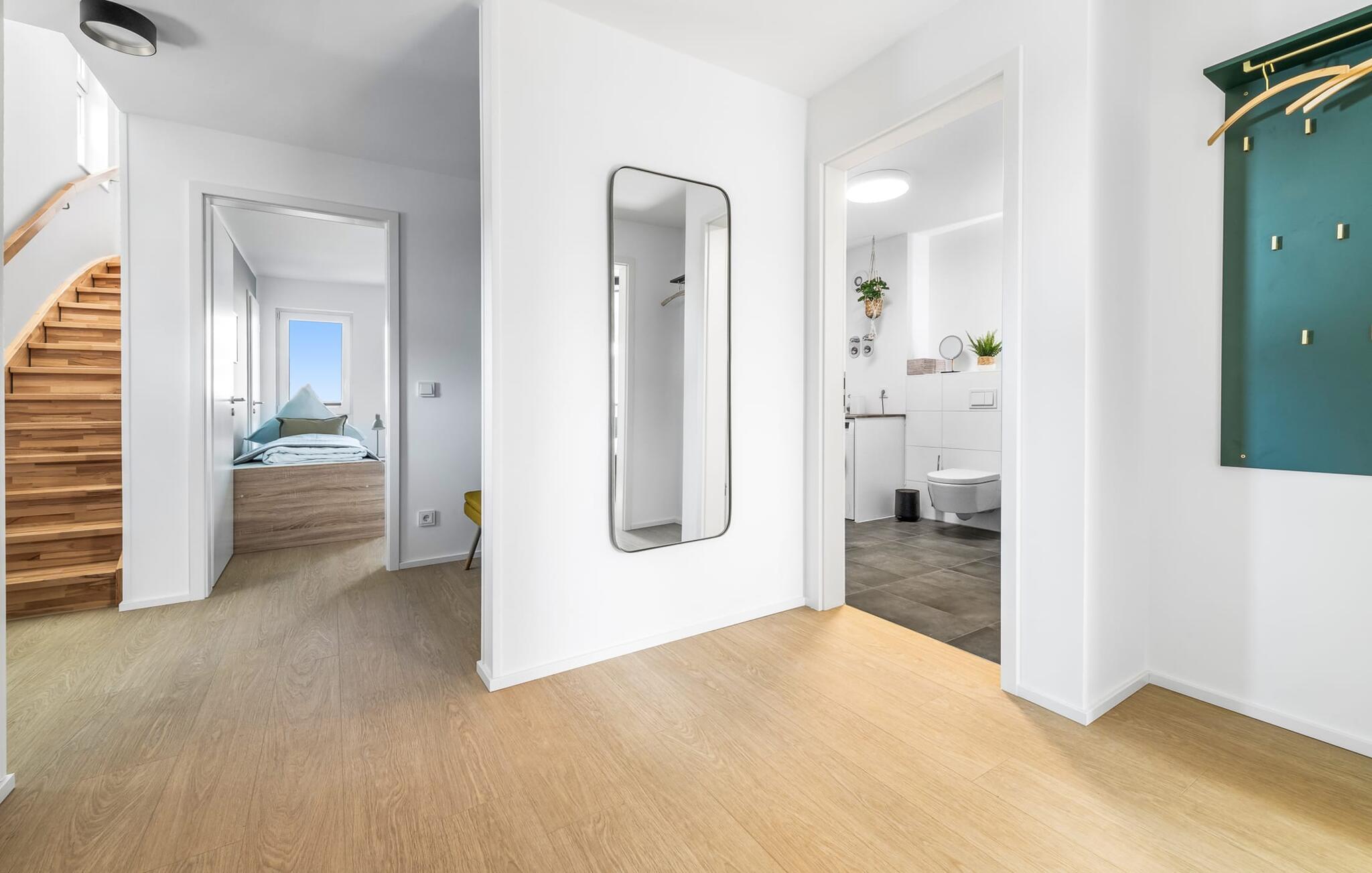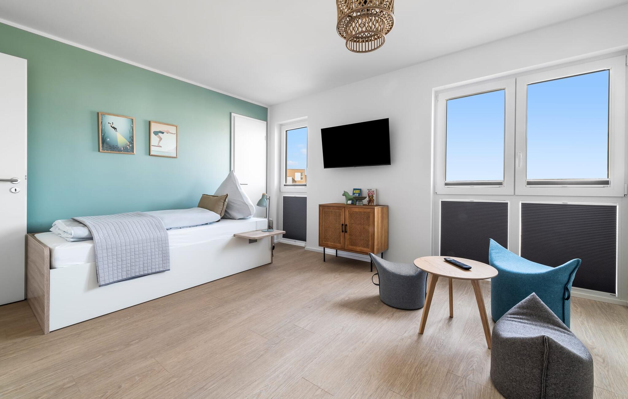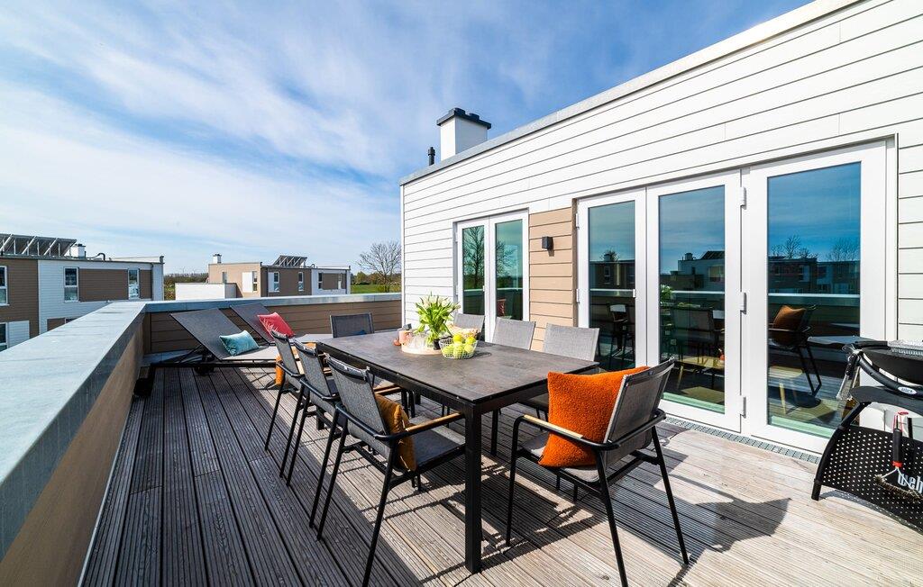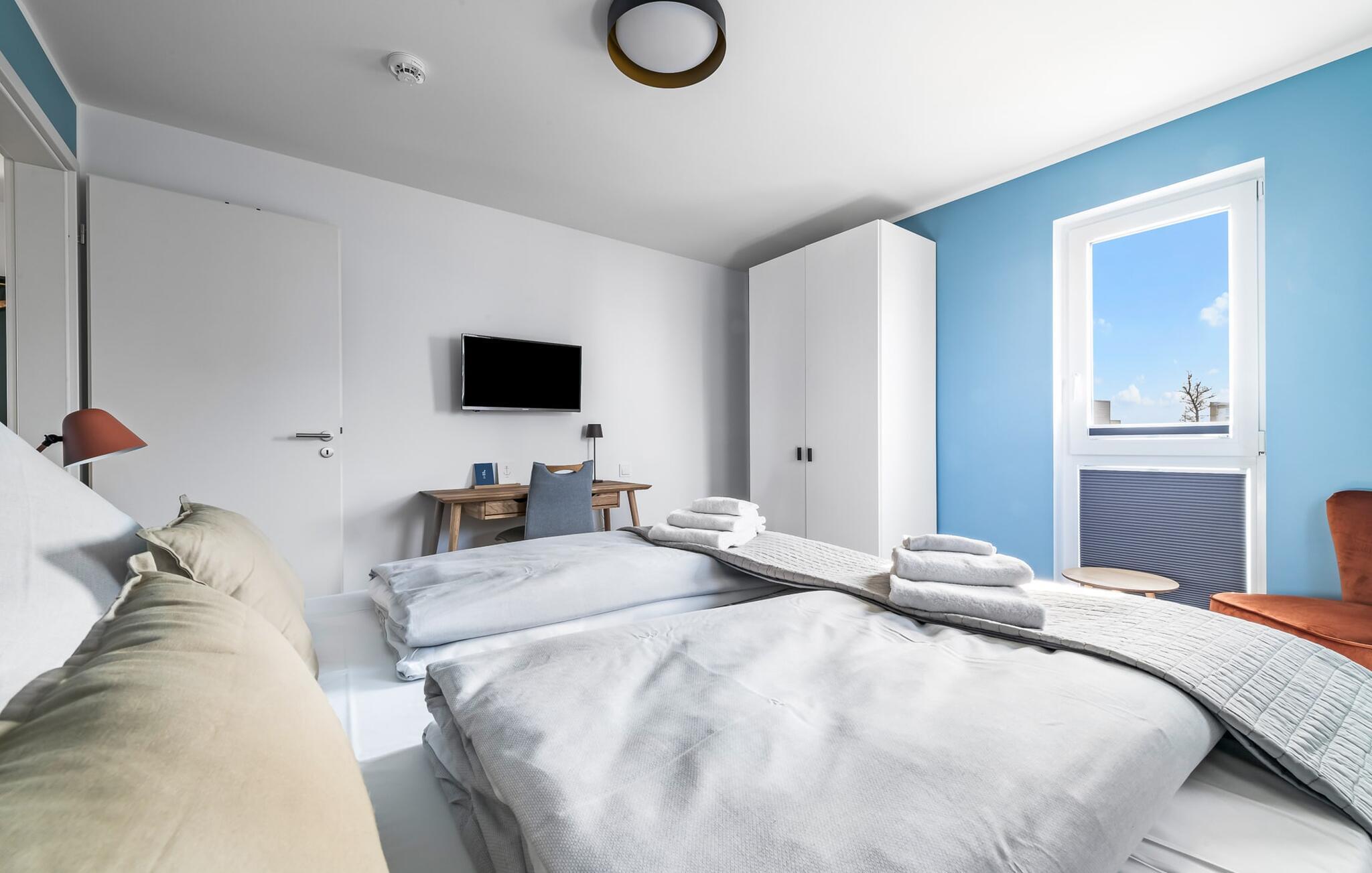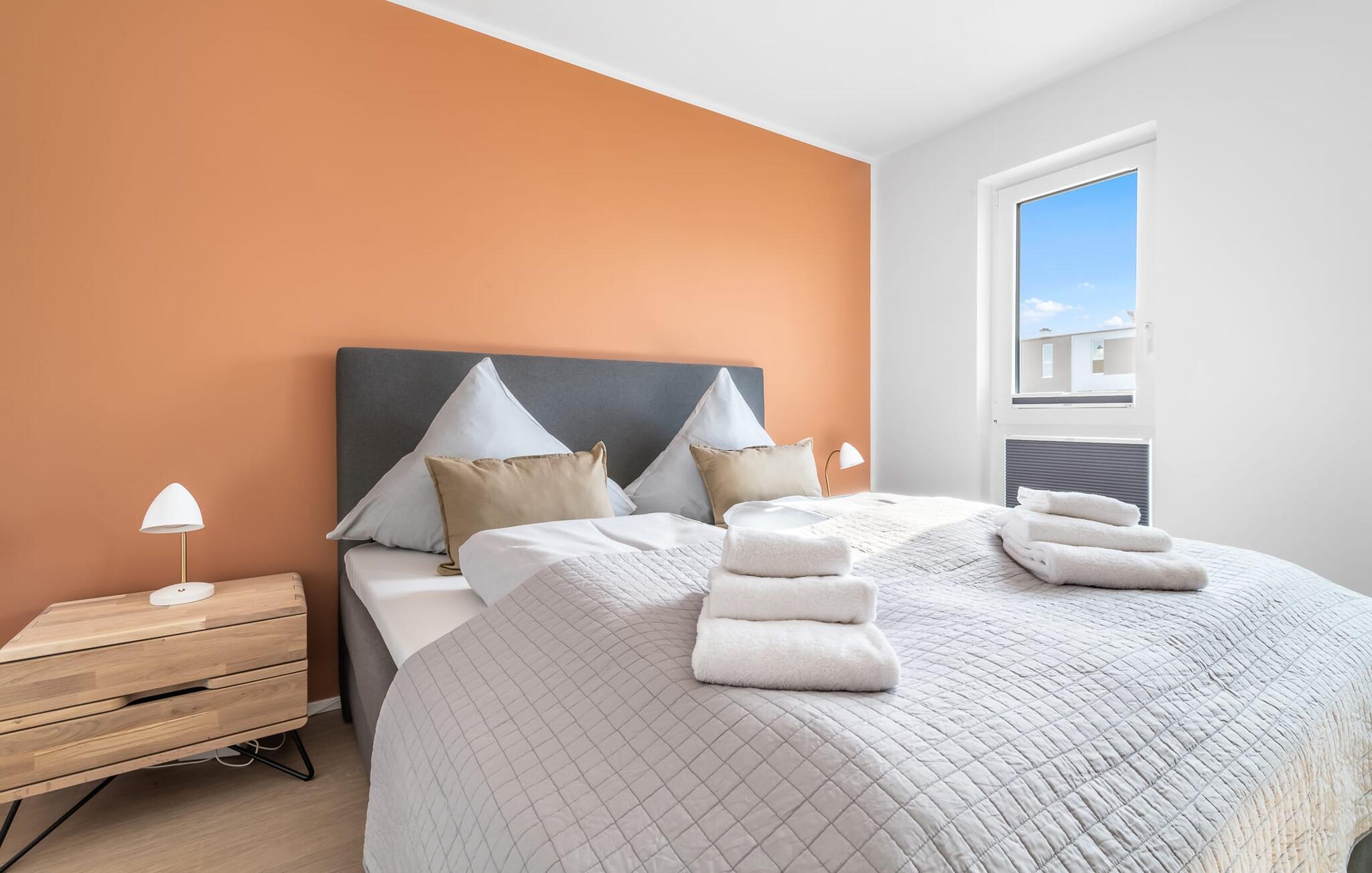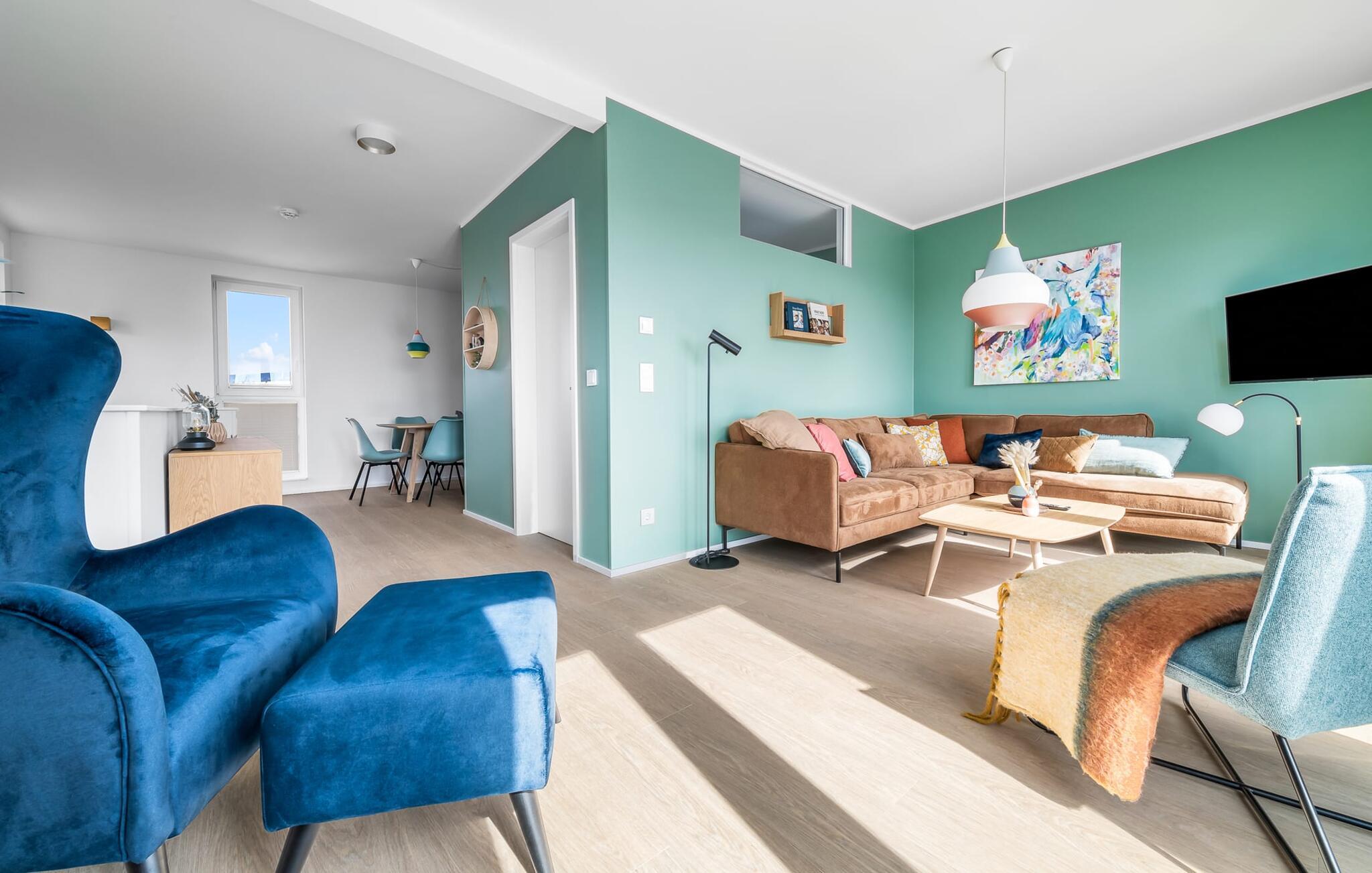 Ferielejligheden Vogelfrei byder jer velkommen med et trendy skandinavisk design og en åben følelse af rum. Her føler man sig faktisk fri som en fugl. Den moderne etagelejlighed tilbyder plads til op til 8 personer med tre soveværelser og to badeværelser fordelt på to etager. Sandstranden Weidefelder med kiosk, restaurant og strandstole er inden for gåafstand, og den travle havnepromenade i feriestedet Østersøen er et fantastisk sted at slentre og beundre havnebiografen. Når I træder ind i ferielejligheden på første sal, begynder jeres ferie fra første øjeblik. I befinder jer i lejlighedens afslapningsområde. Der er tre soveværelser til rådighed på denne etage. Uanset hvilken I vælger, er I garanteret en afslappende nat. To soveværelser er udstyret med rummelige dobbeltsenge, mens det tredje soveværelse har to enkeltsenge, som hver kan laves om til en hel dobbeltseng. I vil finde et fladskærms-tv i alle soveværelser. Også på denne etage er jeres helt egen lille wellness-oase. Badeværelset med bruser i gulvniveau og infrarød sauna til den perfekte afslutning på en feriedag. Et andet badeværelse med badekar er på anden sal i lejligheden. Her er også opholds- og spiseafdelingen placeret og emmer af komfort med sin lyse og moderne indretning. Uanset om det er en hyggelig aften med at se tv for to i sofaen eller en spilleaften sammen, her kan I bruge jeres tid, som I vil. Denne ferielejlighed har naturligvis også et rummeligt udeareal. Havemøbler af høj kvalitet er indrettet som opholdsområde og danner det perfekte udgangspunkt for en dejlig morgenmad om morgenen med solskin og masser af udsigt. Foran ferielejligheden finder I to parkeringspladser og et aflåseligt cykelskur. Vores favoritsted: Byd dagens første solskin velkommen med en duftende kaffe på tagterrassen med udsigt over Østersøen... Bemærk venligst: OstseeResort Olpenitz er meget populært, og der bygges fortsat i parken. Ikke desto mindre kan I se frem til en 5-stjernet standard og et førsteklasses ophold. Byggeaktiviteterne kommer ikke til at forstyrre jer på ferien, og derfor gives der ikke yderligere afslag i prisen.