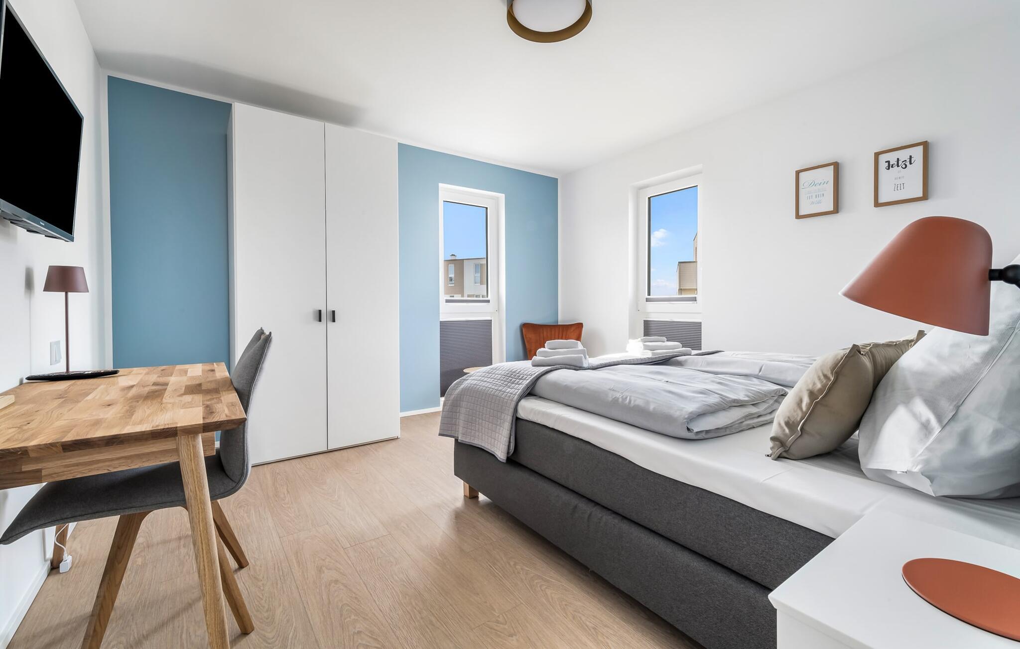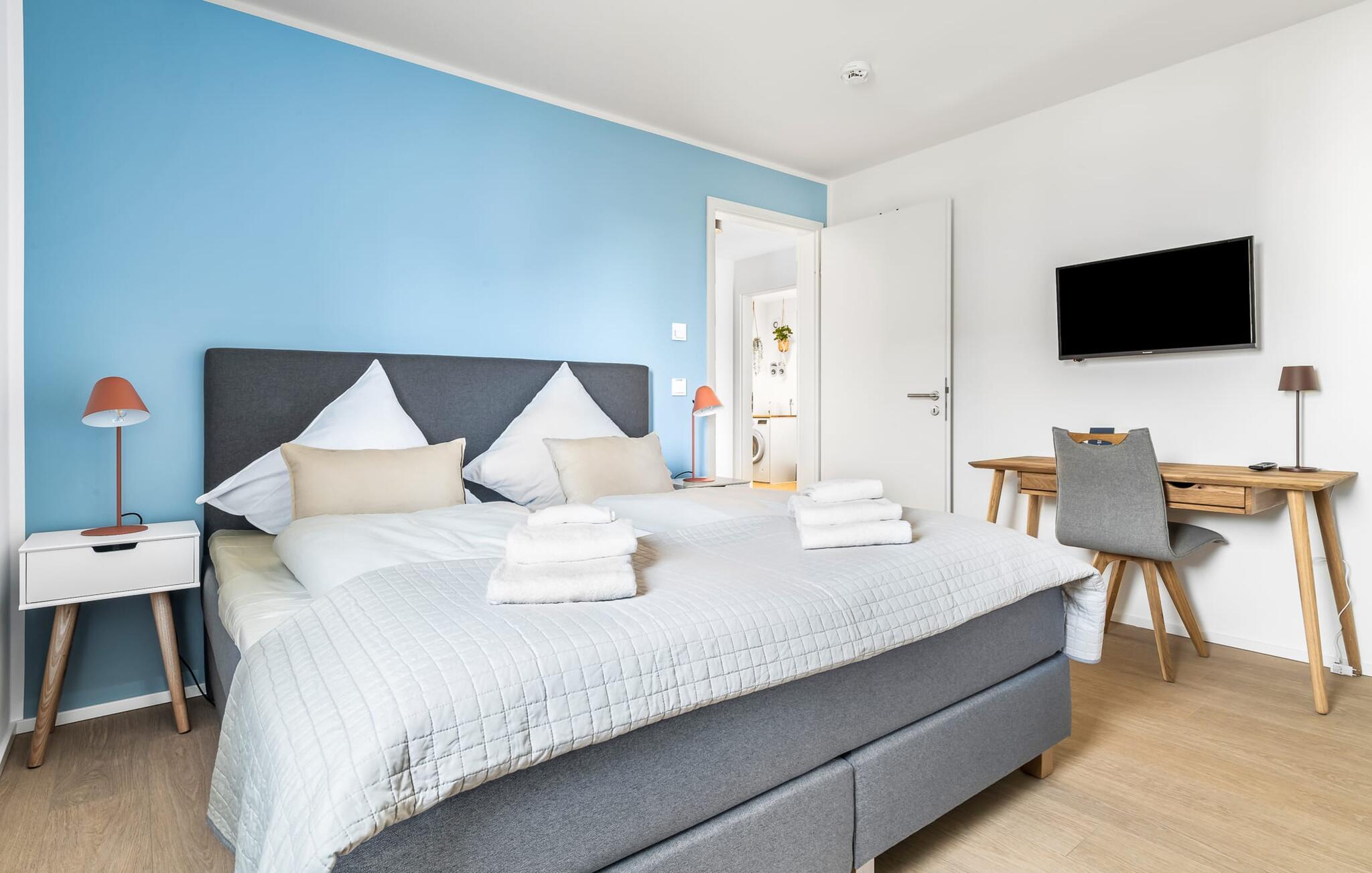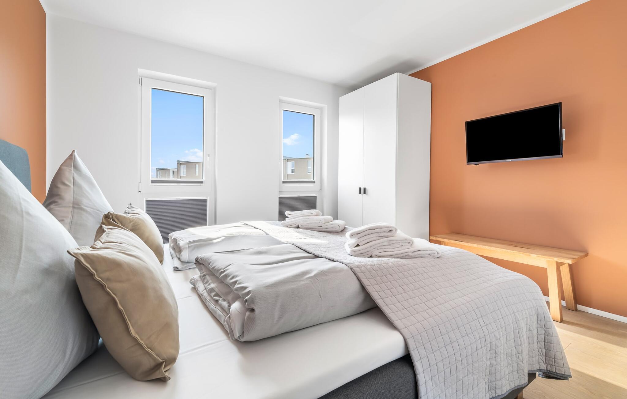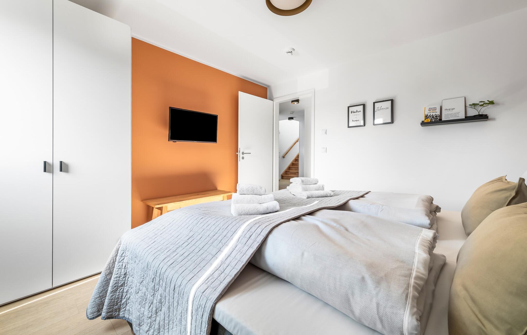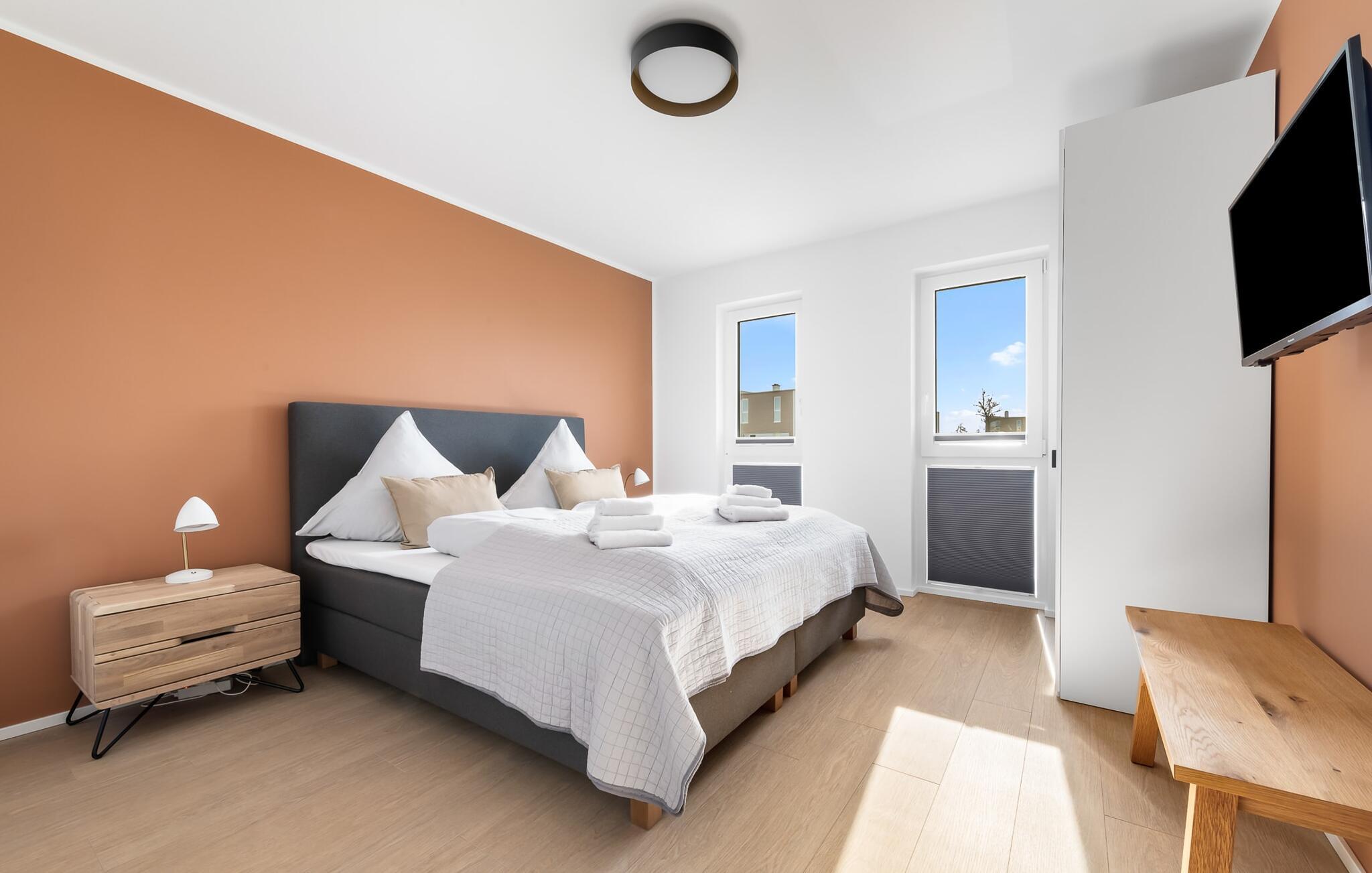 Ferielejligheden Vogelfrei byder jer velkommen med et trendy skandinavisk design og en åben følelse af rum. Her føler man sig faktisk fri som en fugl. Den moderne etagelejlighed tilbyder plads til op til 8 personer med tre soveværelser og to badeværelser fordelt på to etager. Sandstranden Weidefelder med kiosk, restaurant og strandstole er inden for gåafstand, og den travle havnepromenade i feriestedet Østersøen er et fantastisk sted at slentre og beundre havnebiografen. Når I træder ind i ferielejligheden på første sal, begynder jeres ferie fra første øjeblik. I befinder jer i lejlighedens afslapningsområde. Der er tre soveværelser til rådighed på denne etage. Uanset hvilken I vælger, er I garanteret en afslappende nat. To soveværelser er udstyret med rummelige dobbeltsenge, mens det tredje soveværelse har to enkeltsenge, som hver kan laves om til en hel dobbeltseng. I vil finde et fladskærms-tv i alle soveværelser. Også på denne etage er jeres helt egen lille wellness-oase. Badeværelset med bruser i gulvniveau og infrarød sauna til den perfekte afslutning på en feriedag. Et andet badeværelse med badekar er på anden sal i lejligheden. Her er også opholds- og spiseafdelingen placeret og emmer af komfort med sin lyse og moderne indretning. Uanset om det er en hyggelig aften med at se tv for to i sofaen eller en spilleaften sammen, her kan I bruge jeres tid, som I vil. Denne ferielejlighed har naturligvis også et rummeligt udeareal. Havemøbler af høj kvalitet er indrettet som opholdsområde og danner det perfekte udgangspunkt for en dejlig morgenmad om morgenen med solskin og masser af udsigt. Foran ferielejligheden finder I to parkeringspladser og et aflåseligt cykelskur. Vores favoritsted: Byd dagens første solskin velkommen med en duftende kaffe på tagterrassen med udsigt over Østersøen... Bemærk venligst: OstseeResort Olpenitz er meget populært, og der bygges fortsat i parken. Ikke desto mindre kan I se frem til en 5-stjernet standard og et førsteklasses ophold. Byggeaktiviteterne kommer ikke til at forstyrre jer på ferien, og derfor gives der ikke yderligere afslag i prisen.
