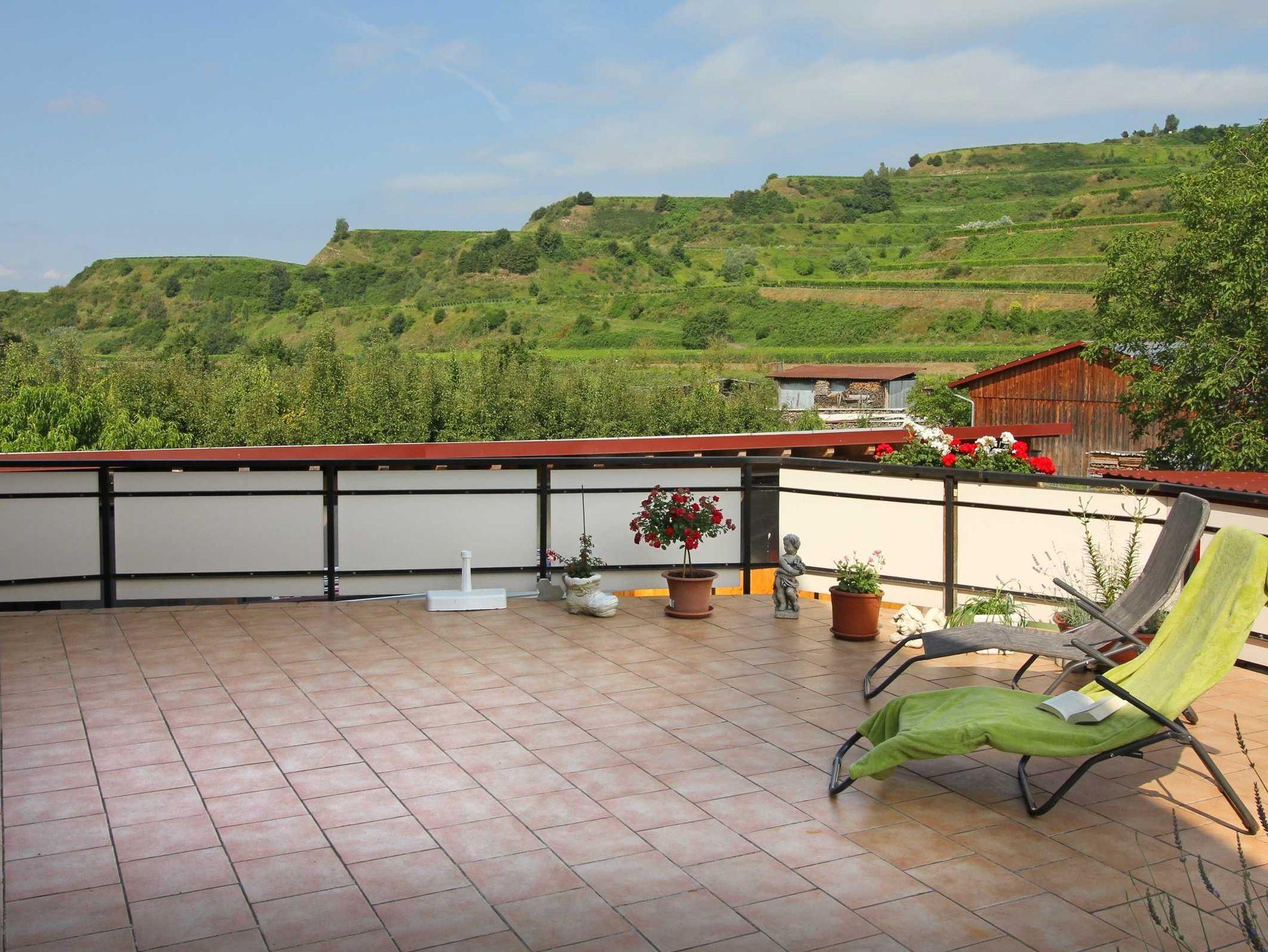 Wein- und Gästehaus Baumer bietet Ihnen eine komfortable Ferienwohnung für 2-4 Personen, bestehend aus 2 Schlafräumen, Aufenthaltsraum mit TV und einer komplett eingerichteten Küche. Dusche ,WC und sep. WC. Überdachte Terrasse große Sonnenterrasse mit Blick auf die Weinbergterrassen und Obstgärten. Parkplatz beim Haus.