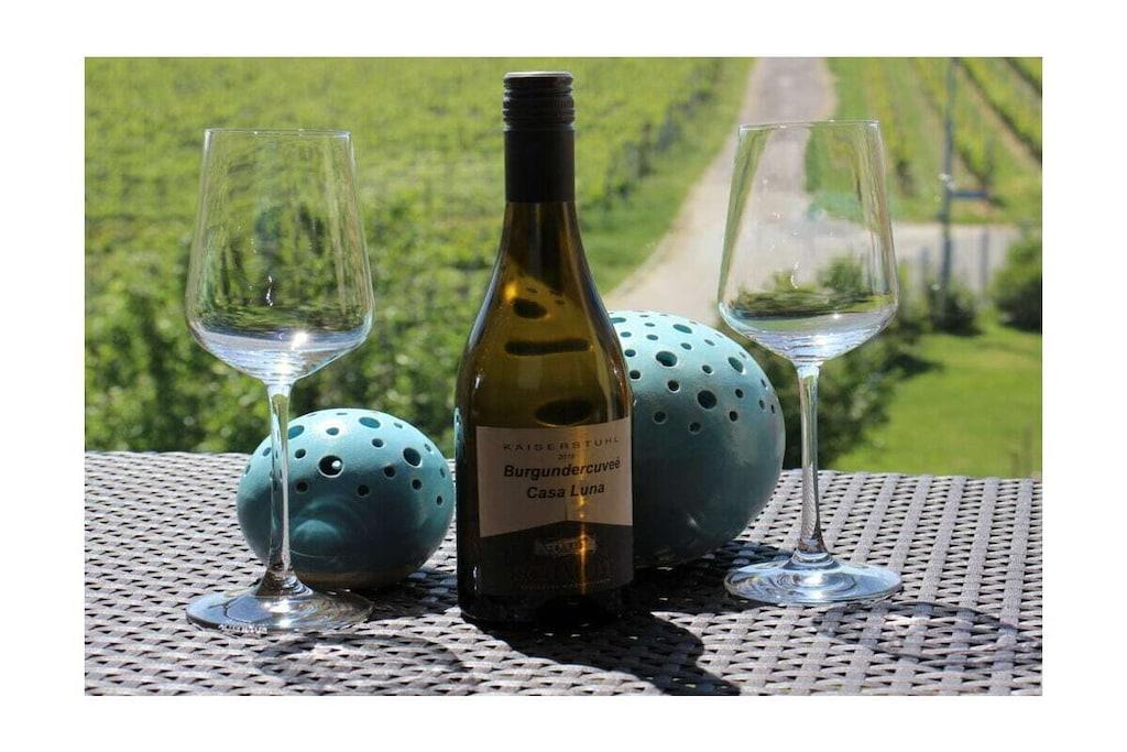 Paradiesische NEUE Familien-Ferienwohnung mit 2 Schlafzimmern (2Pers. + 3Pers.) 12qm Süd-Loggia und Fernsicht in alle 4 Himmelsrichtungen!!! Angezeigter Preis gilt für bis zu 2 Personen !!! Je 20,-- zusätzlich für 3., 4. und 5. Person pro Nacht! Naturnahes Wohnen im Grünen auch für die Familie mit bis zu 5 Personen! Absolute Ruhe am Ortsrand, mit Weitblick in die Reben! Wir haben diese Wohnung Anfang 2020 für Sie fertig gestellt. Über eine Außen-Treppenanlage kommen Sie direkt in diese sonnendurchflutete große Dachgeschoss-Wohnung. Im offenen, geschmackvoll eingerichteten Wohn-Essbereich finden Sie eine voll ausgestattete Küche, einen großen Tisch für 6 Personen und ein Sofa mit Sessel und Sitzsäcken. Auf der großen Süd-Loggia können Sie den Fernblick genießen, frühstücken/essen/trinken, der Blick auf das üppige Grün der umgebenden Reben lässt Sie vollkommen entspannen! In 2 separaten Schlafzimmern finden Sie ausreichend Platz auch für die große Familie!