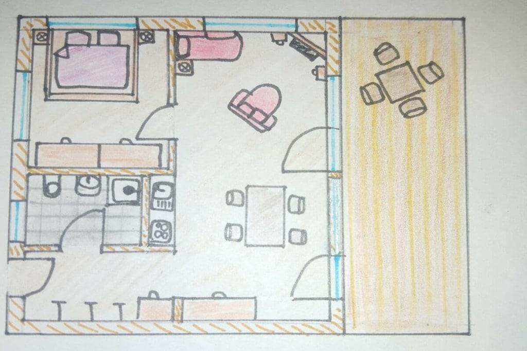 On the 1st floor: (Living/diningroom(Armchair, Sofa, Spices, Tea Towels, Kitchenette, TV, dining table, hob, coffee machine, microwave, dishwasher, fridge, freezer, heating), bedroom(Bed Linen, single sofa bed, double bed, heating), bathroom(Mirror, toilet, shower, washbasin, heating, hairdryer, Towels incl.)) Fire Alarm, Hot Water, Internet Access DSL, Internet Access ISDN, Internet access, First Aid, balcony(Sun Umbrella, garden furniture), heating, garden(Barbecue center, Garden shed), parking, parasol