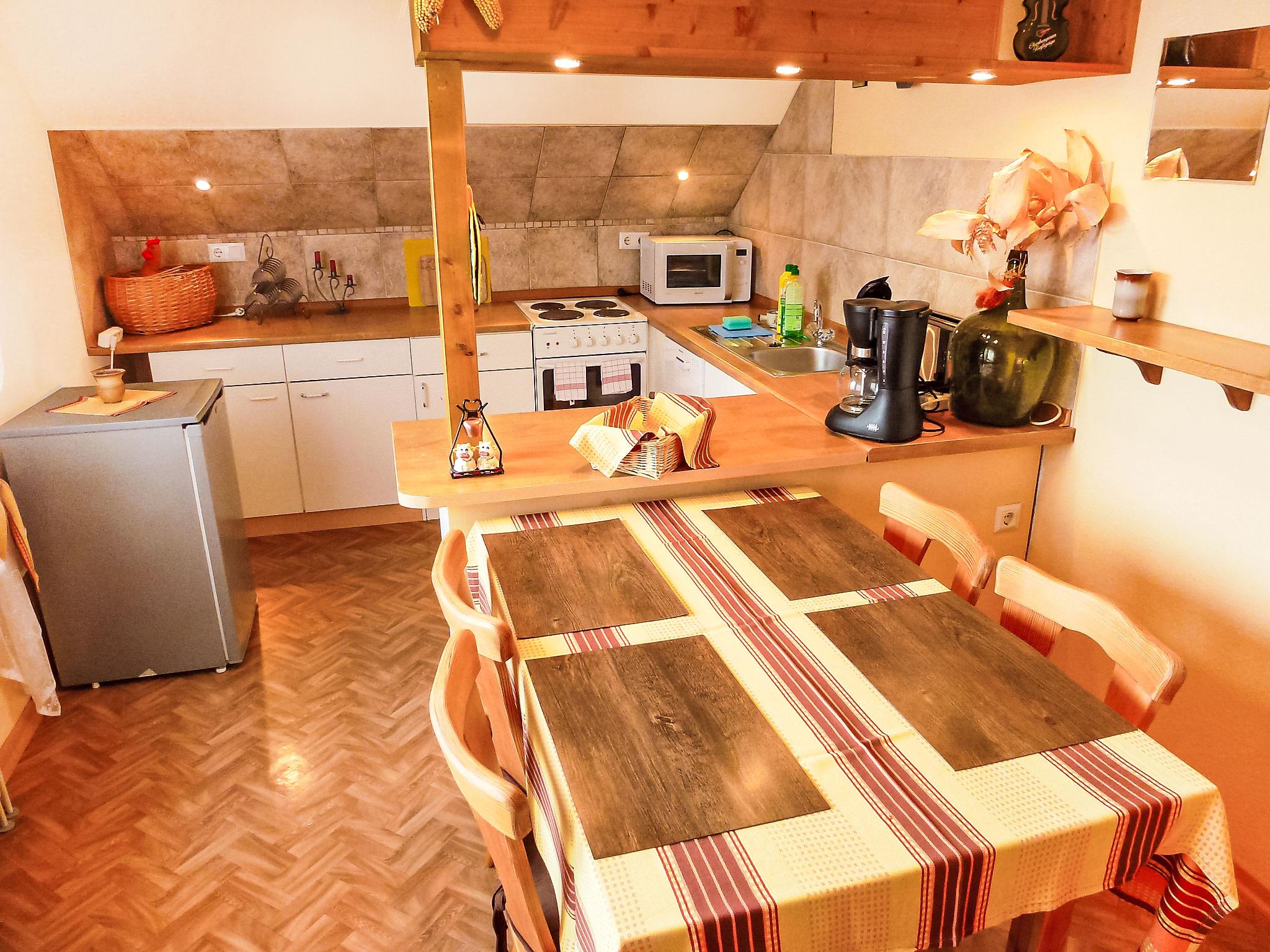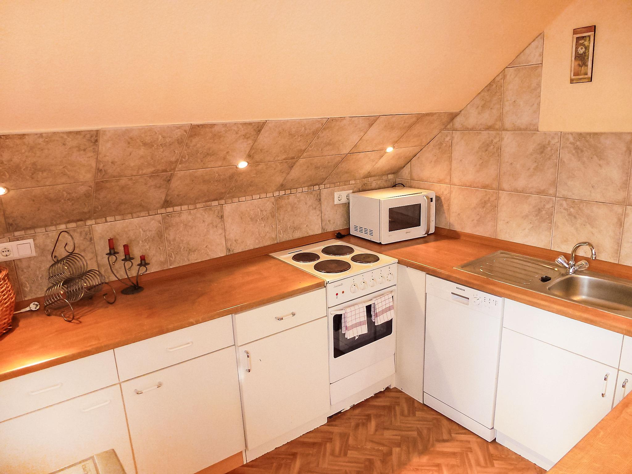 2-room apartment 50 m2, on the top floor. Partly with sloping ceilings: living/dining room with 1 double sofabed. Living/sleeping room with 1 double bed and satellite TV. Open kitchen (4 hot plates, oven, dishwasher, microwave, electric coffee machine). Bath/WC. Facilities: Internet (WiFi, free). Please note: non-smokers only. Maximum 2 pets/ dogs allowed.