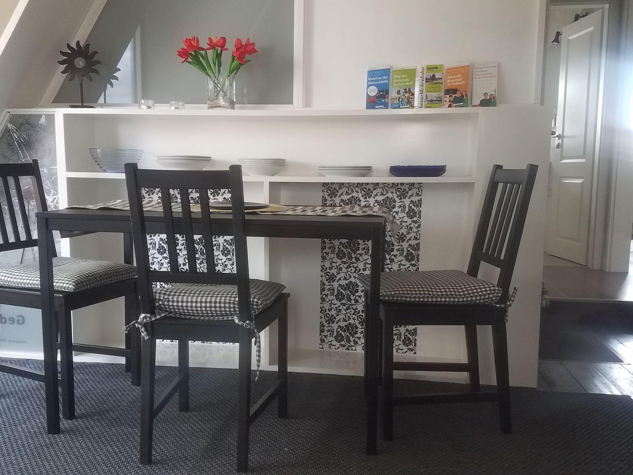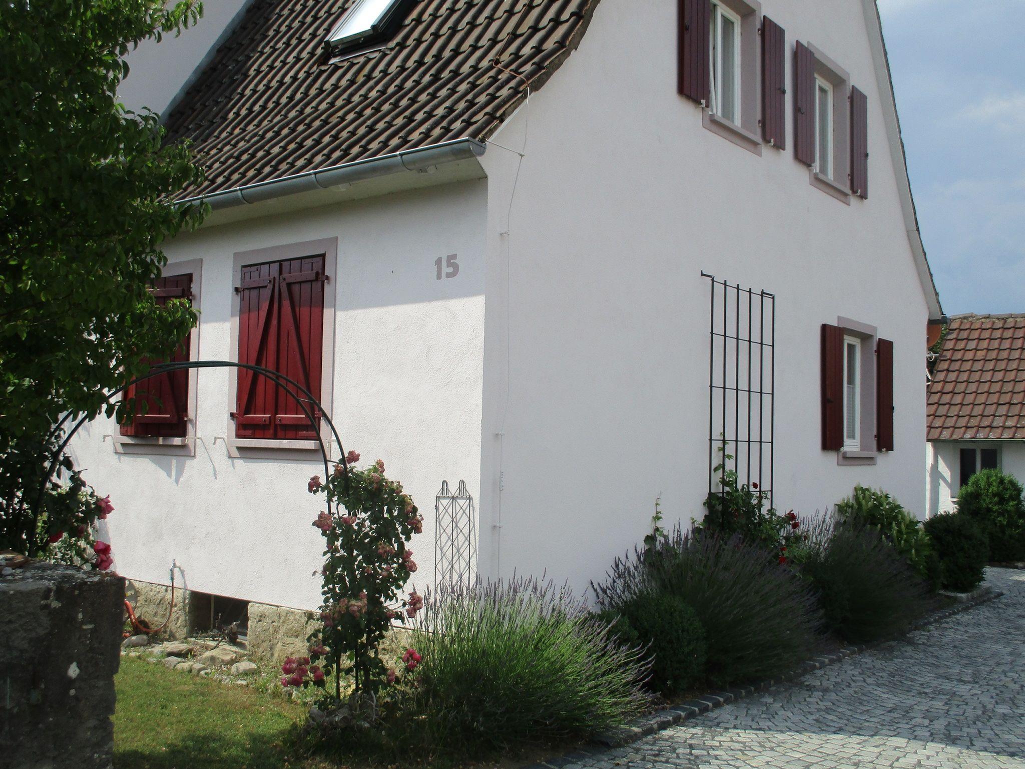 Die Ferienwohnung befindet sich in ruhiger Siedlung in einem Häuschen mit großem Garten. Ein eigener gemütlicher Balkon steht zur freien Verfügung. Die Ortsmitte von Volkach ist in 10 min. fußläufig gut zu erreichen.