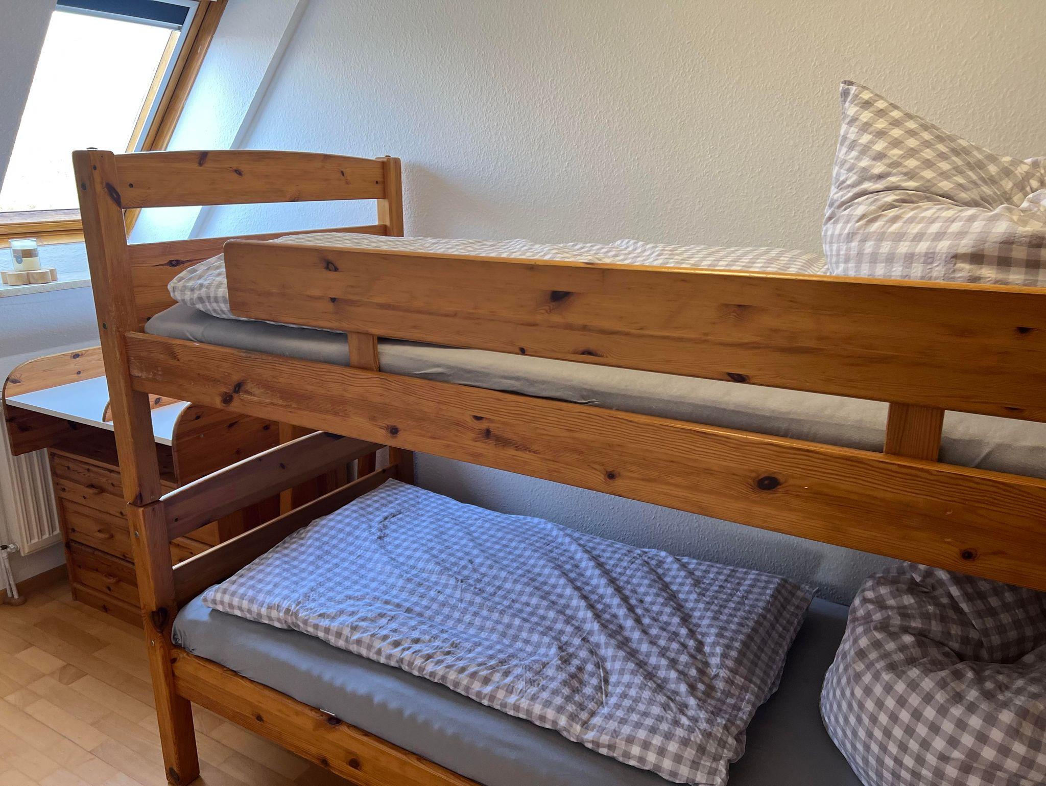 Für die Nächte bietet die Wohnung ein Elternschlafzimmer mit Bandscheibenmatratzen,