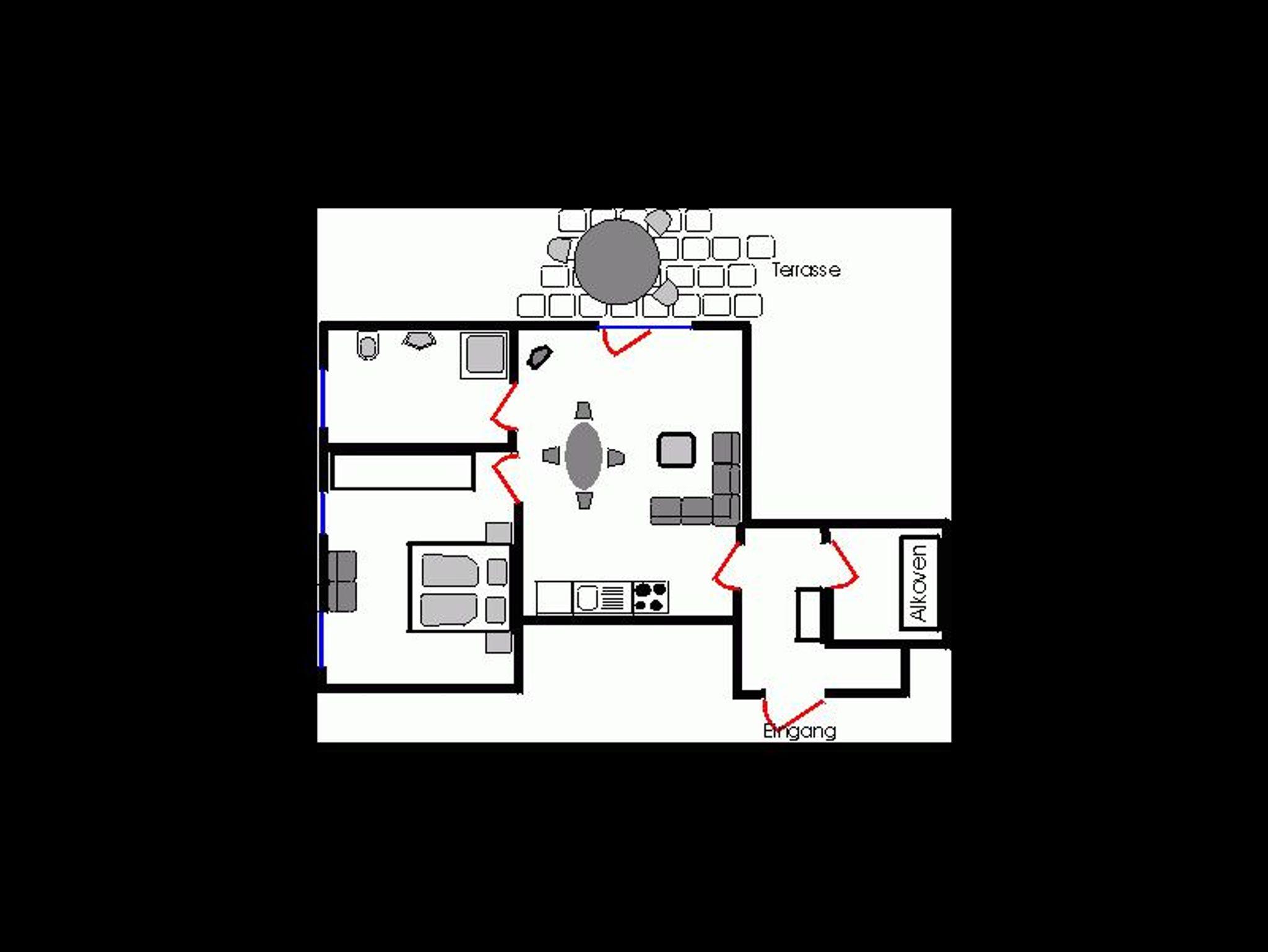 Die komplett ausgestattete Einbauküche mit Spülmaschine und Essecke lädt zur Selbstversorgung ein. Im Wohnbereich sorgen eine bequeme Couchgarnitur, SAT-TV und kostenfreies WLAN für Komfort. Ein Duschbad rundet das Angebot ab.