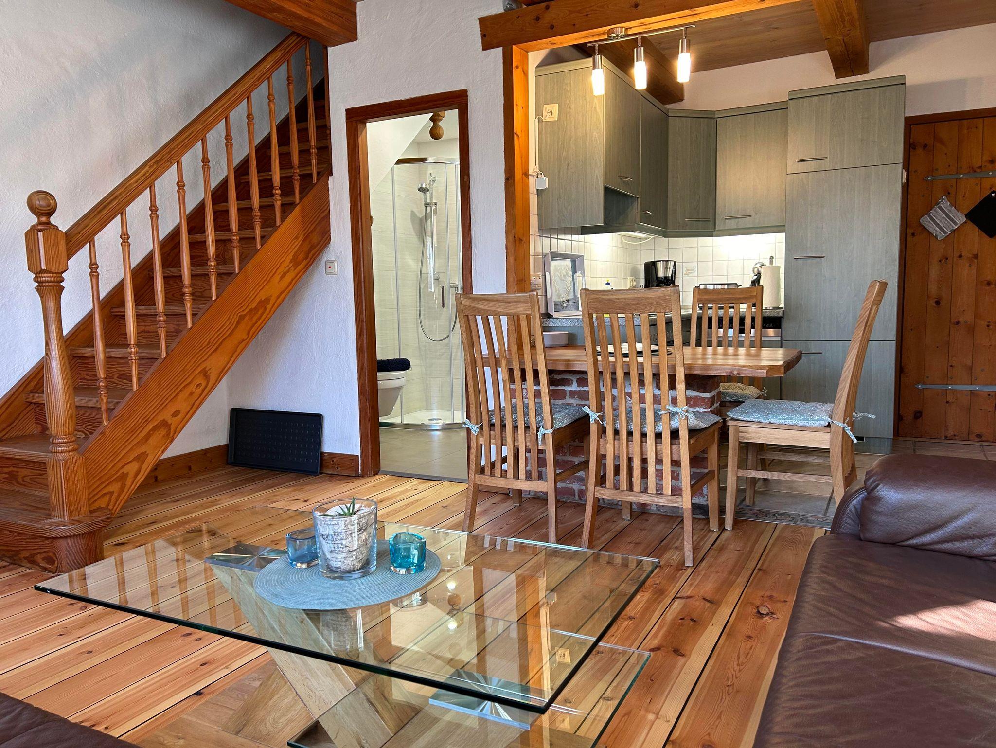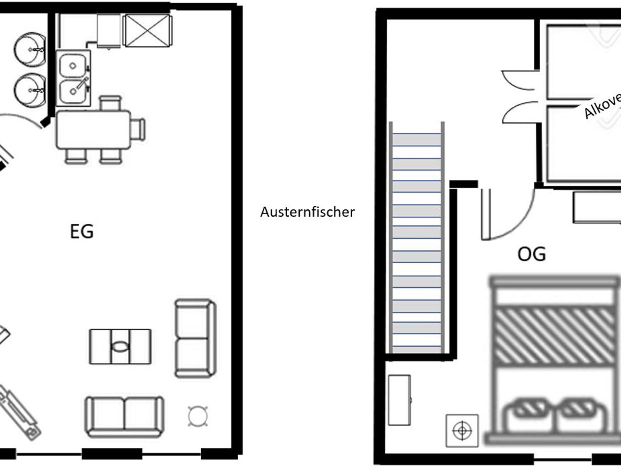 Die über 2. Etagen reichende Ferienwohnung Austernfischer gehört zu unseren etwas größeren Ferienwohnungen im haubarg am meer. Im Erdgeschoß findet man den gemütlichen Wohnbereich mit der offenen Küche sowie das Bad (wurde in 2023 komplett neu gestaltet). Über eine Holztreppe gelangt man zum Schlafzimmer mit Doppelbett. Davor findet sich die einem historischen Alkoven nachgebaute Schlafmöglichkeit für die Kinder. Der Alkoven beherbergt zwei normal große Matratzen. Wir haben die Ferienwohnung Anfang 2025 renoviert.