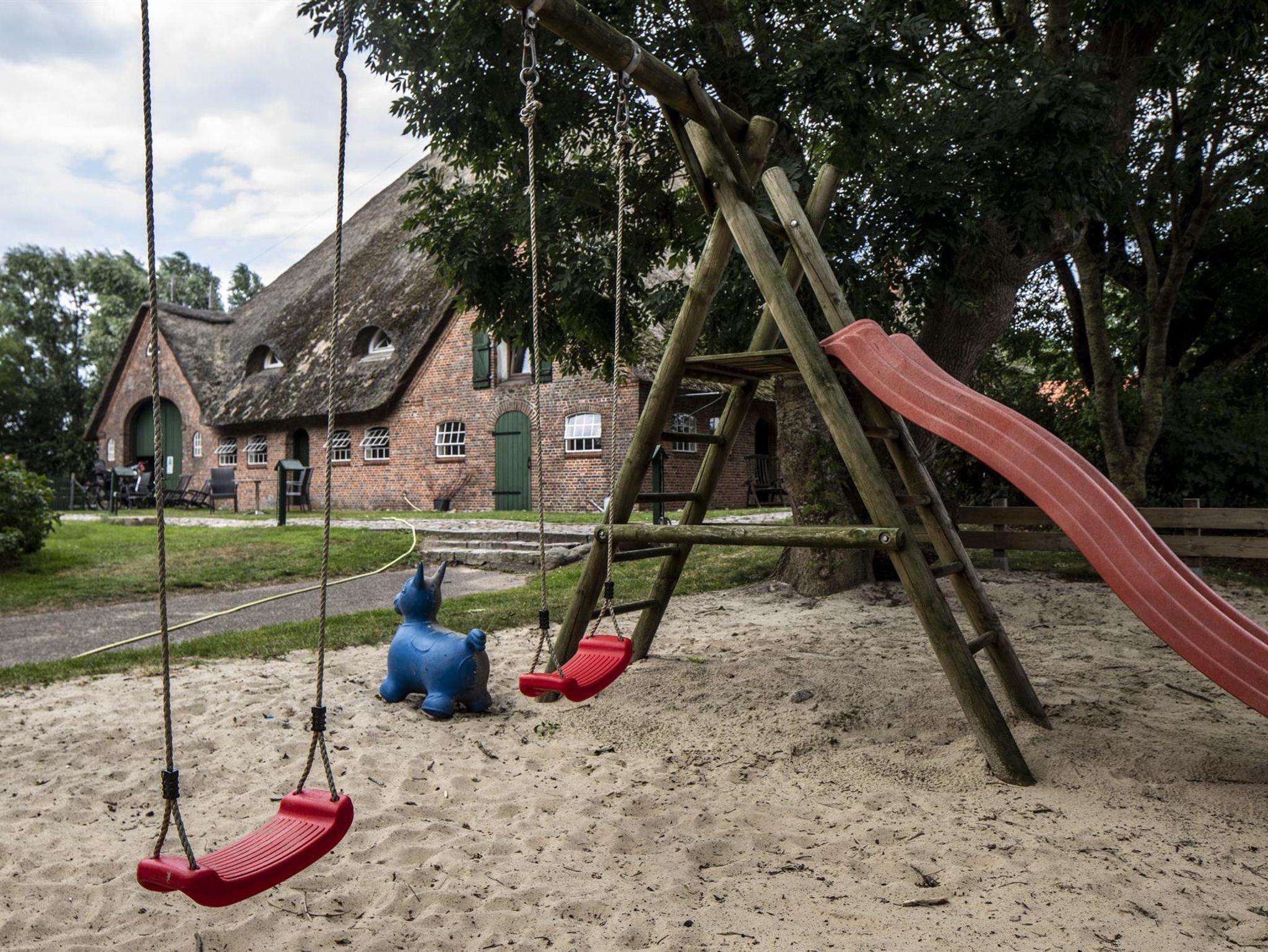 Auf dem 10000 qm großen Grundstück gibt es ausreichend Raum mit Terrassen, Sitz- und Liegemöglichkeiten, Kinderspielplatz und einer großen umzäunten Wiese, die als Hundeauslauf genutzt werden kann. Die große Lohdiele bietet Platz zur Aufbewahrung eurer Sportgeräte und für Spaß und Spiel. Hier findet man neben einer Tischtennisplatte, einen Kicker und eine Dartscheibe falls das Wetter einen mal nicht rauslässt.