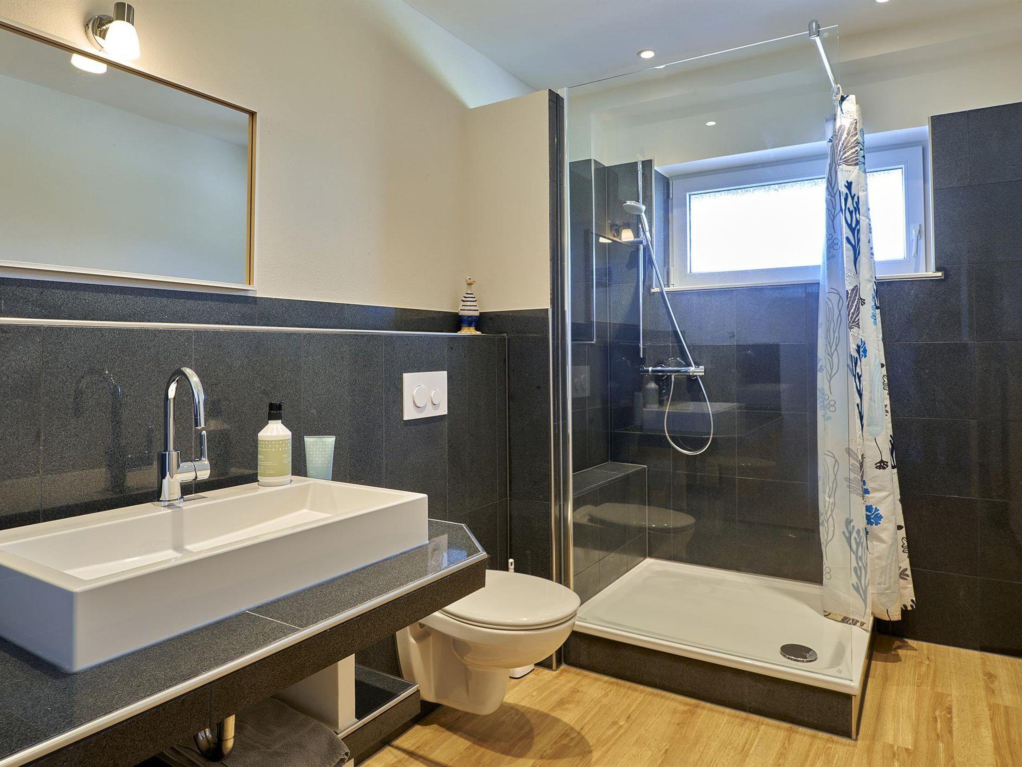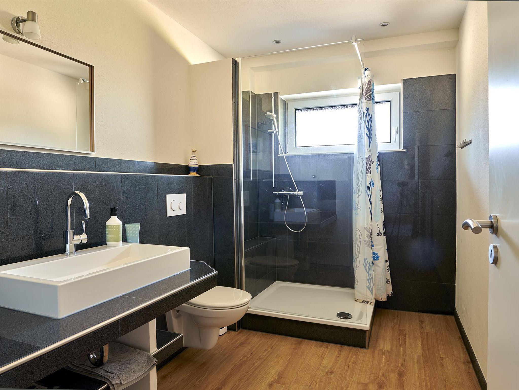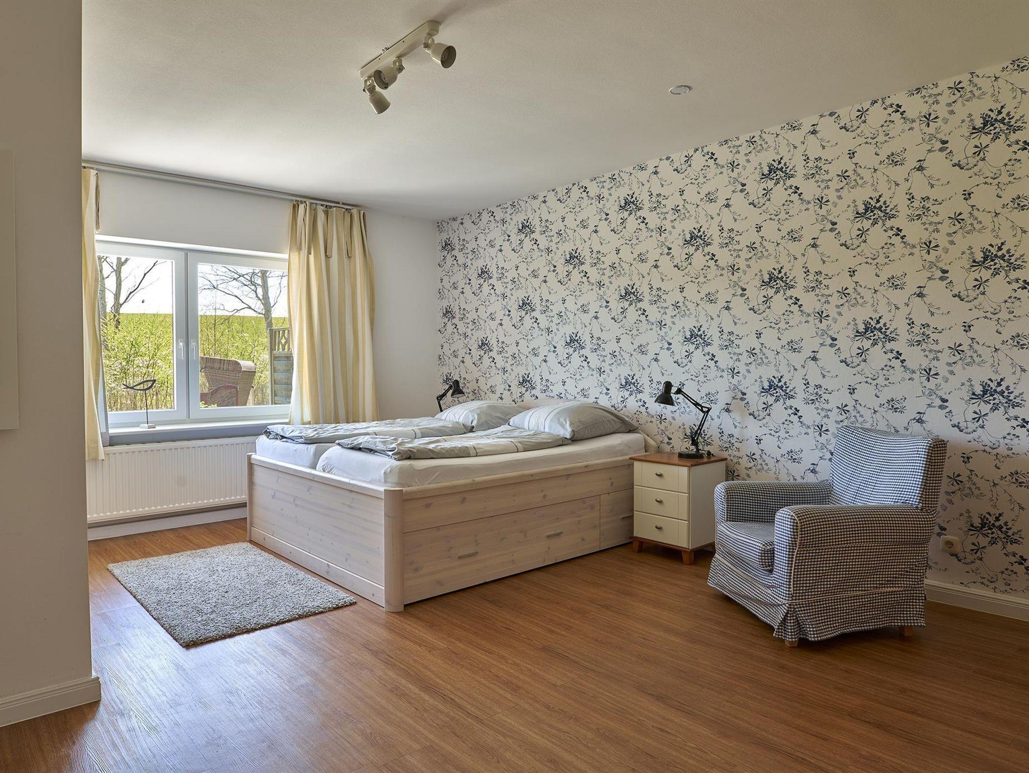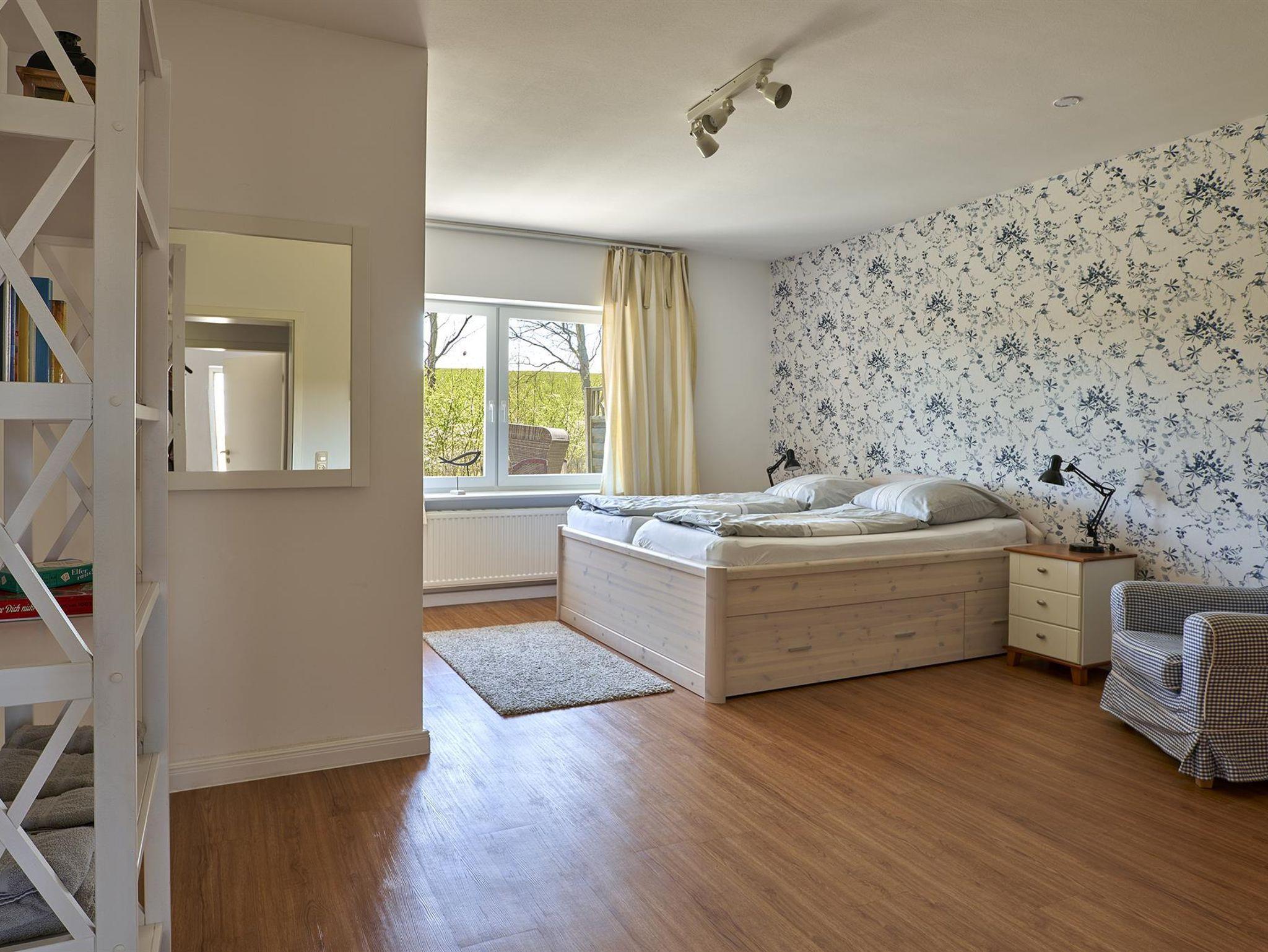 Die Wohnung 1 befindet sich im Erdgeschoss links. Sie hat 2 Schlafzimmer, ein großes Schlafzimmer 1,80 x 2,00 m, die Möglichkeit ein Babybettchen kostenfrei dazugestellt zu bekommen, ein zweites Schlafzimmer mit 2 Einzelbetten (90,- x 2,00 m), ein großes helles Wohnzimmer mit 2er Sofa, 2 Sesseln, Sat-TV, DVD, einem großen Esstisch und offene Küche mit Herd und Backofen, Dunstabzug, Geschirrspüler, Kühlschrank mit Eisfach natürlich auch Toaster, Wasserkocher, Kaffeemaschine...