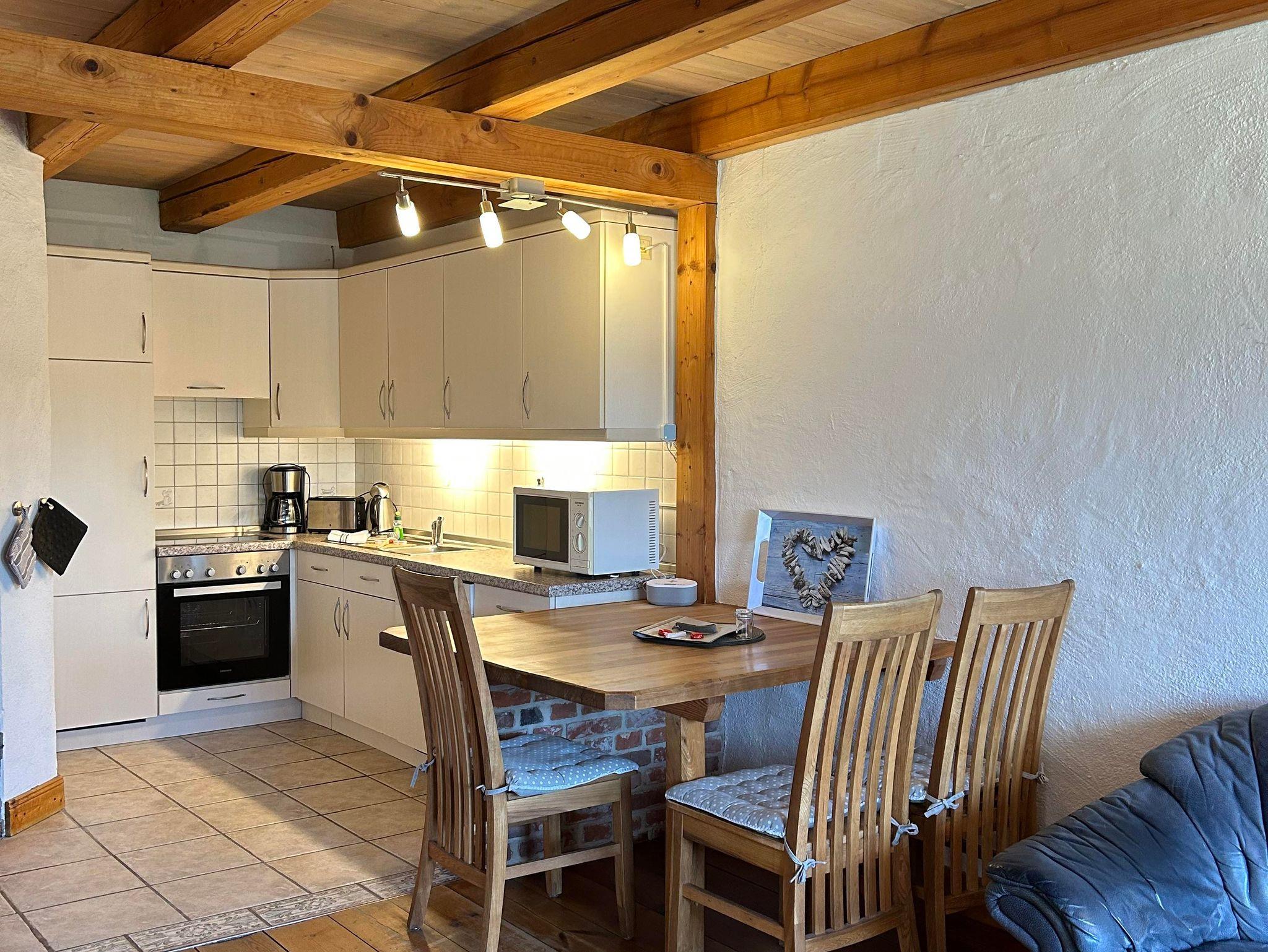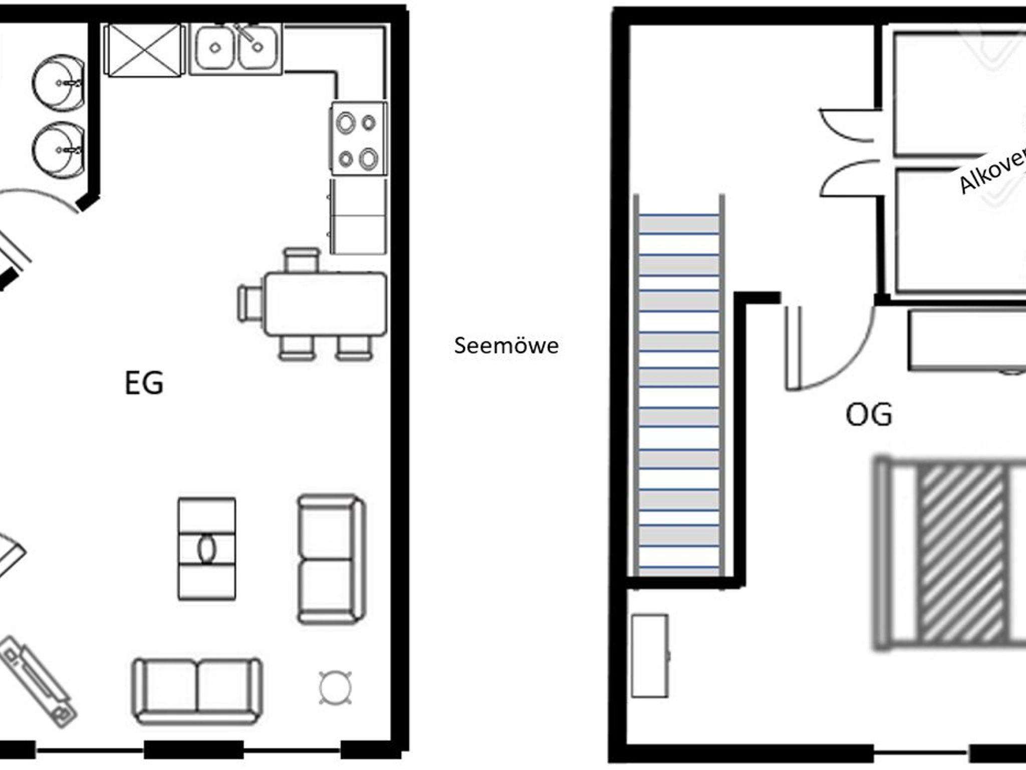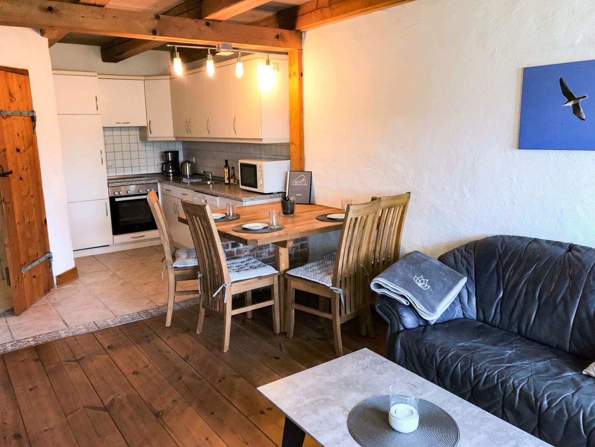Die Ferienwohnung Seemöwe ist unsere größte Ferienwohnung im haubarg am meer. Der großzügige Wohnbereich mit offener Küche bietet viel Platz für einen entspannten Urlaub. Das Bad haben wir für euch in 2024 neu gestaltet. Über die massive Holztreppe gelangt man in das geräumige Schlafzimmer mit Doppelbett. Die Kinder schlafen getrennt von den Eltern in einem nachgebautem historischen Alkoven (entspricht einem Doppelbett).