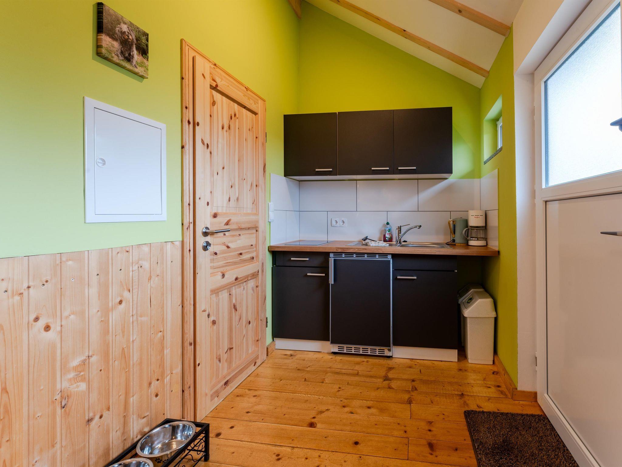 Im Hauptgebäude, einem ehemaligen Reiterhof, befindet sich der gemütliche Pfotentreff mit einer kleinen Gastroküche. Hier können unsere Gäste von Mittwoch bis Montag auf Wunsch frühstücken und auch zu Abend essen. Die vierbeinigen Begleiter dürfen selbstverständlich auch mit.