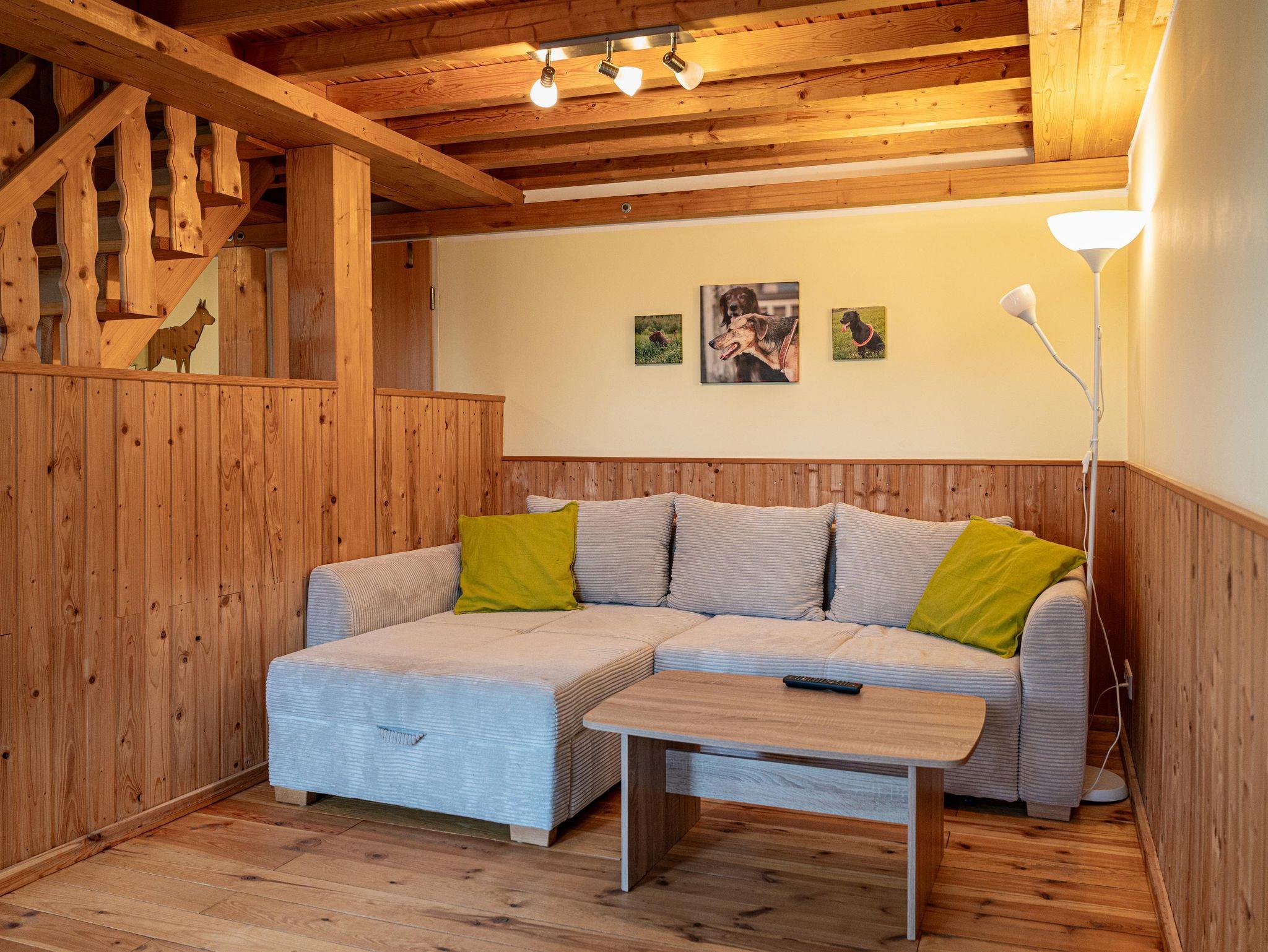 Die Ferienhäuser befinden sich auf dem 3000 qm großen, eingezäunten Gelände (Maschendrahtzaun, ca. 1,30m hoch). Die ganz aus Holz gebauten Häuser sind gemütlich und hundefreundlich eingerichtet und verfügen teilweise über einen eigenen Garten. Die beiden Ferienwohnungen wurden liebevoll in die alte Stallgasse hineingebaut.